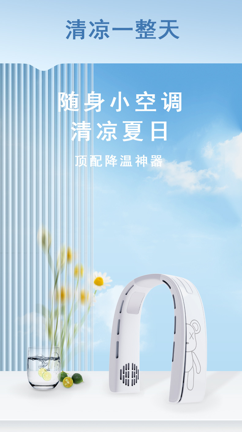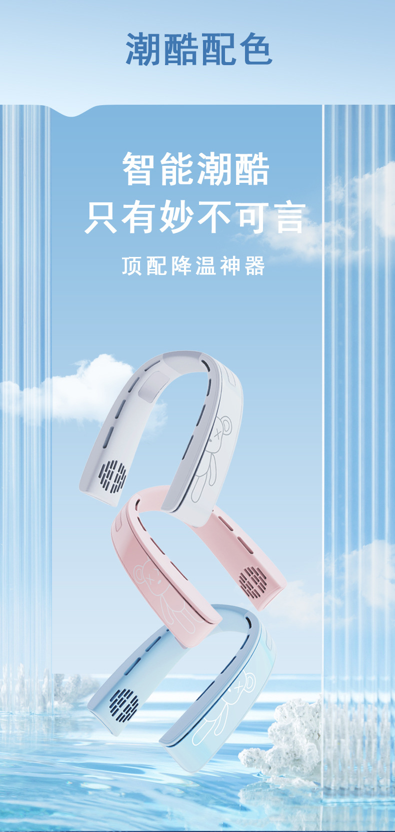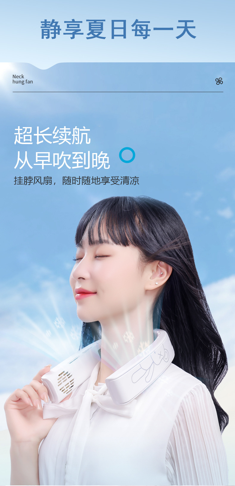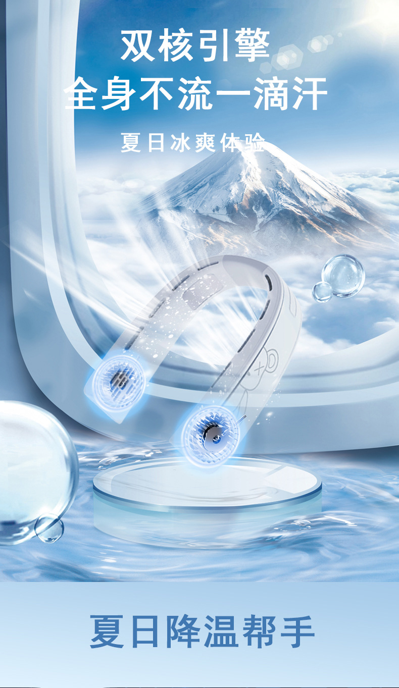 跨境出口挂脖小风扇便携式户外静音制冷充电usb涡轮无叶挂脖风扇
