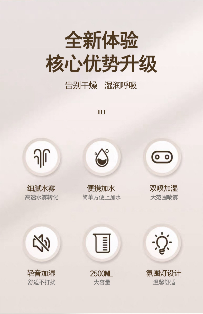 跨境2025新款加湿器可调节雾量氛围灯家用大喷雾加湿器卧室用小型