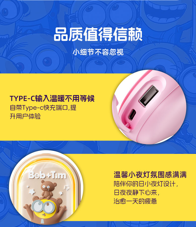 新款暖手宝充电宝二合一小黄人暖手宝usb充电暖手袋厂家冬季礼品
