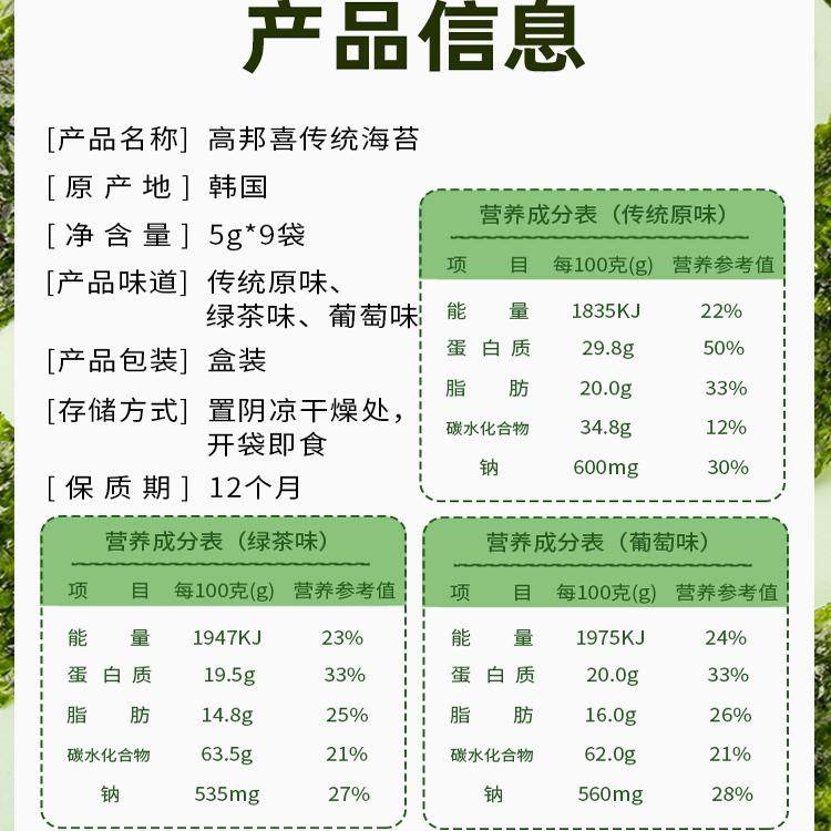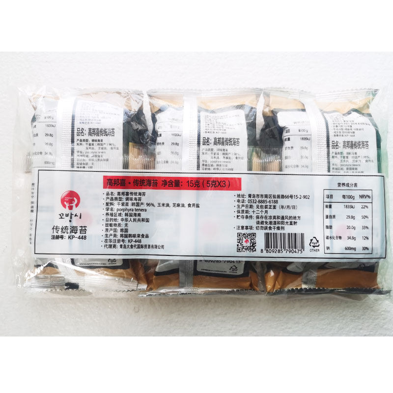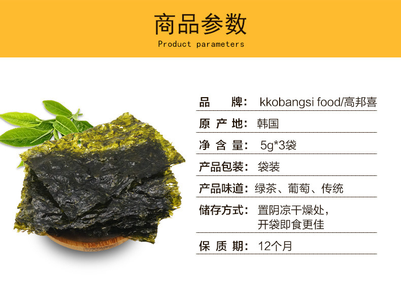 高邦喜海苔韩国进口海苔脆即食儿童宝宝零食紫菜包饭零食