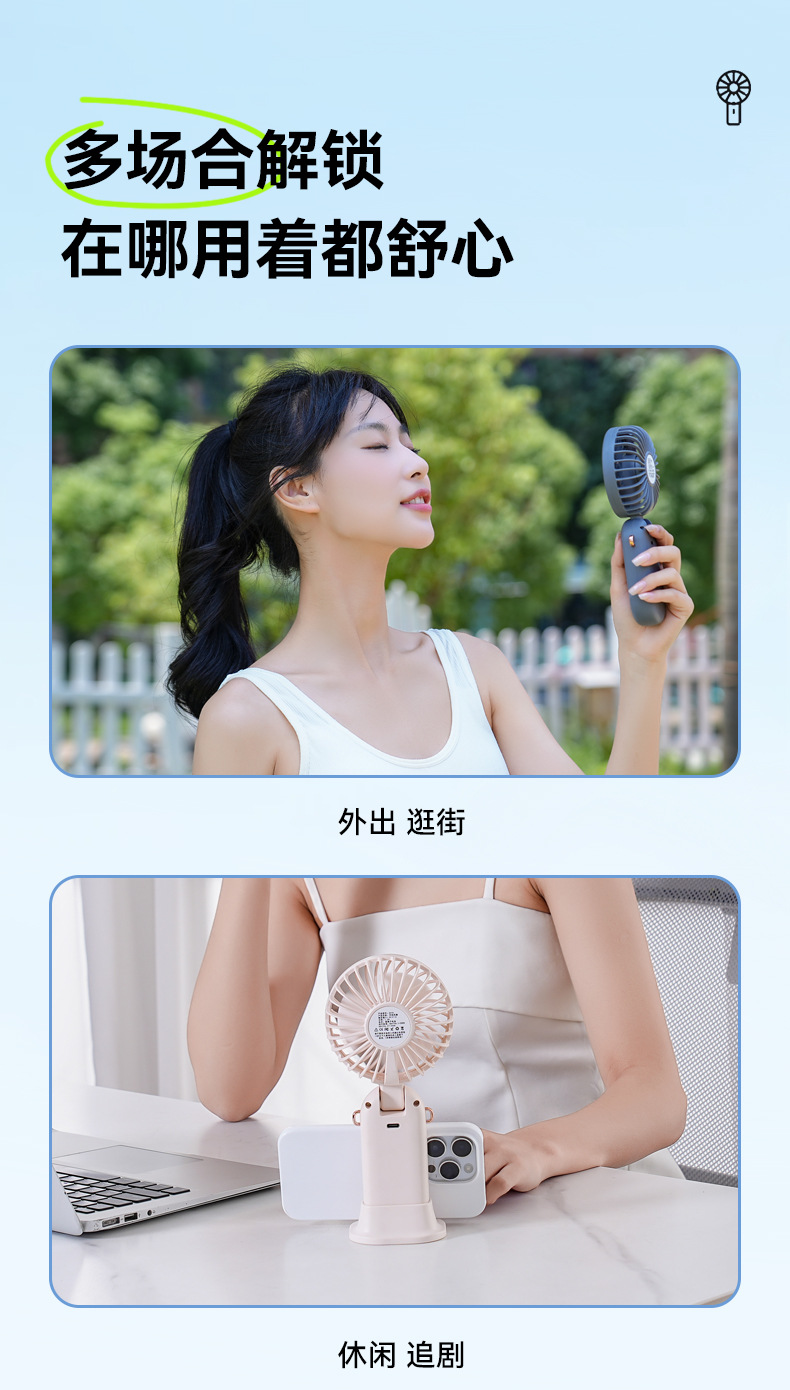 2024新款手持风扇折叠数显便携小风扇长续航usb充电款手持小风扇