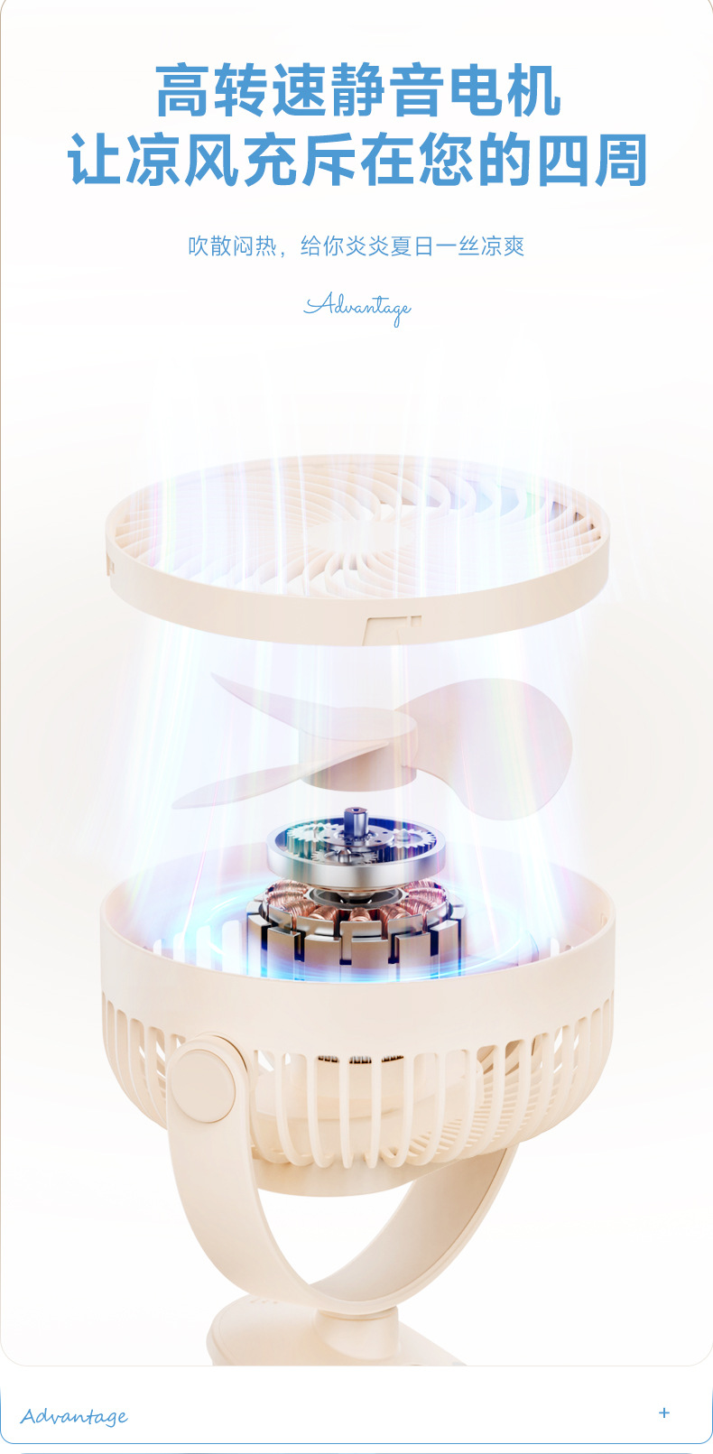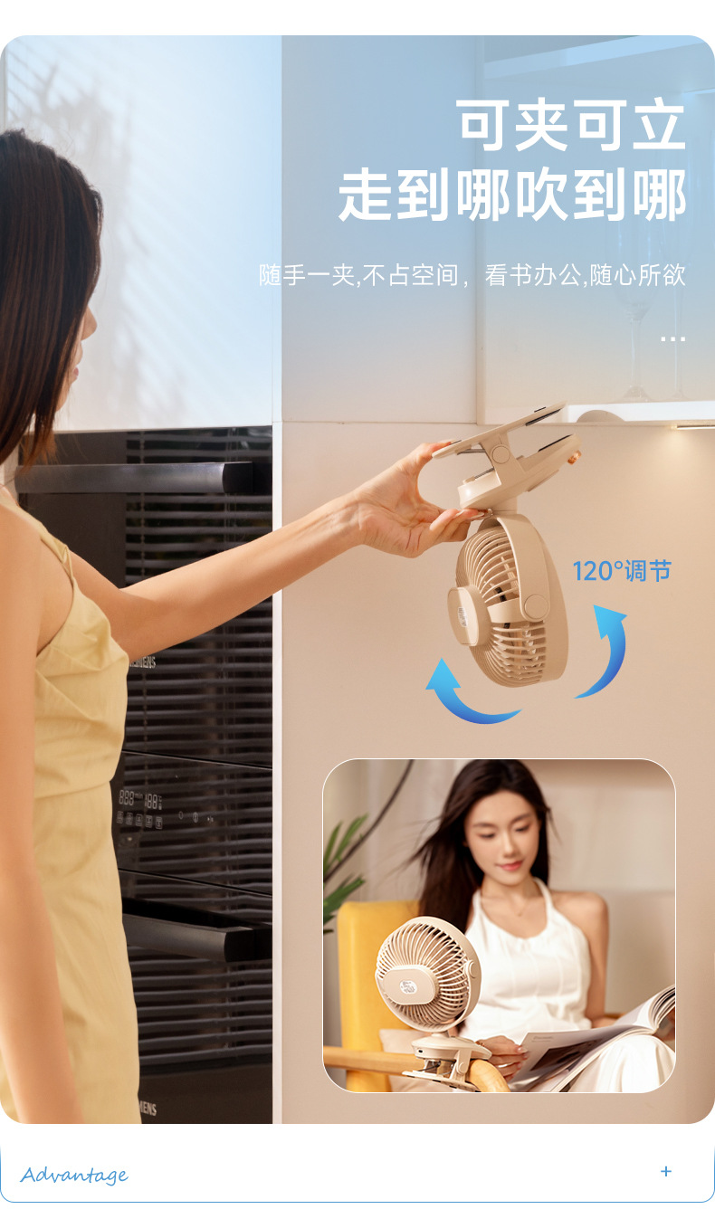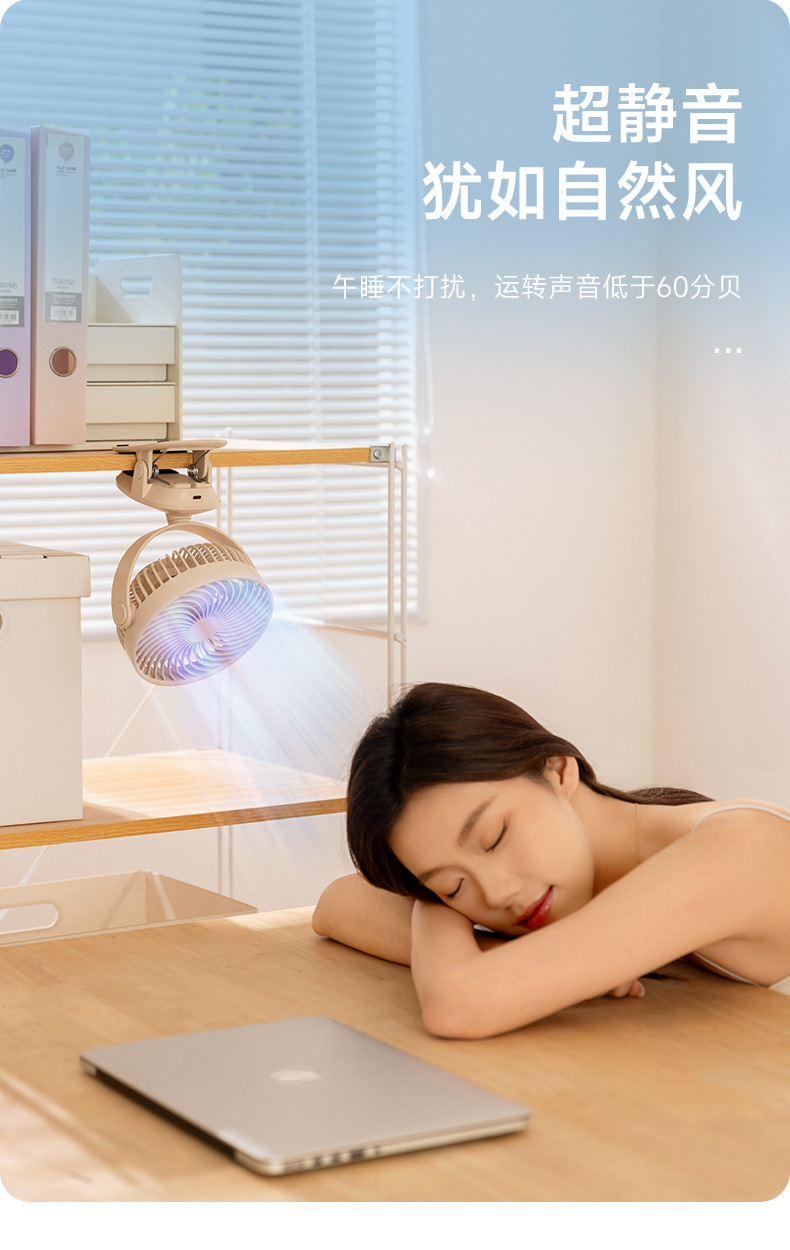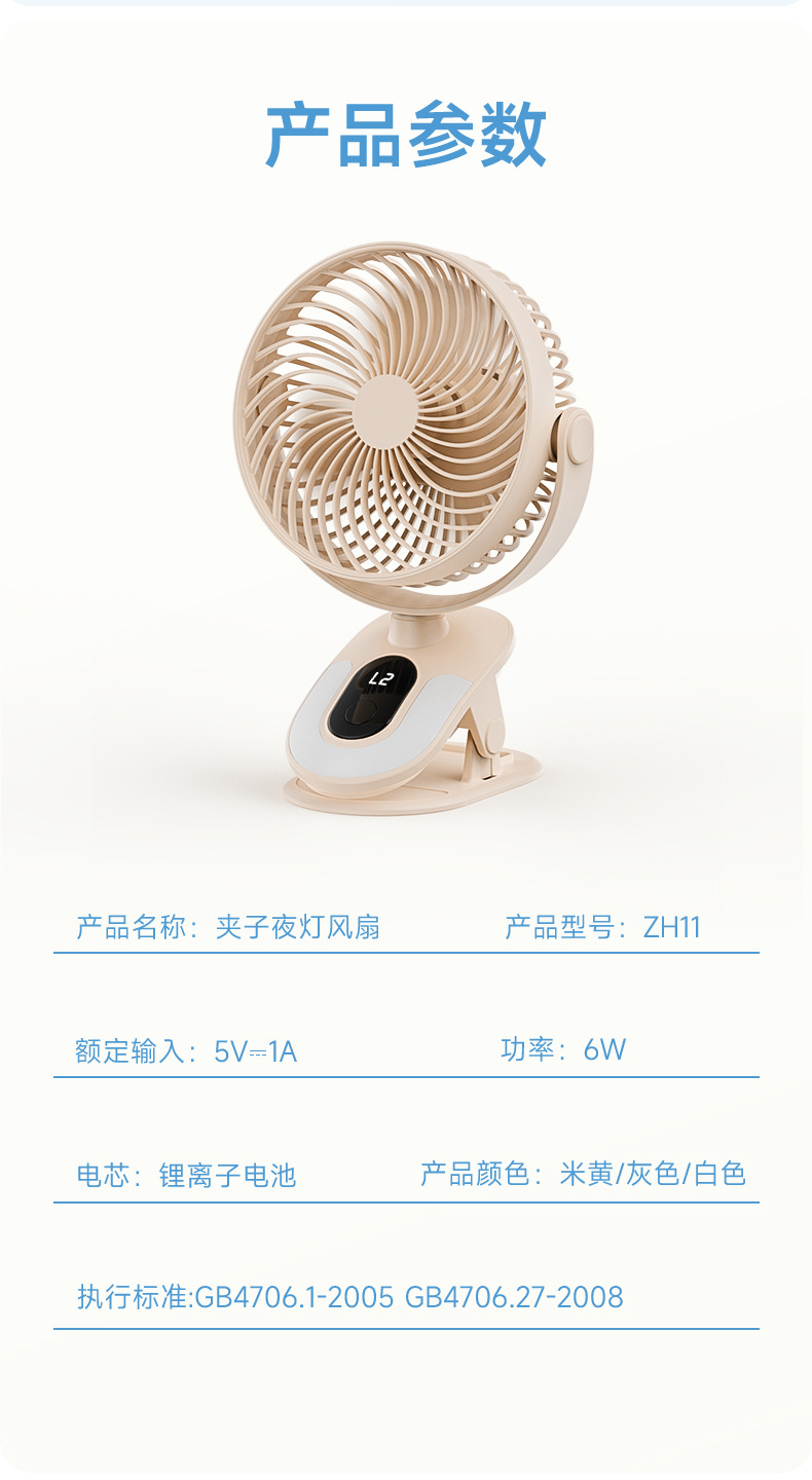 跨境夹子风扇带灯桌面小风扇台式左右摇头数显usb充电夹子小风扇