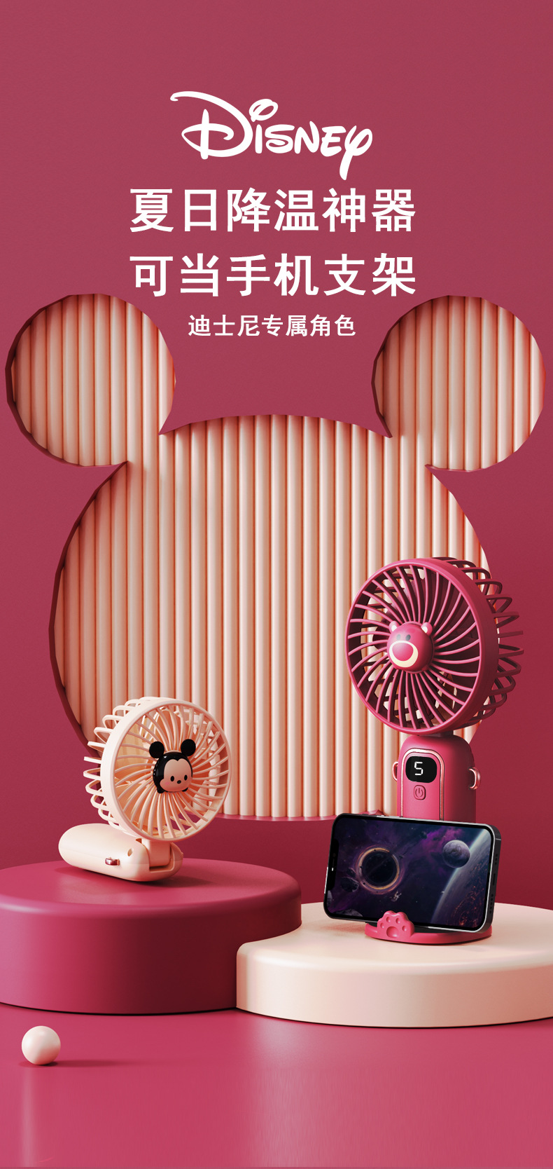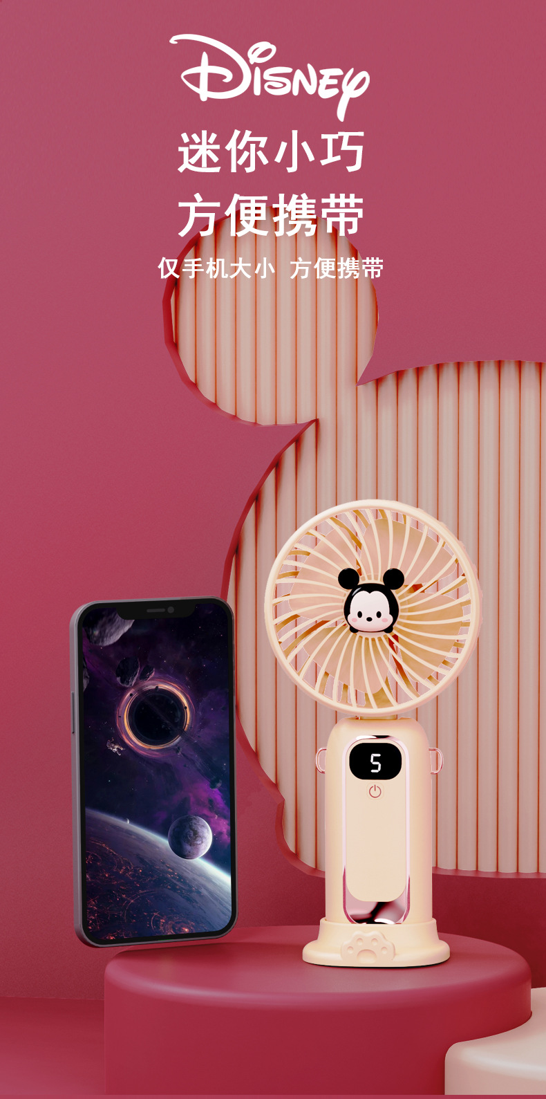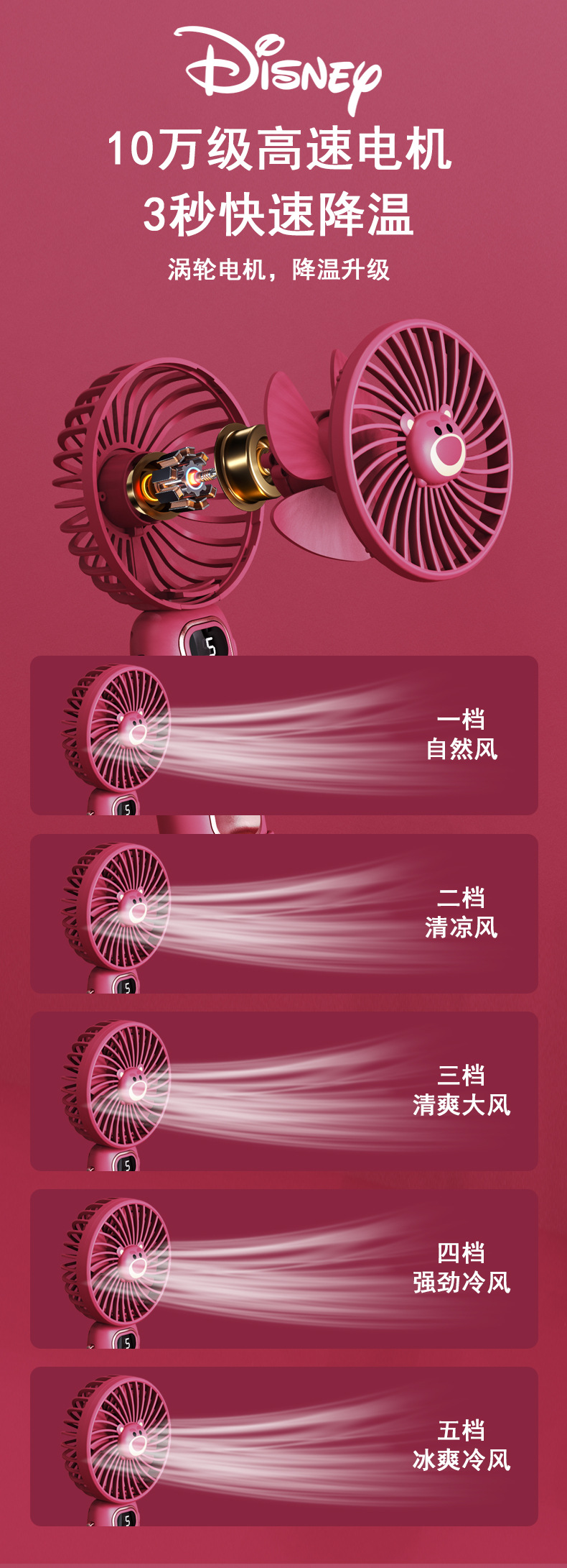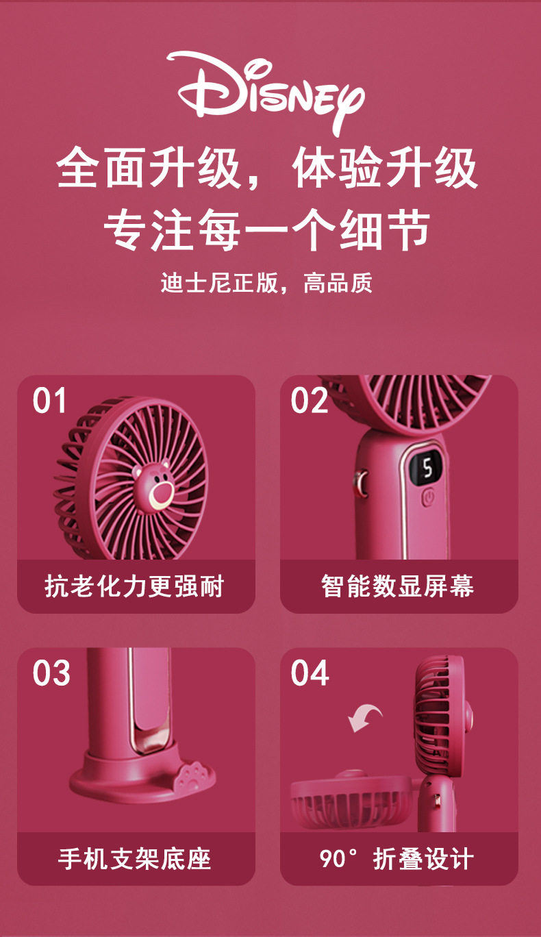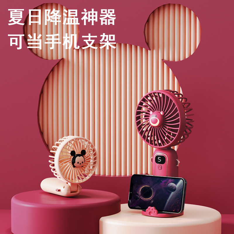 小风扇手持风扇可折叠随身小风扇便携静音充电款草莓熊手持小风扇