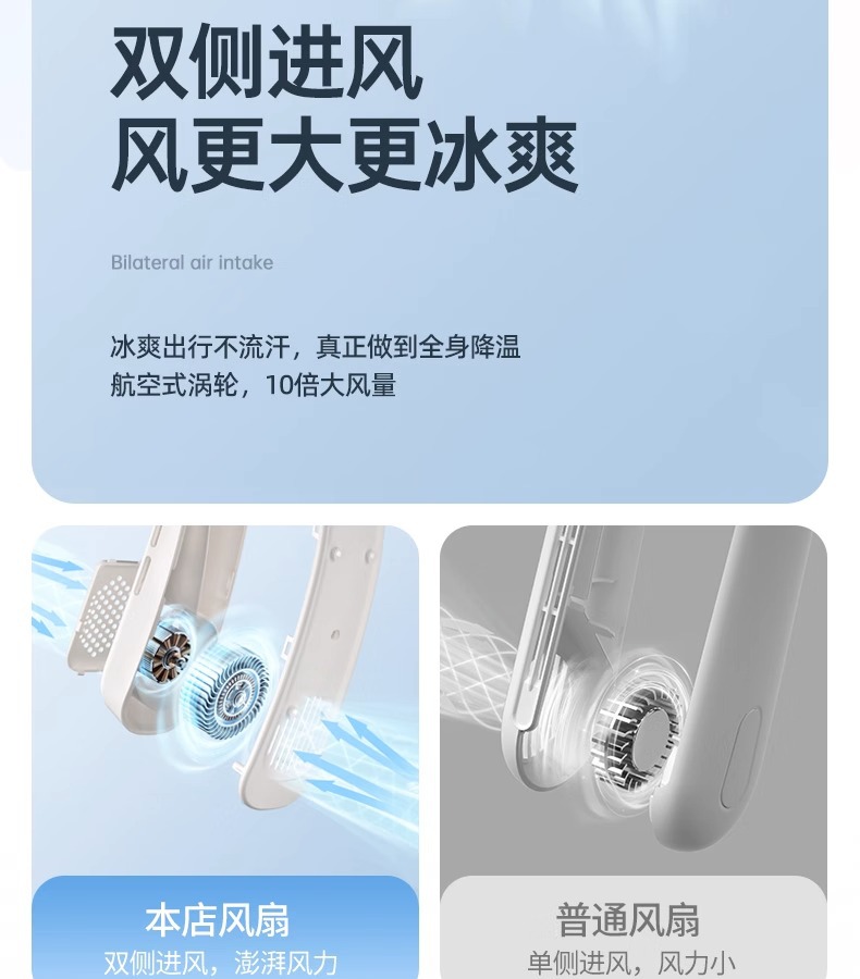 跨境新品挂脖风扇无叶涡轮迷你电风扇静音亚马逊挂脖款强力电风扇