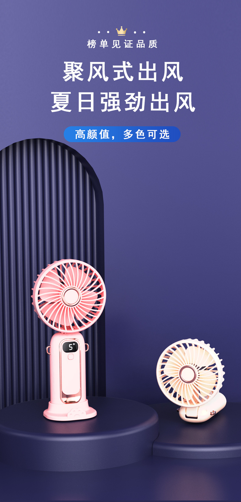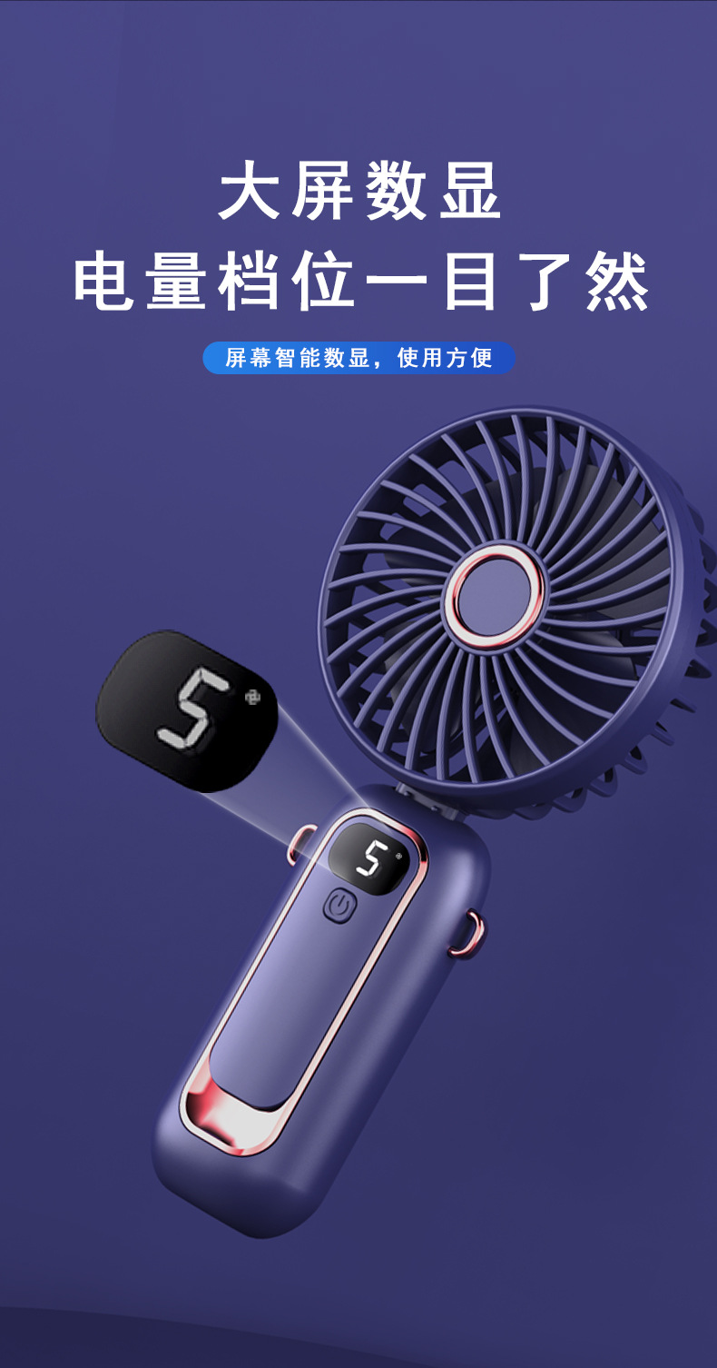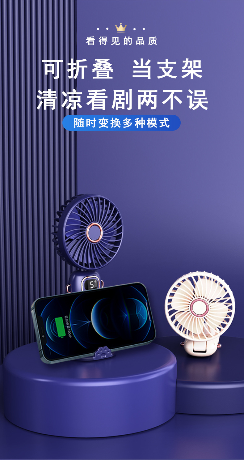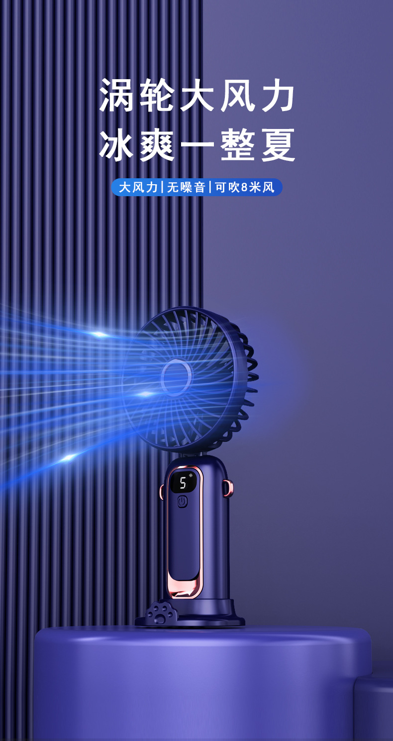 手持风扇迷你便携折叠小风扇桌面电风扇数显usb充电小风扇礼品款