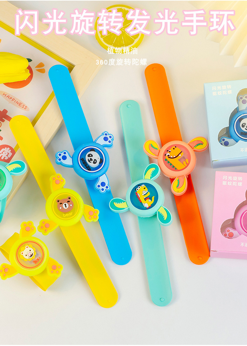 驱蚊手环儿童旋转啪啪圈发光陀螺防蚊虫叮咬户外大人宝宝拍拍手表
