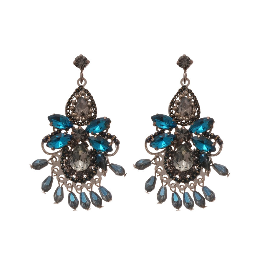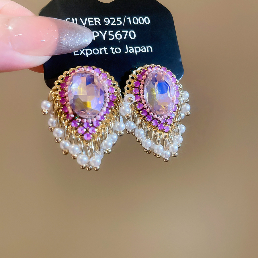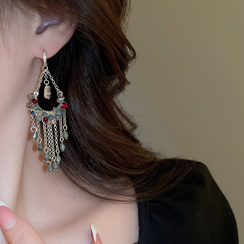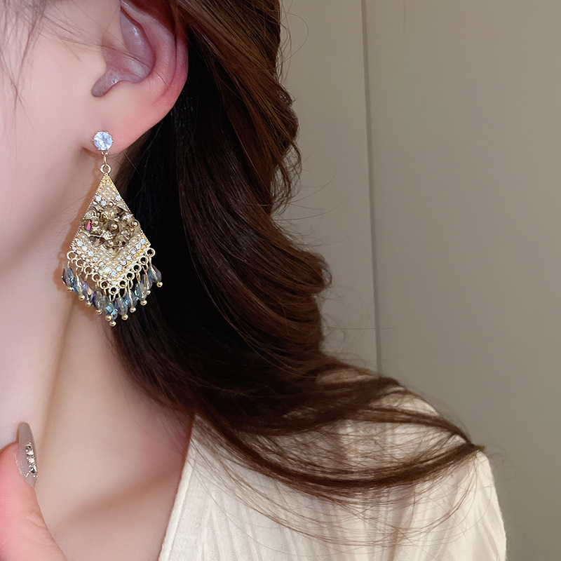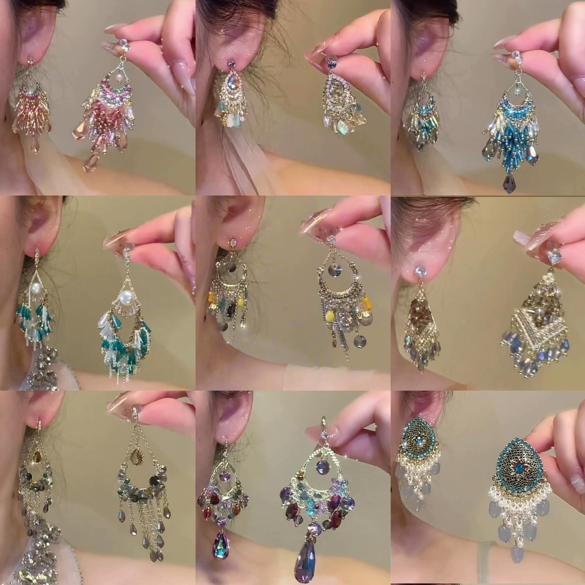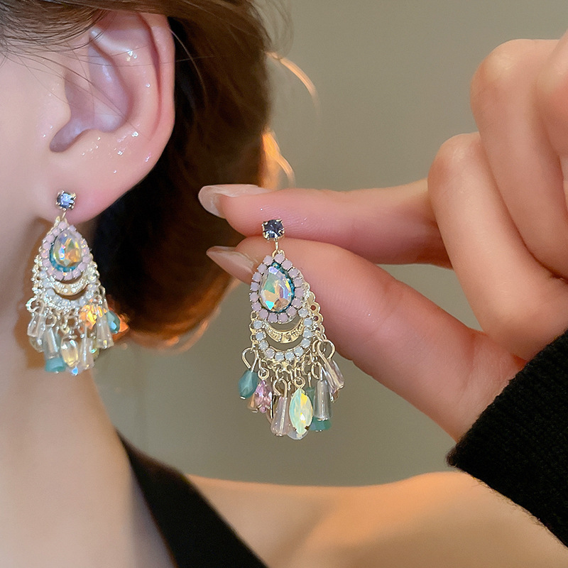 欧美跨境民族风镶钻水滴流苏耳环轻奢高级感耳钉女耳饰设计感小众