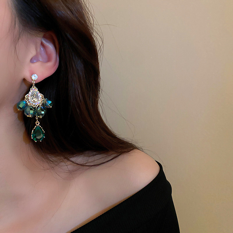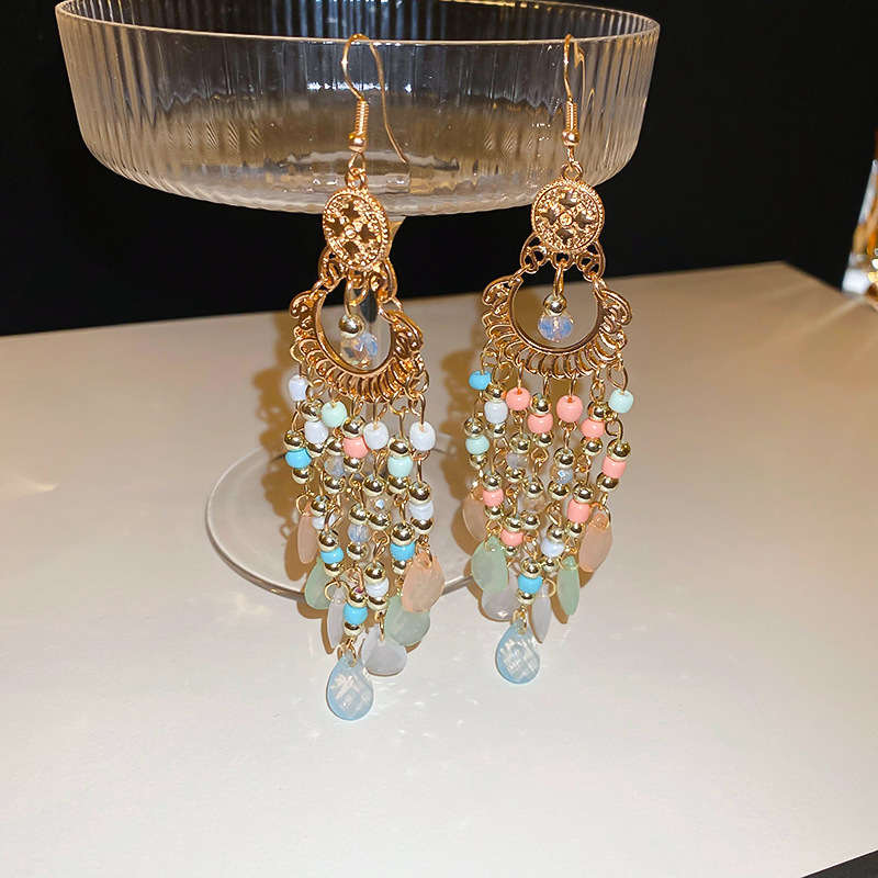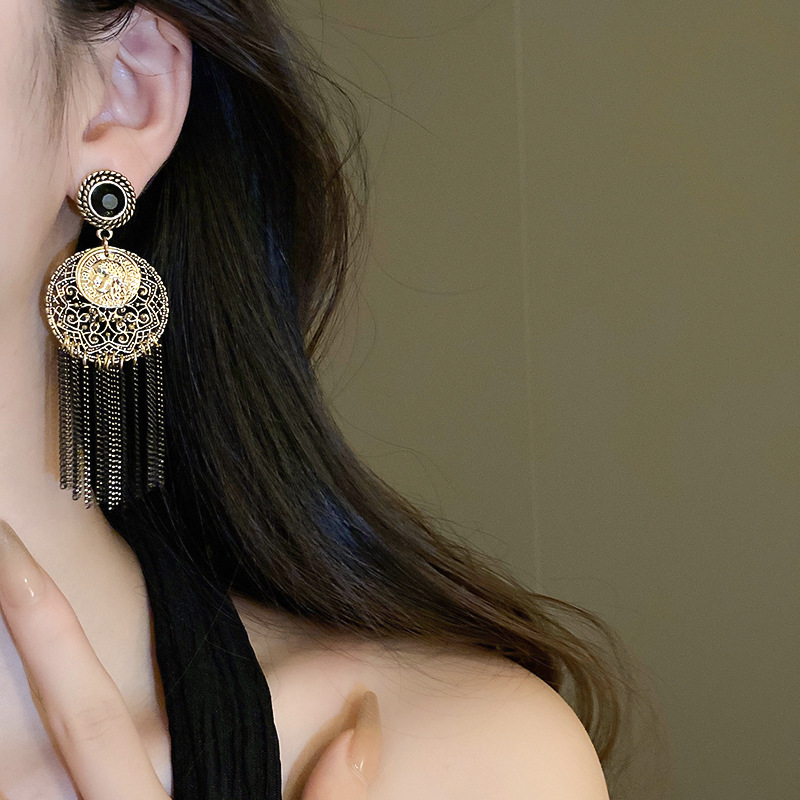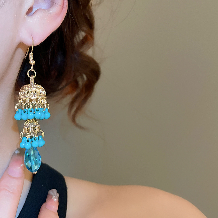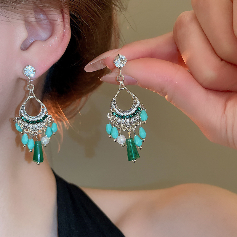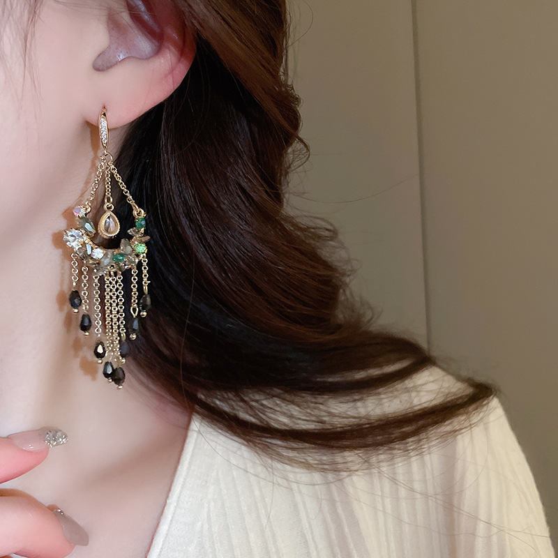 欧美跨境民族风镶钻水滴流苏耳环轻奢高级感耳钉女耳饰设计感小众
