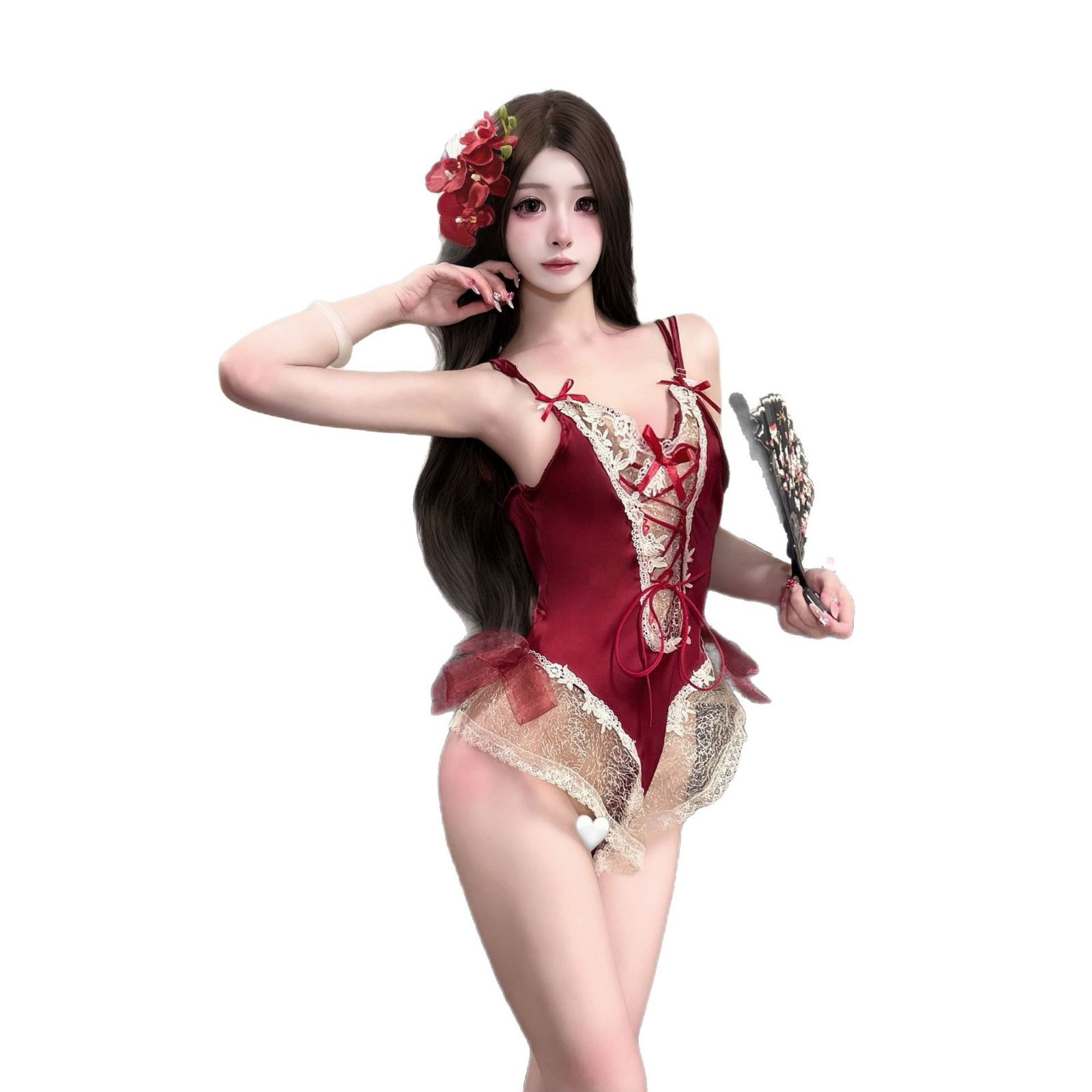 2025暴妃新款情趣内衣性感纯欲透明蕾丝睡衣制服套装诱惑连体衣女