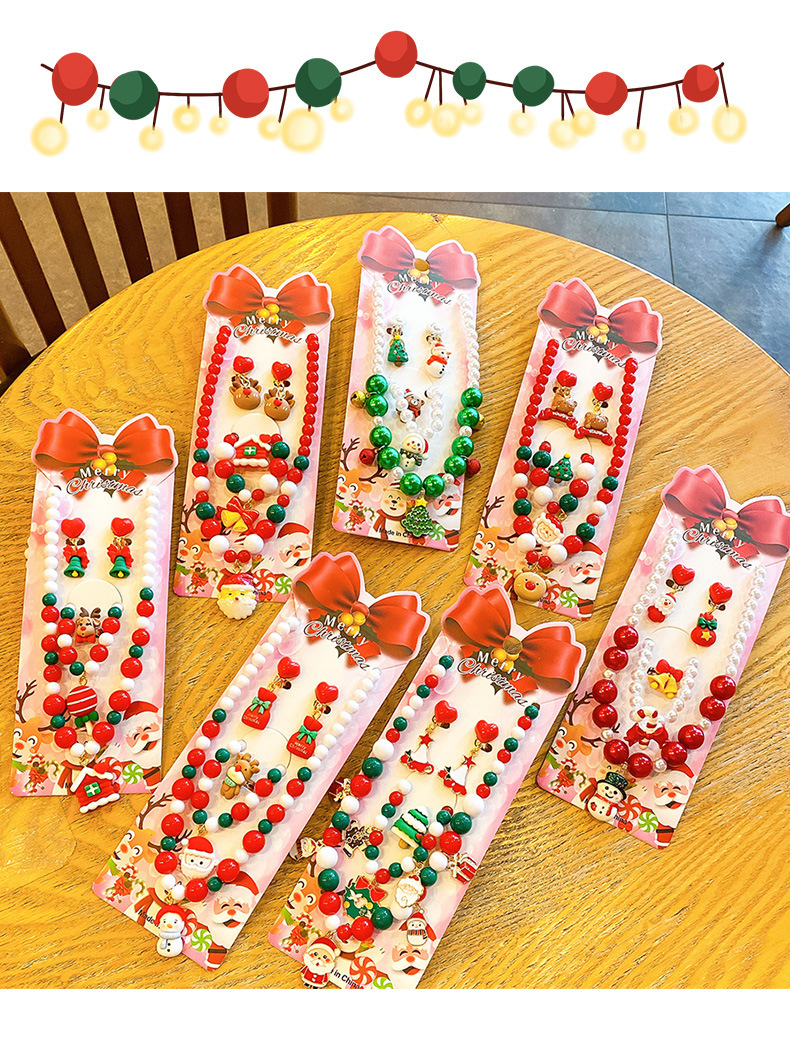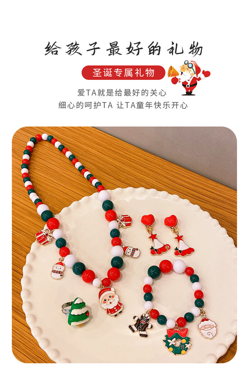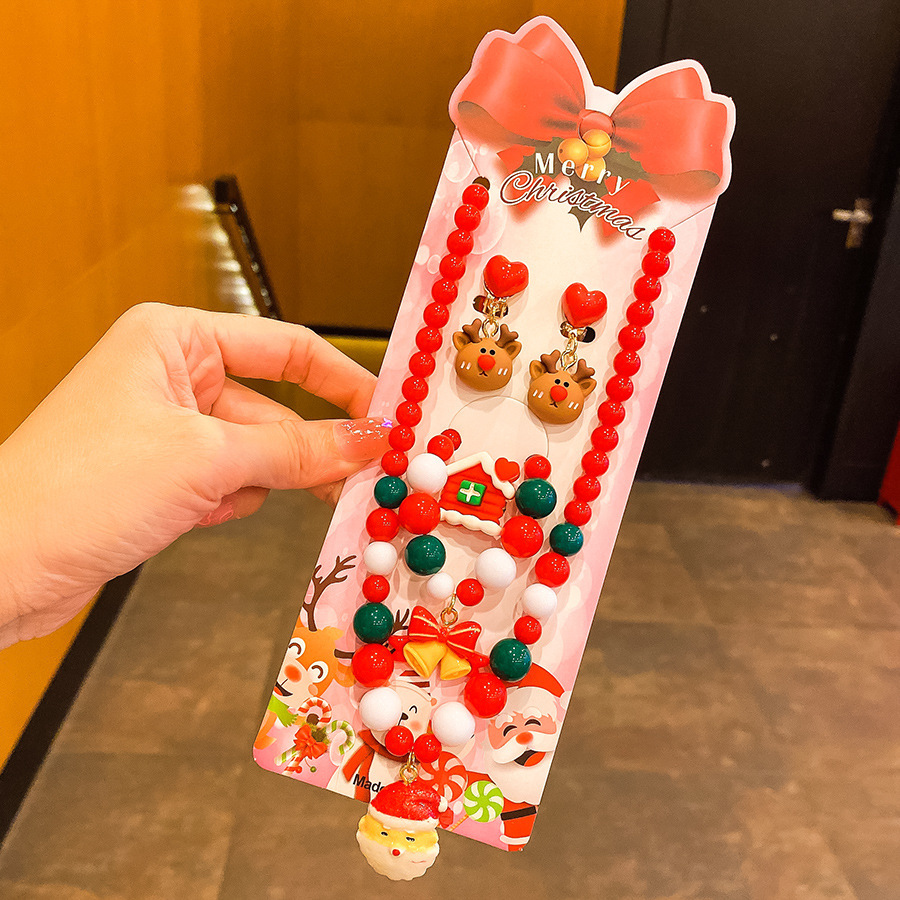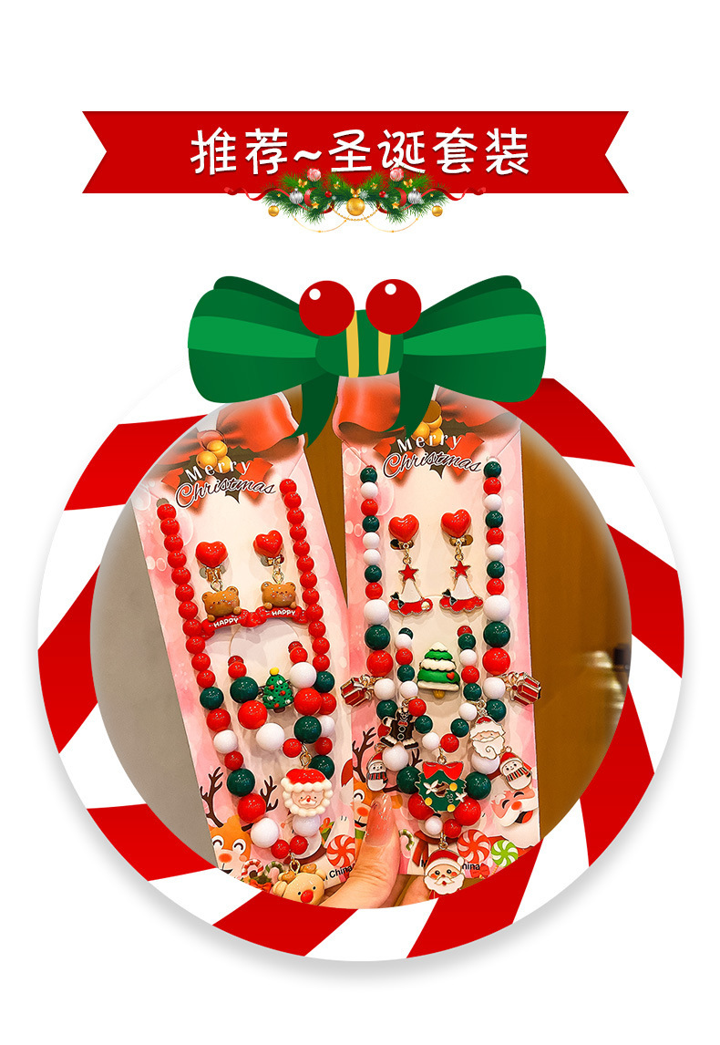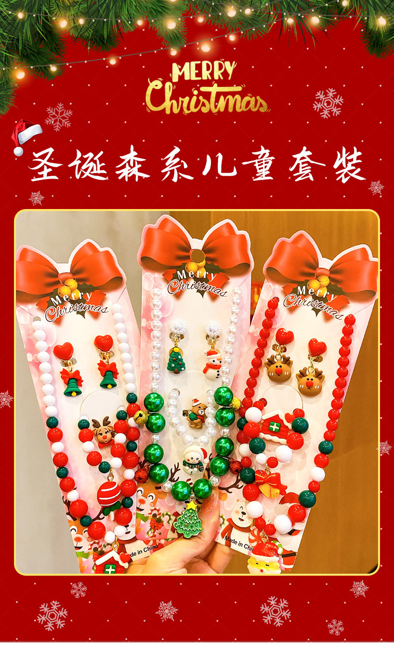 跨境热销圣诞儿童项链女耳环可爱卡通女童公主饰品套装圣诞节装饰