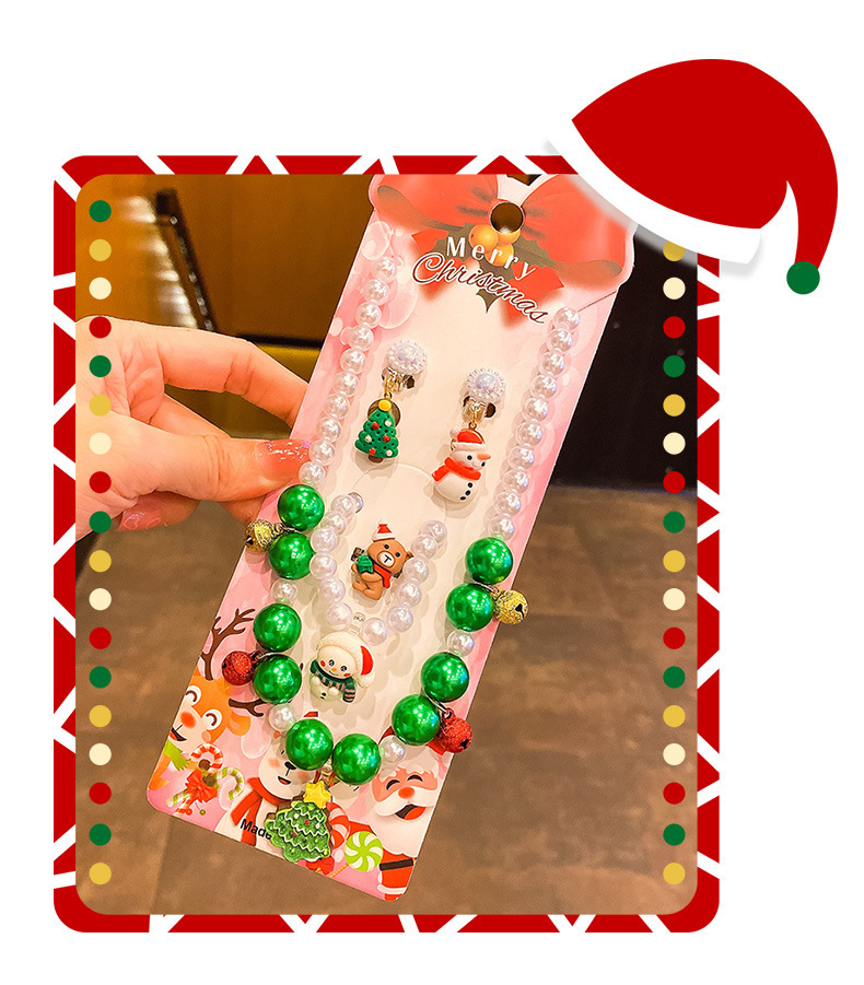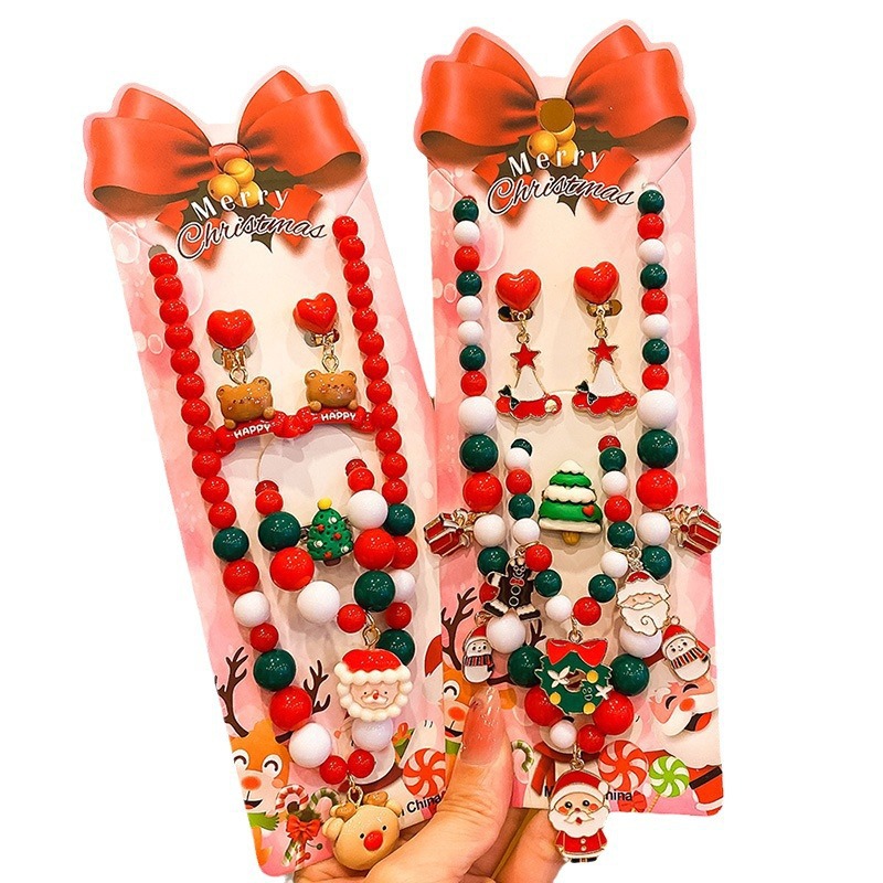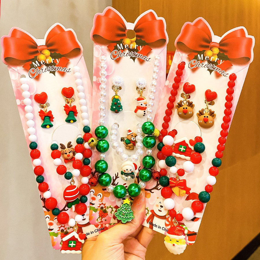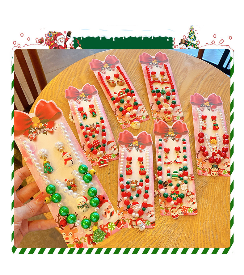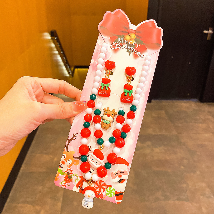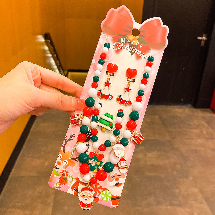 跨境热销圣诞儿童项链女耳环可爱卡通女童公主饰品套装圣诞节装饰