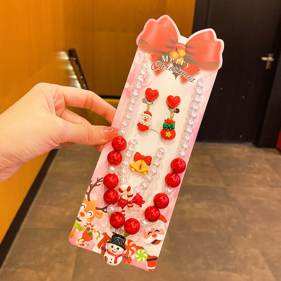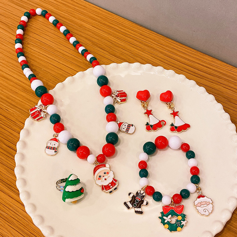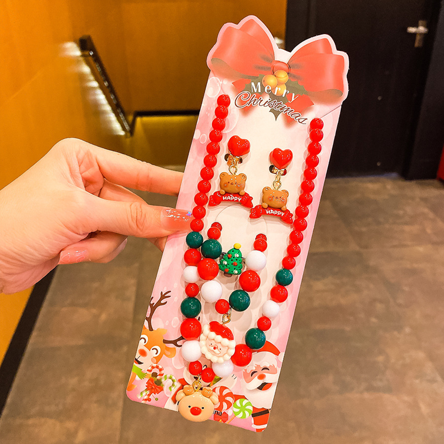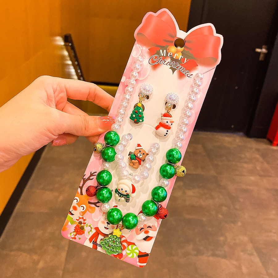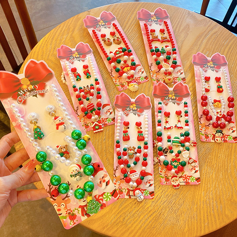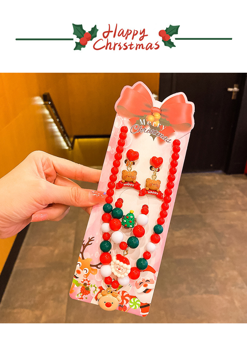 跨境热销圣诞儿童项链女耳环可爱卡通女童公主饰品套装圣诞节装饰