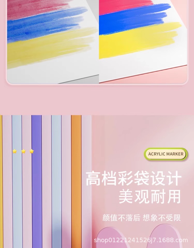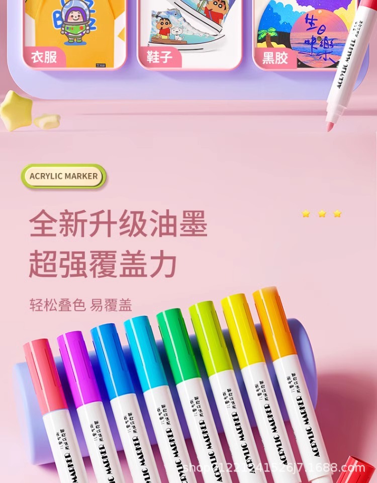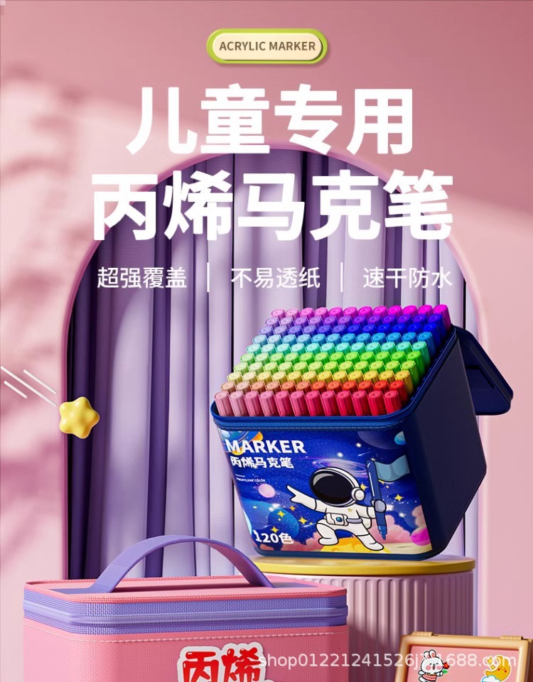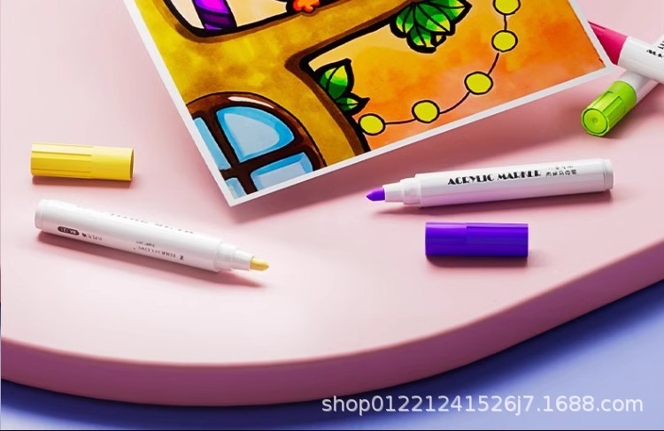 24色马克笔丙烯学生美术专用不透色可水洗速干水彩笔儿童绘图彩笔