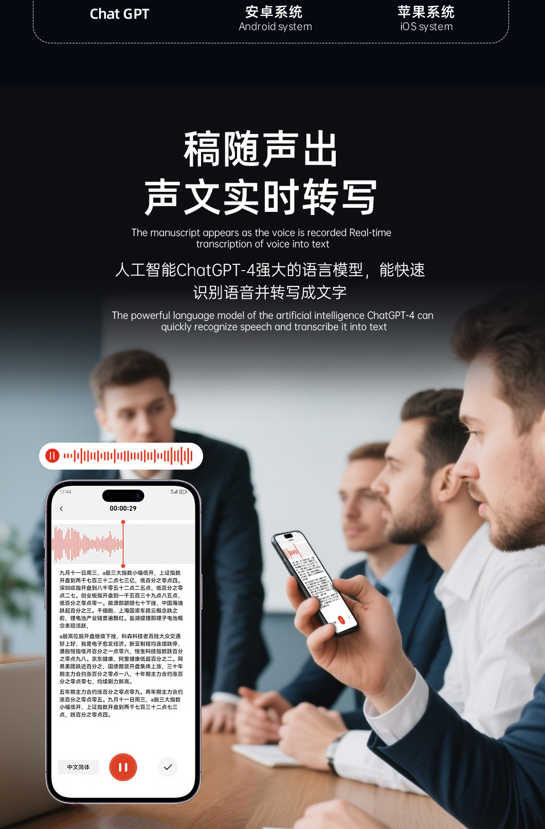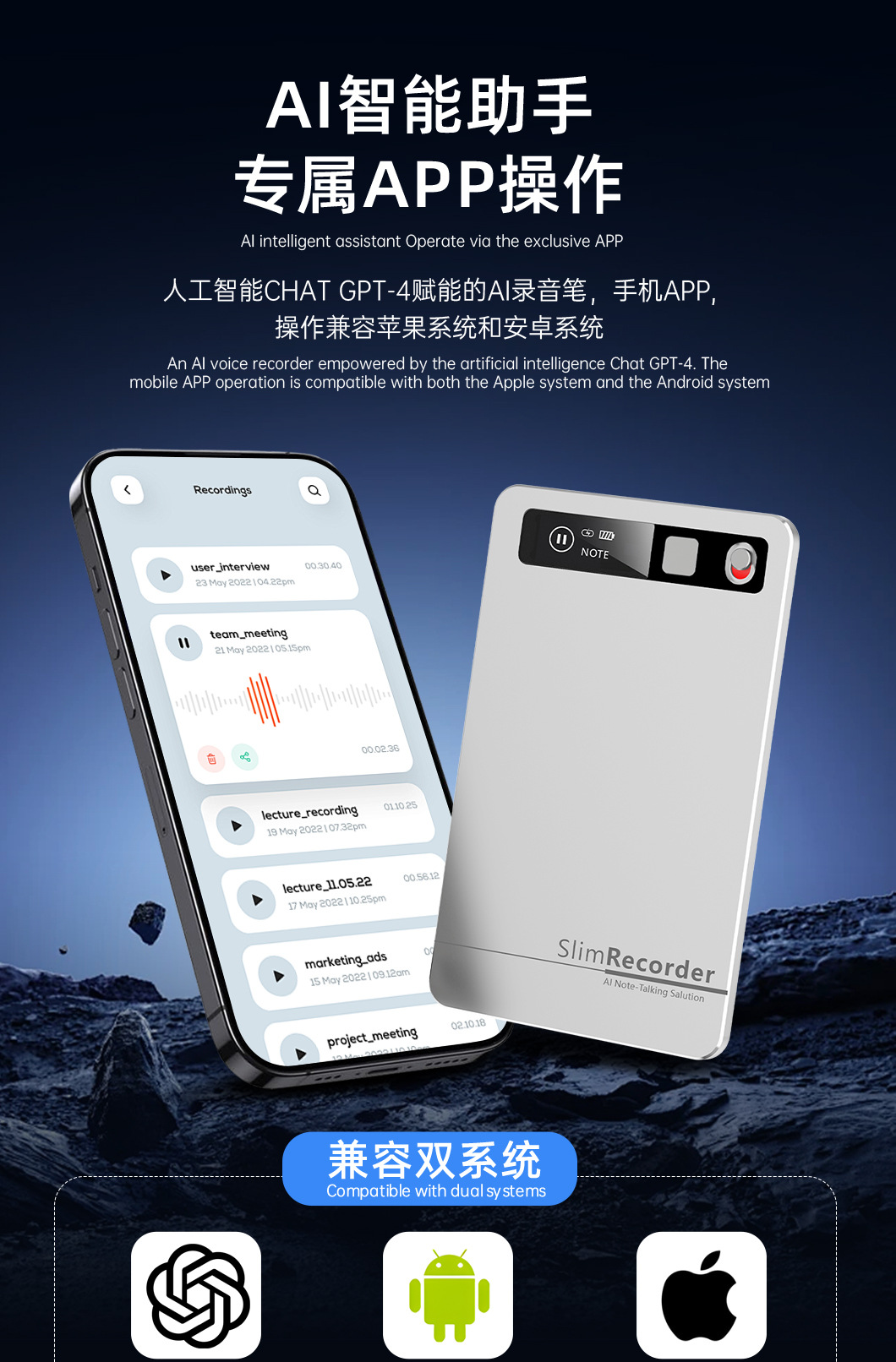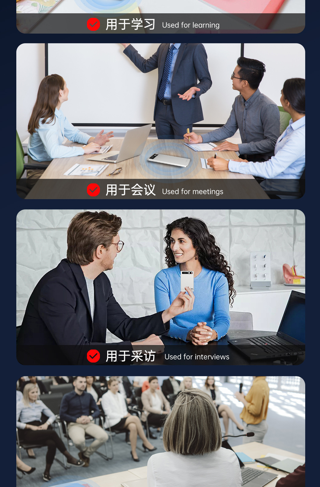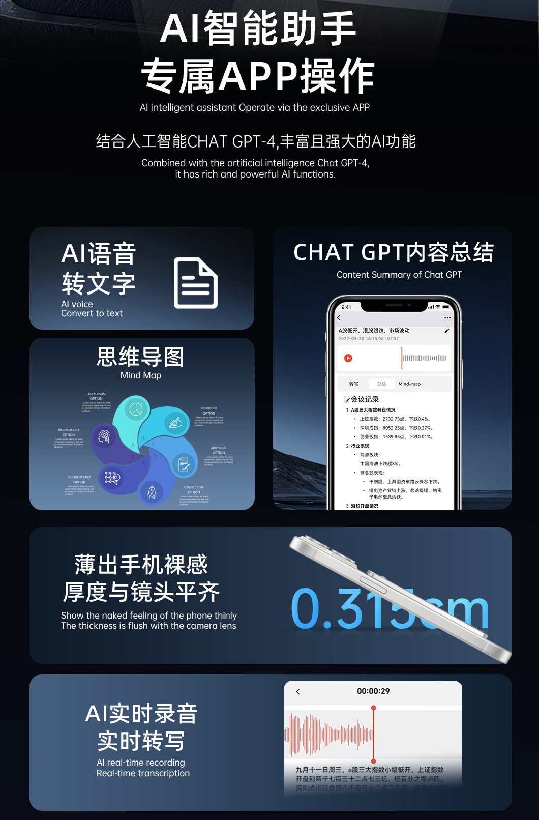随身超薄Ai录音笔高清降噪学生医生会议转写录音翻译多语种录音笔