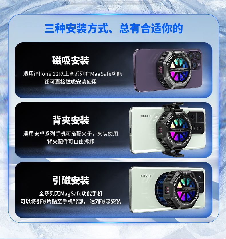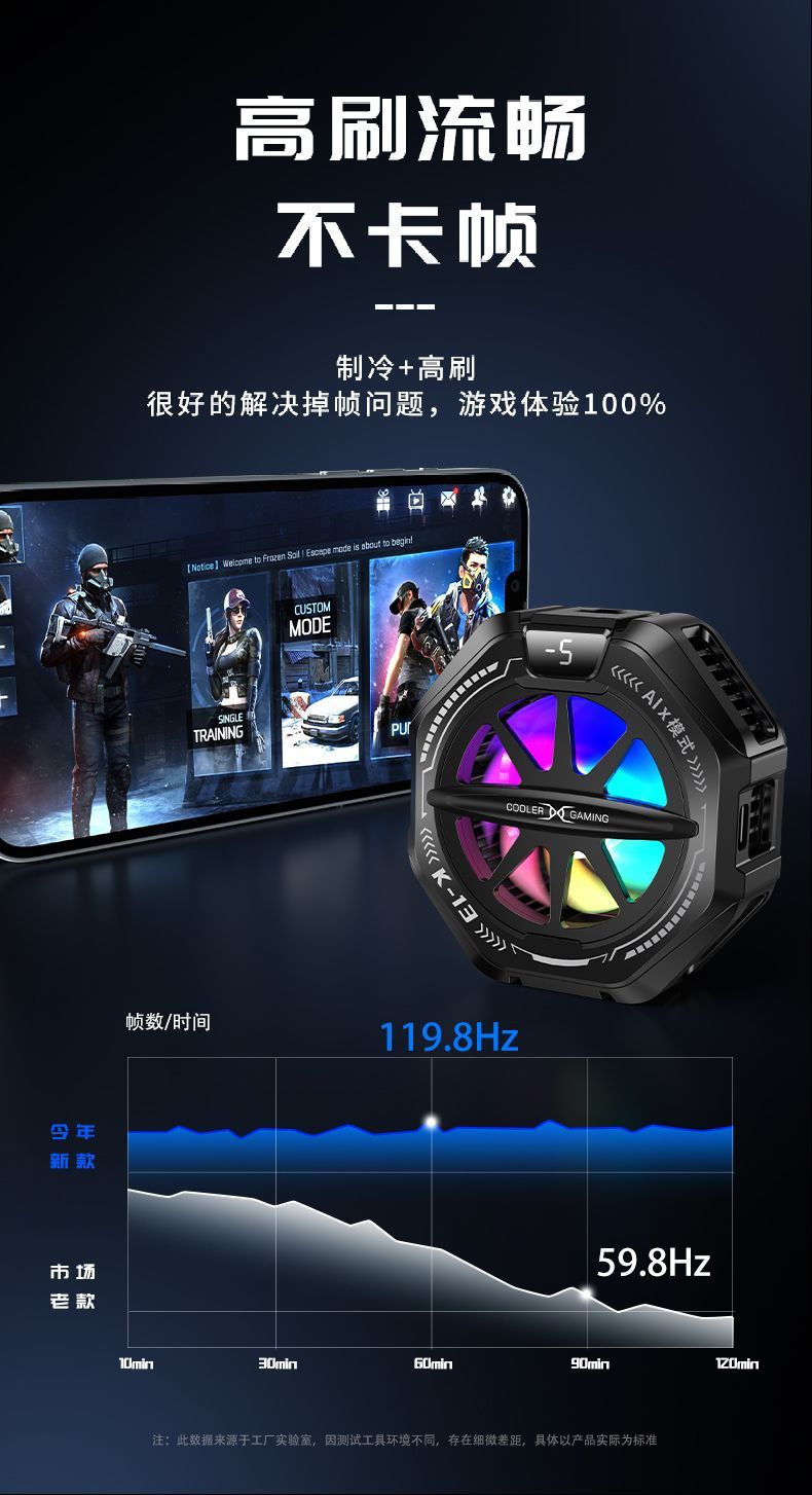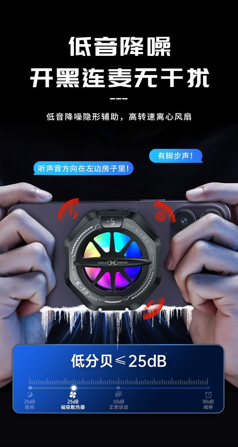 AI智能温控手机散热器半导体制冷结冰静音数显磁吸电竞降温通用