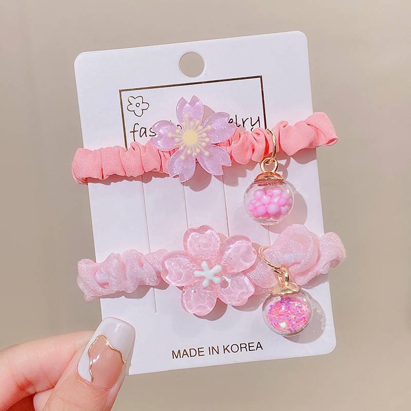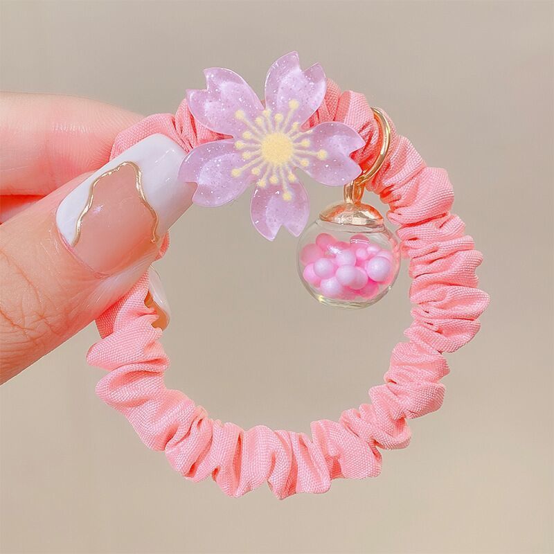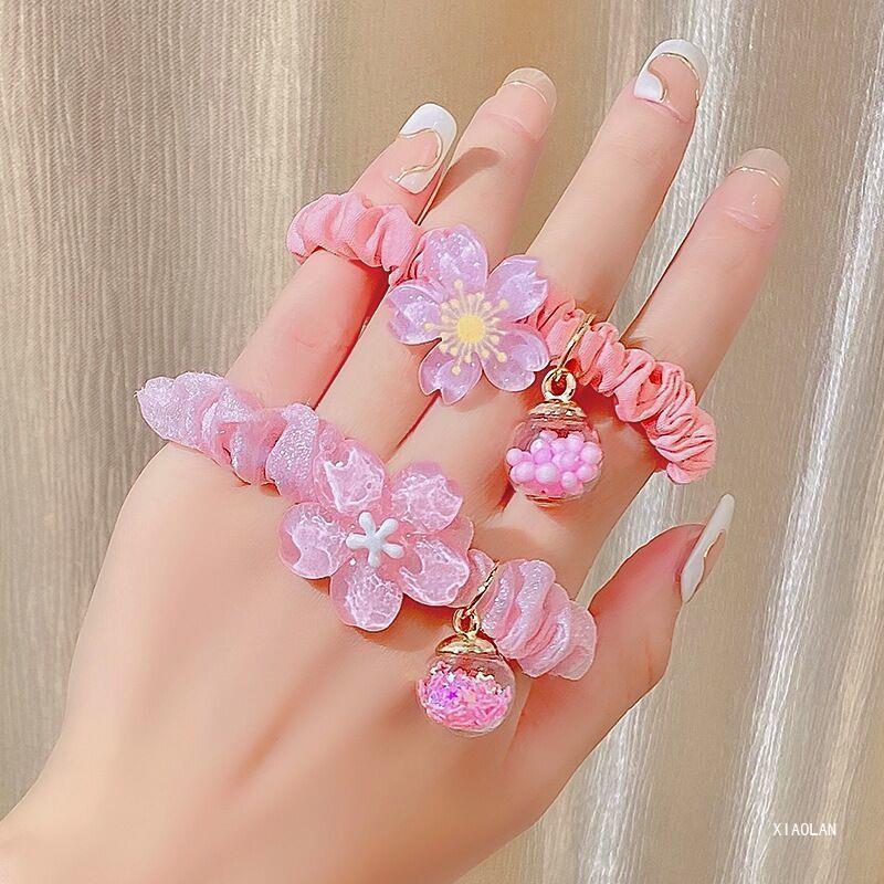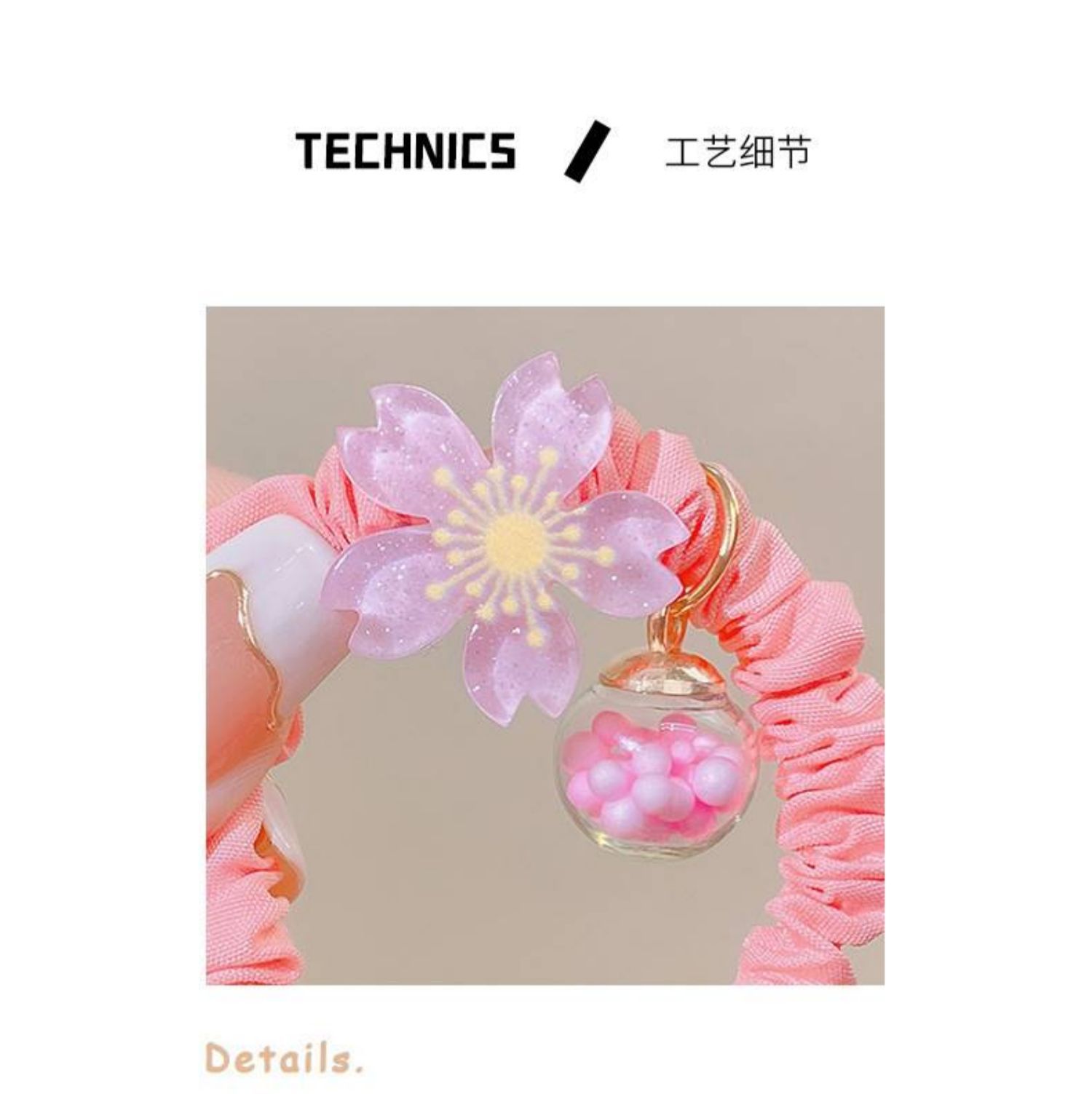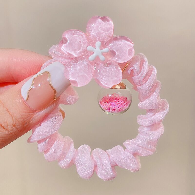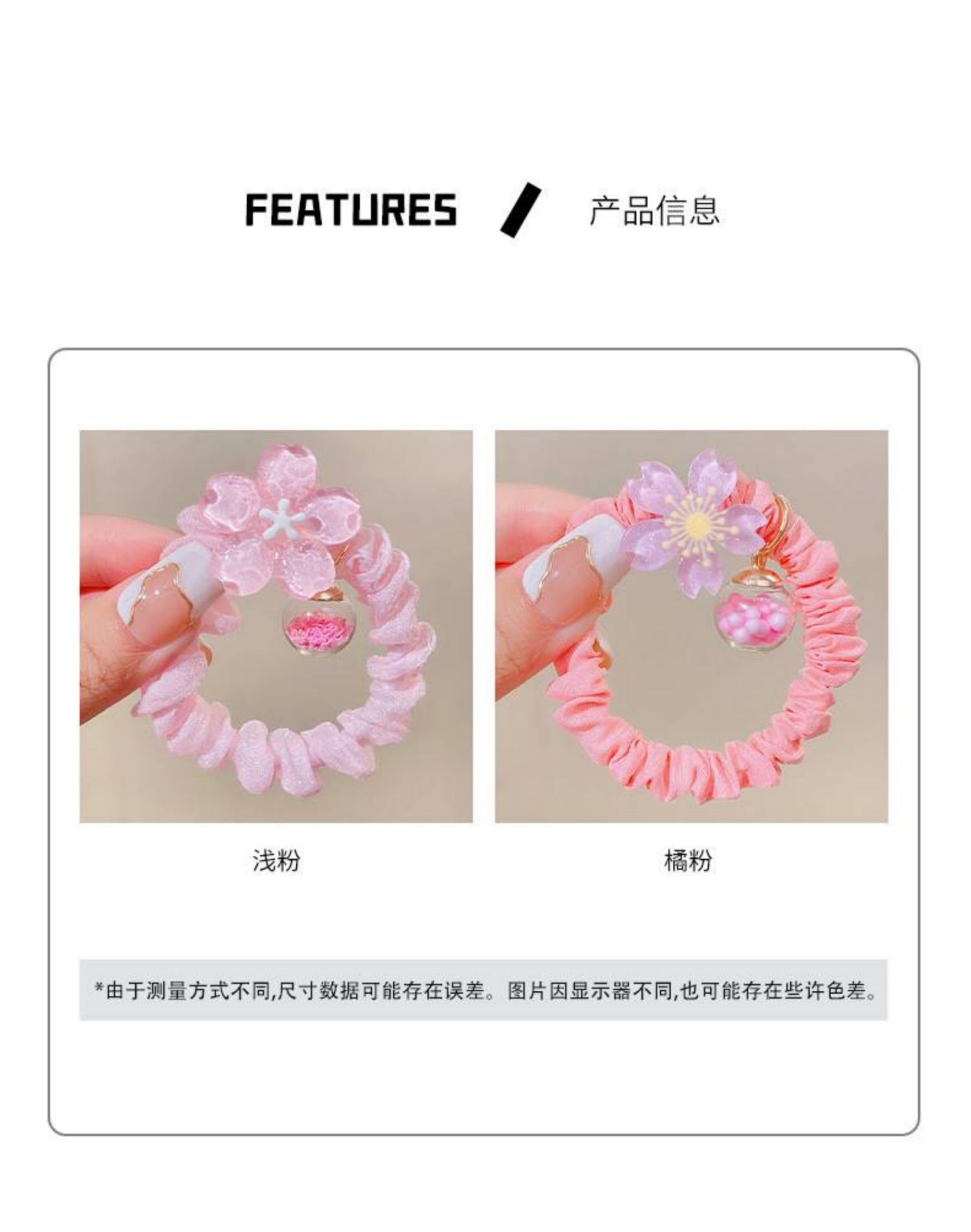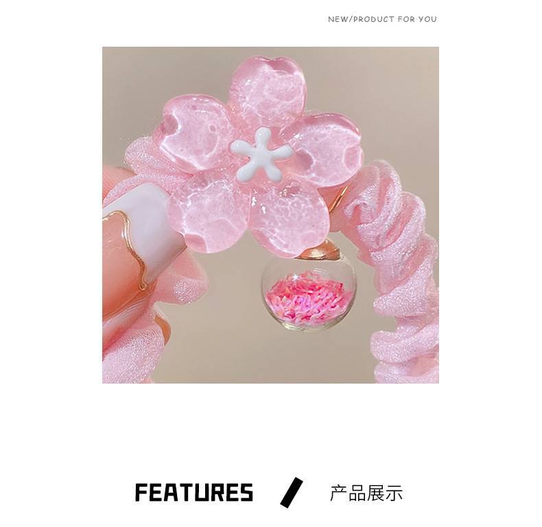 爆款粉色樱花发圈带球小肠甜美发夹ins风高级感头绳软萌少女发饰