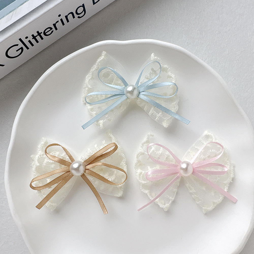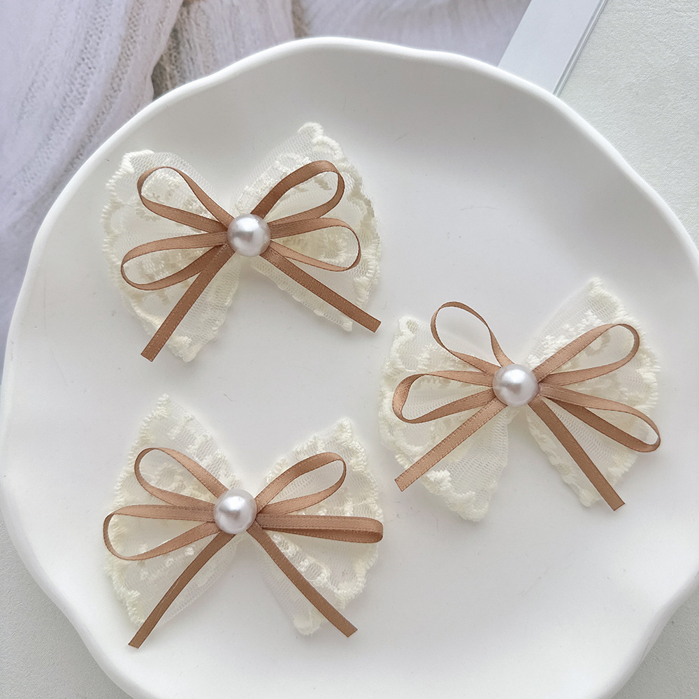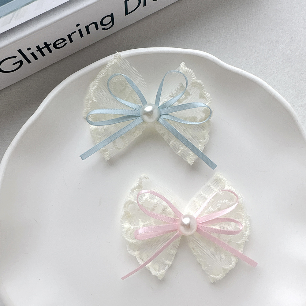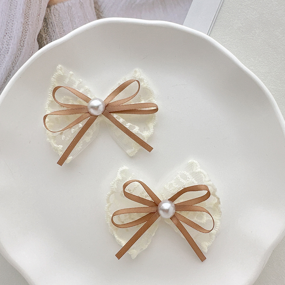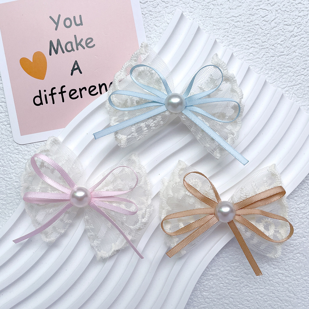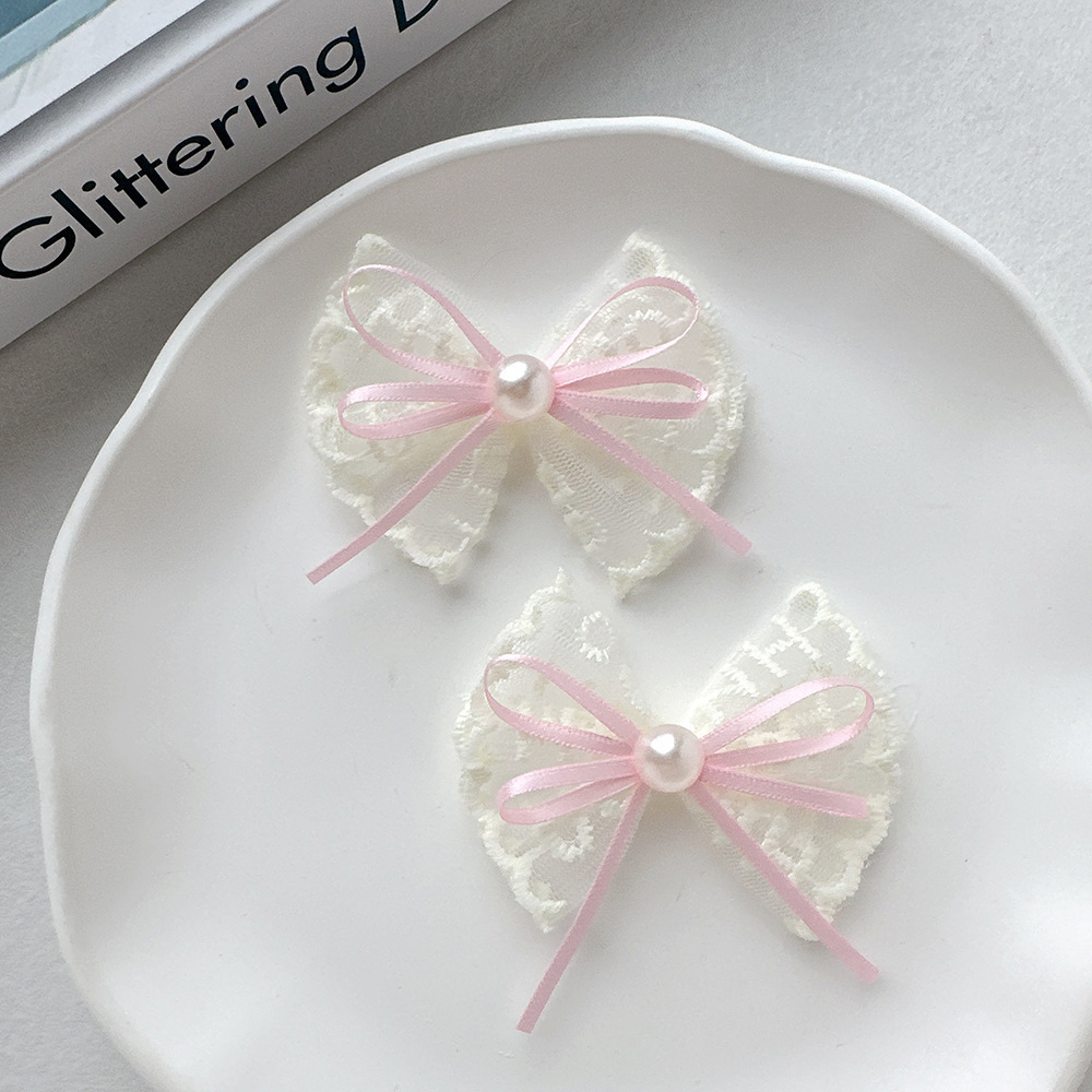 韩式蕾丝珍珠蝴蝶结简约头饰发夹气质花边手工高档发卡边夹刘海夹