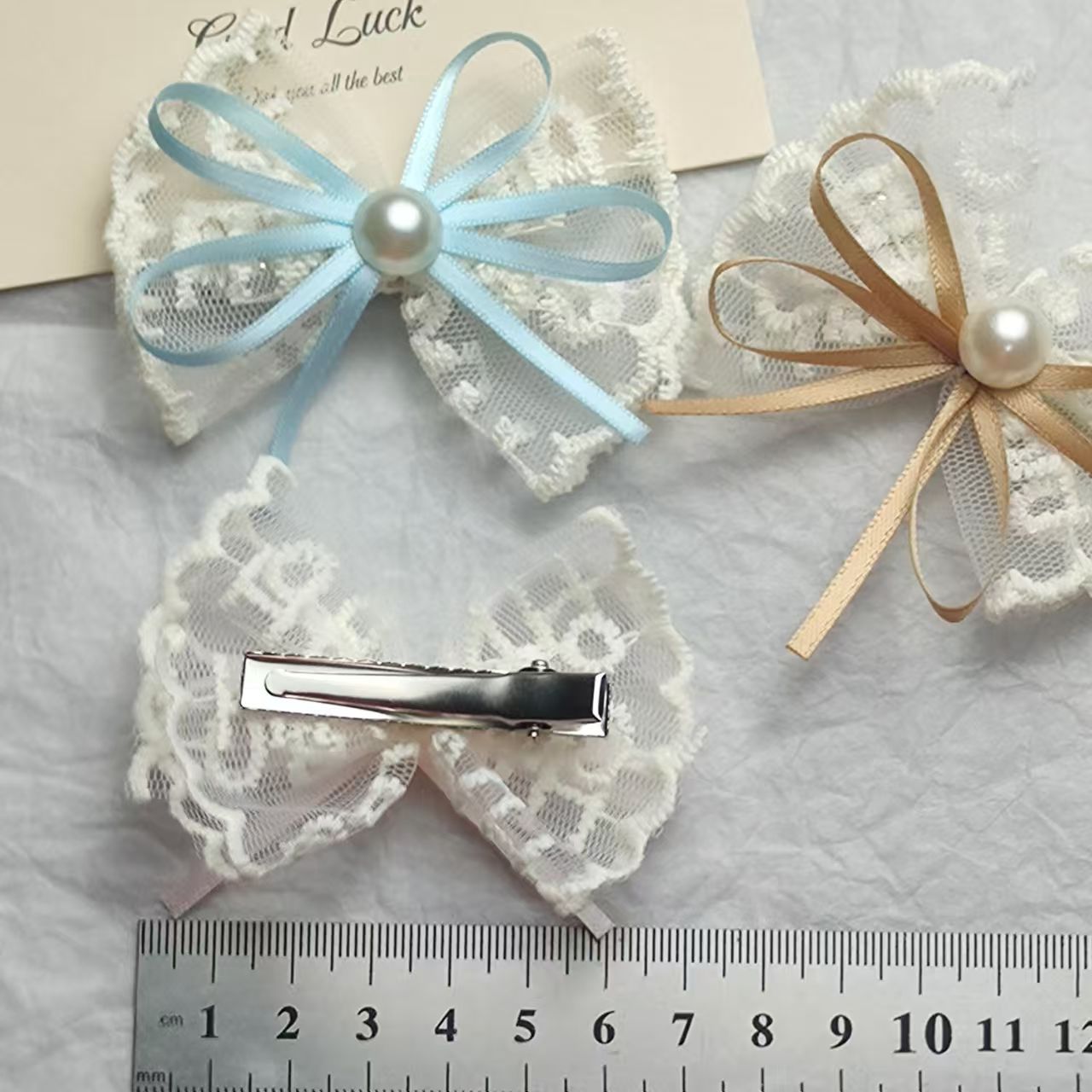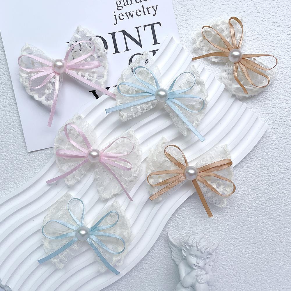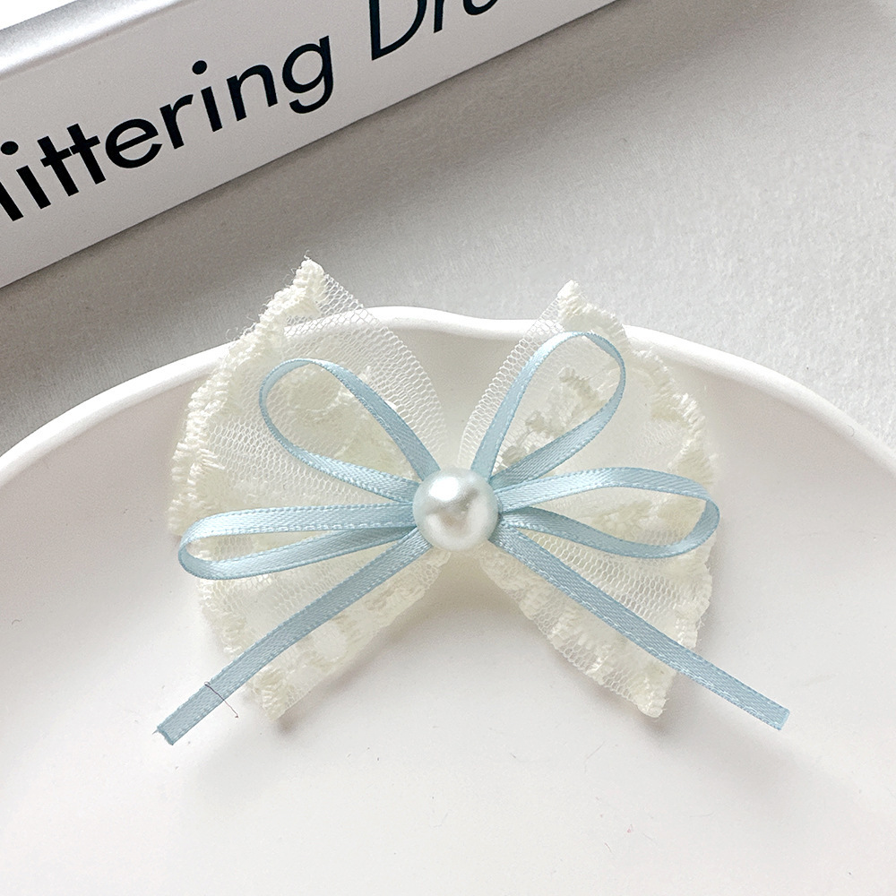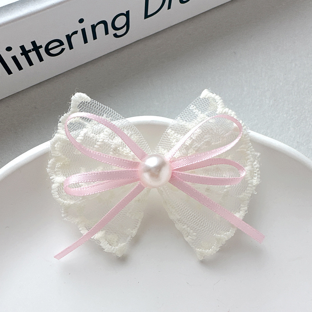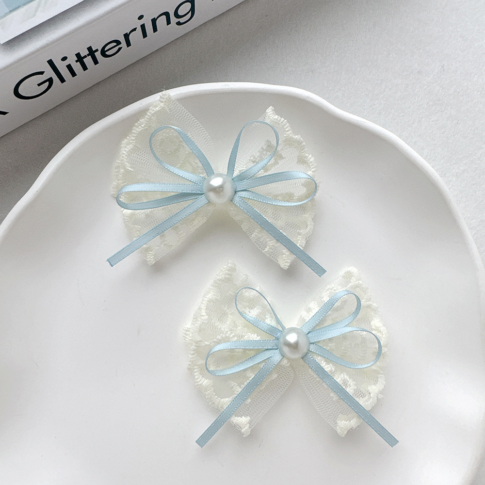 韩式蕾丝珍珠蝴蝶结简约头饰发夹气质花边手工高档发卡边夹刘海夹