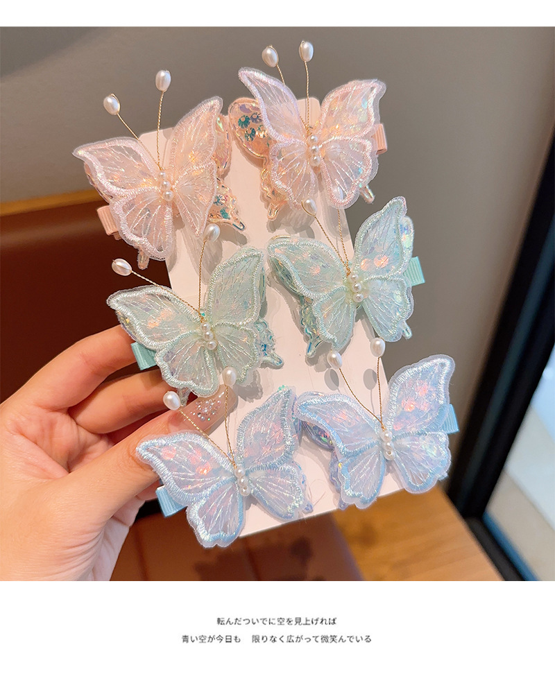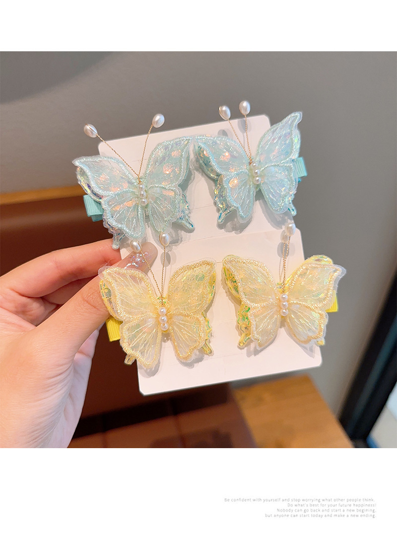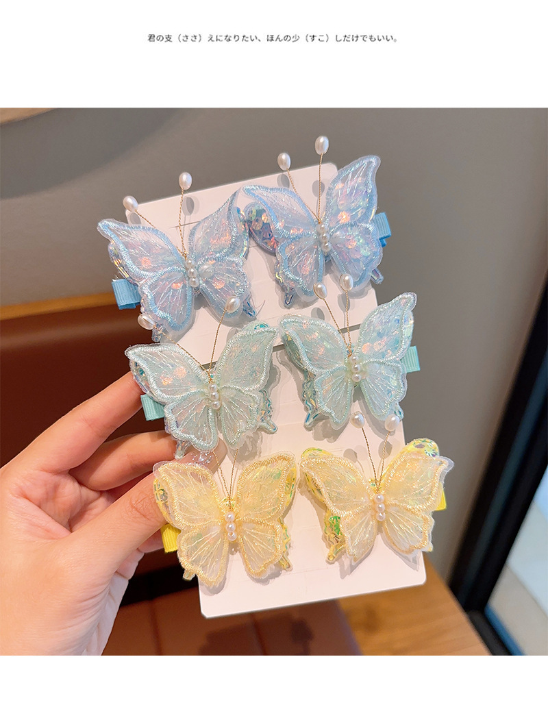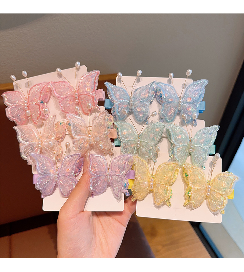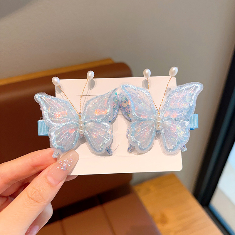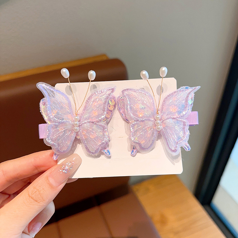 新款双层网纱珍珠蝴蝶边夹侧边刘海发夹小女孩碎发头饰超仙发饰女