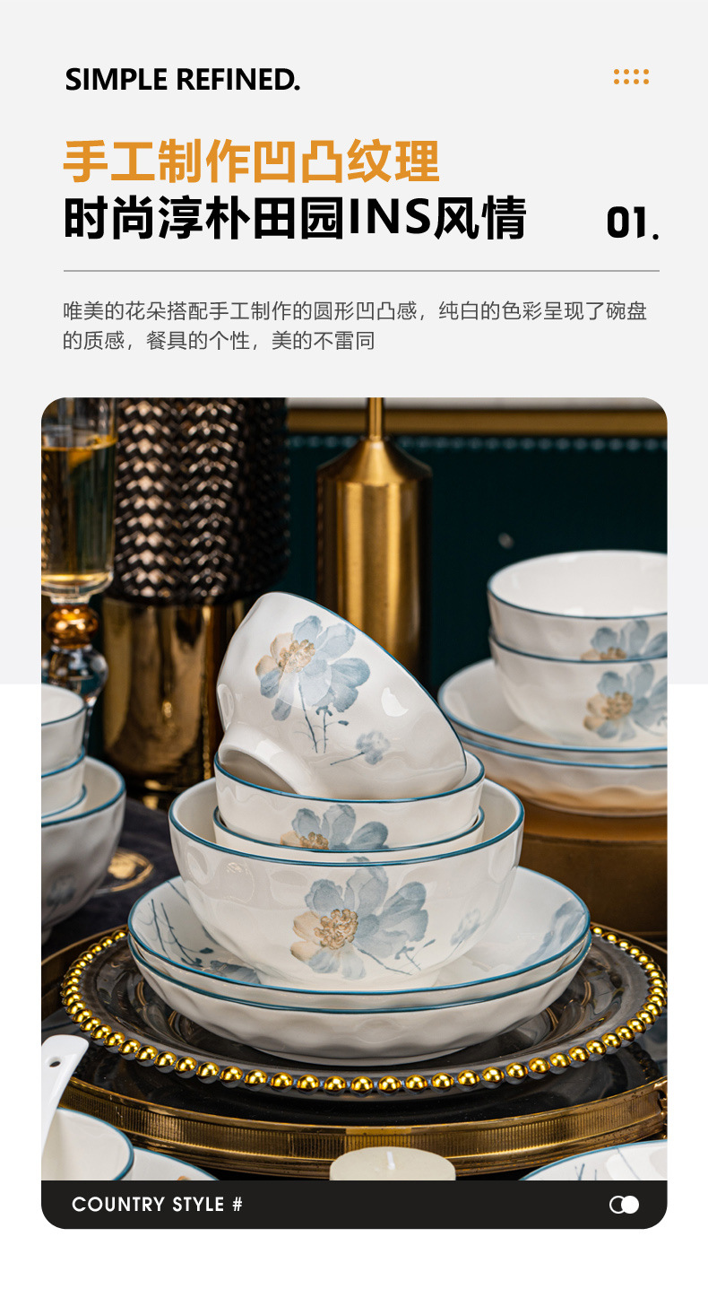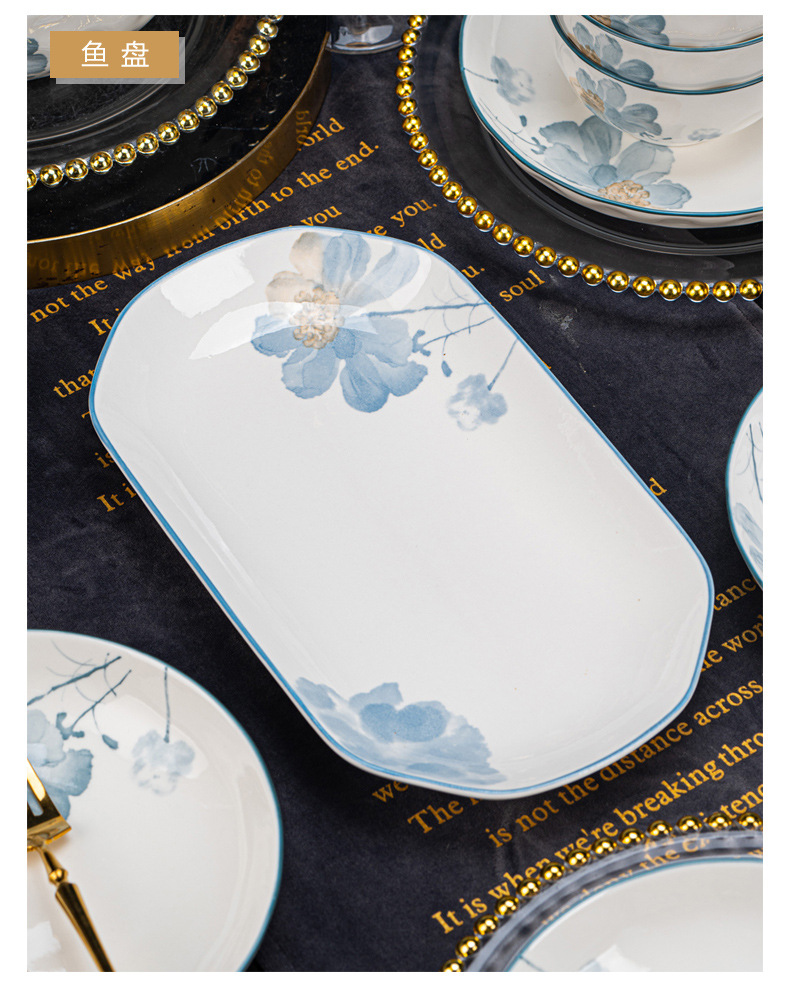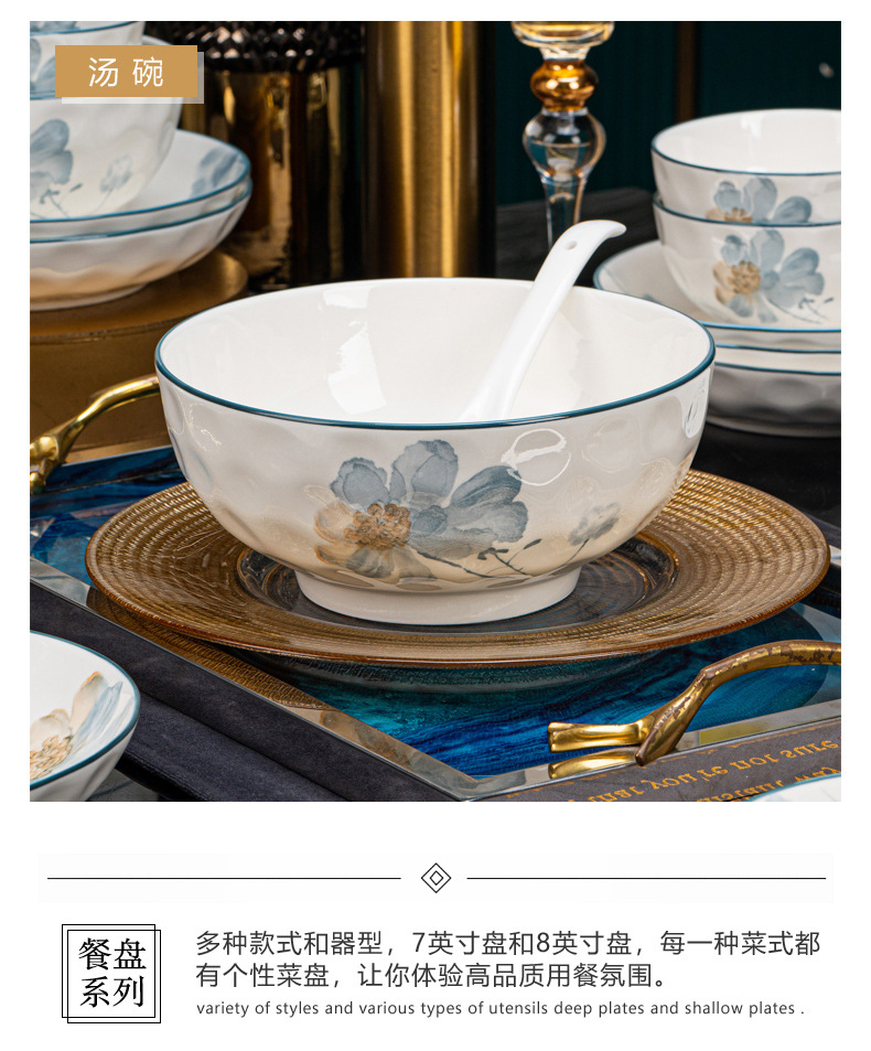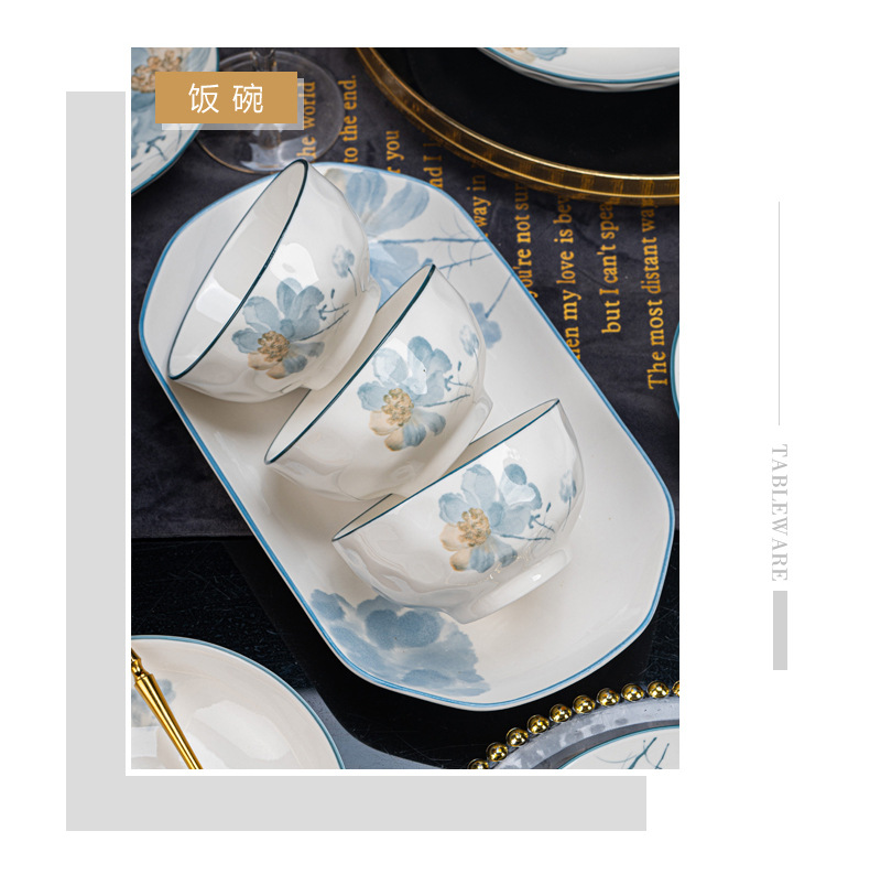 景德镇凝香陶瓷餐具饭碗面碗盘子鱼盘釉下彩碗碟套装家用diy自选