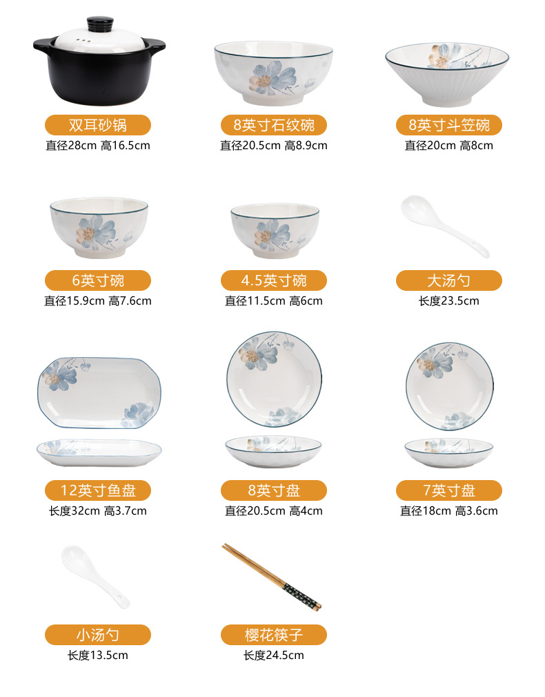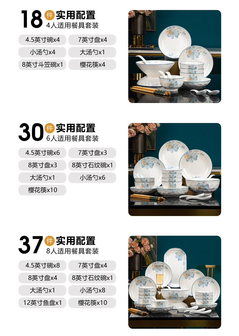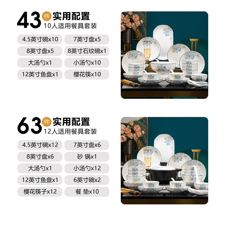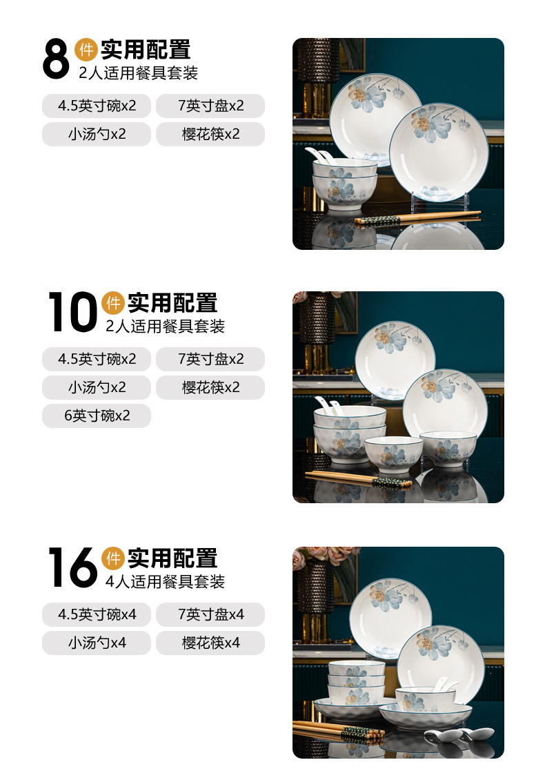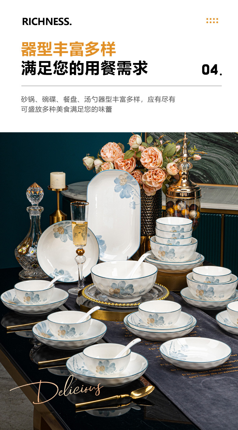 景德镇凝香陶瓷餐具饭碗面碗盘子鱼盘釉下彩碗碟套装家用diy自选