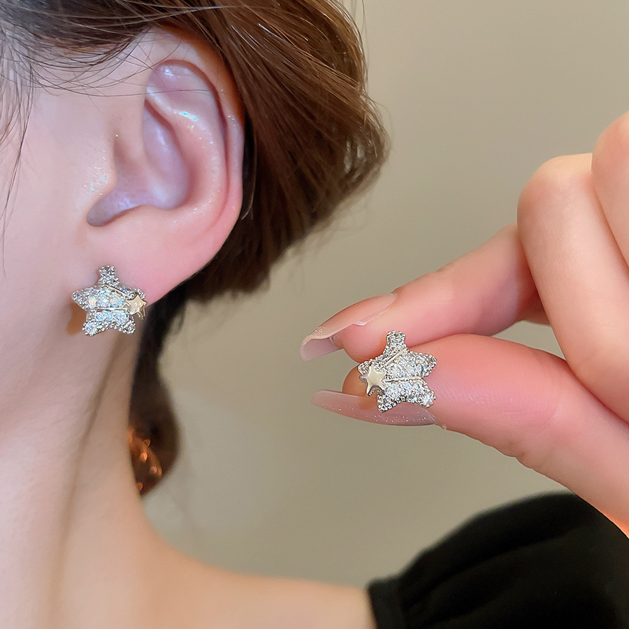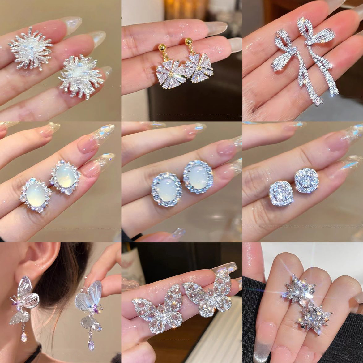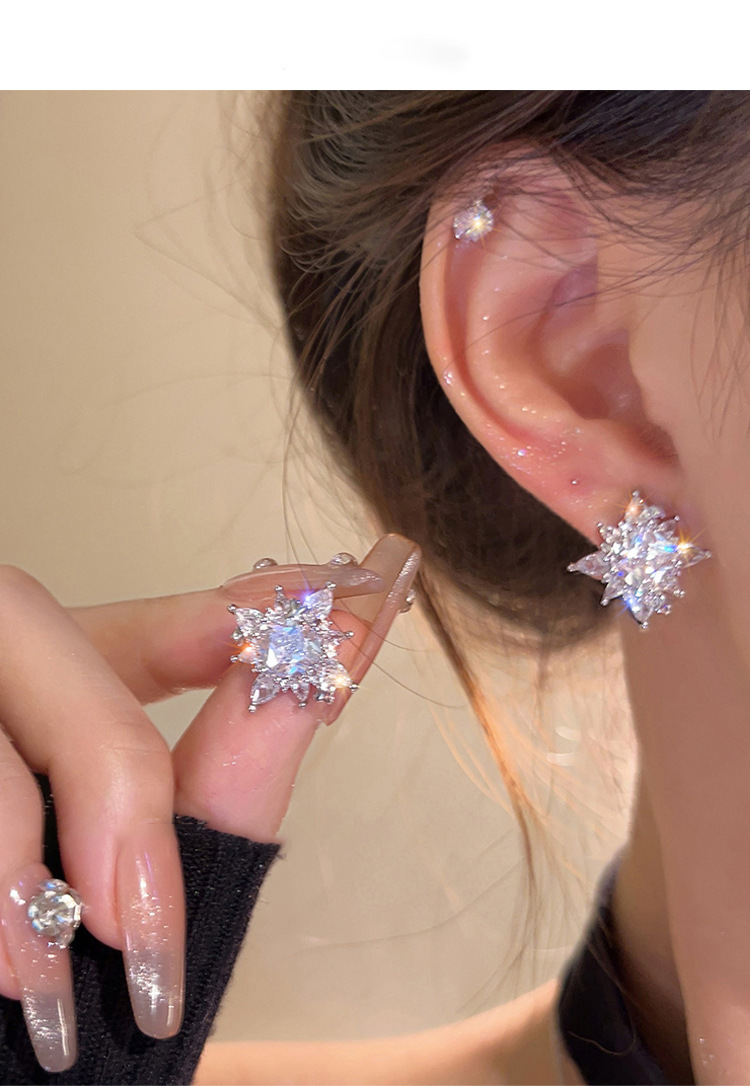 韩系超闪锆石花朵烟花耳环轻奢高级感耳钉时尚精致耳饰设计感小众