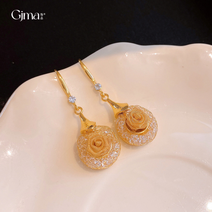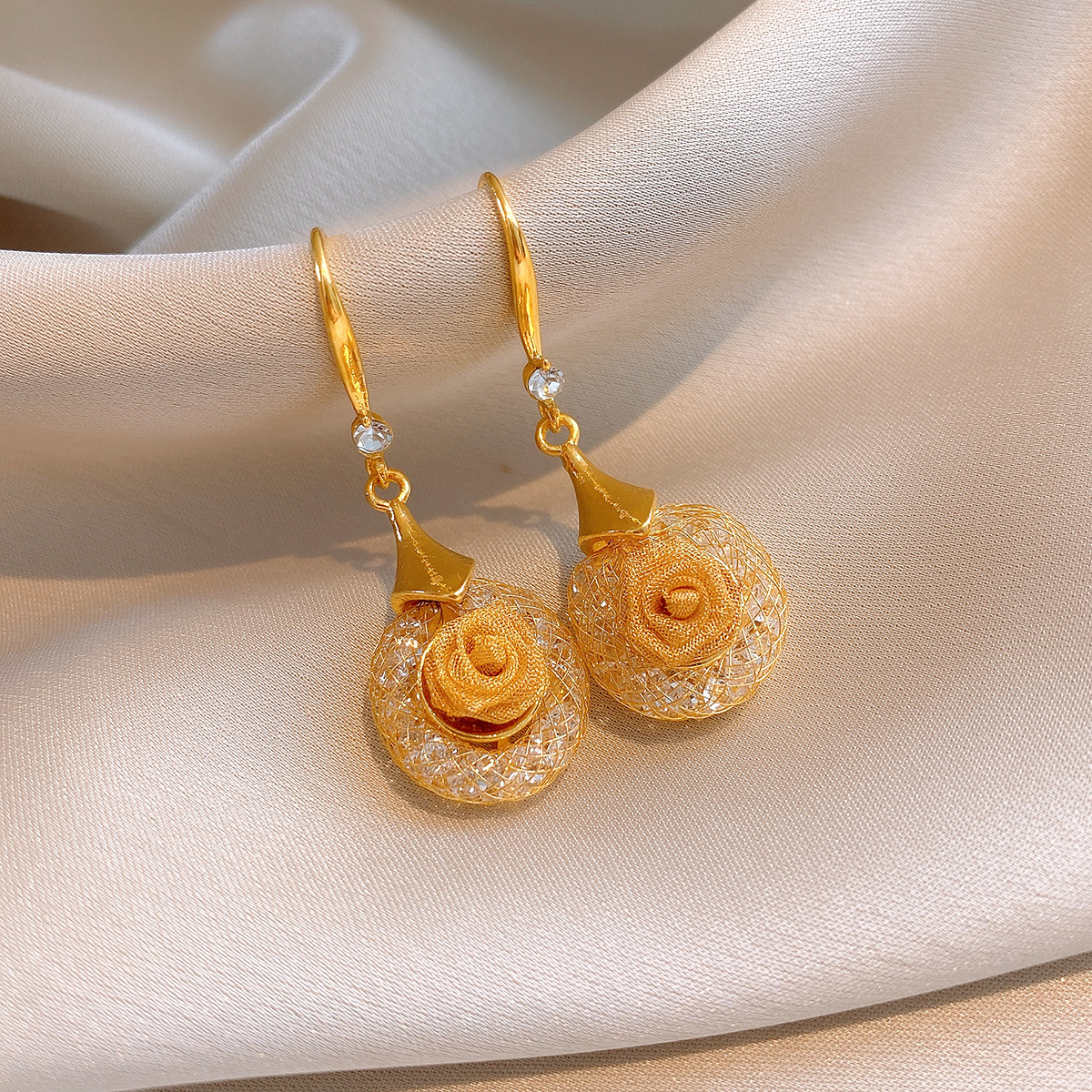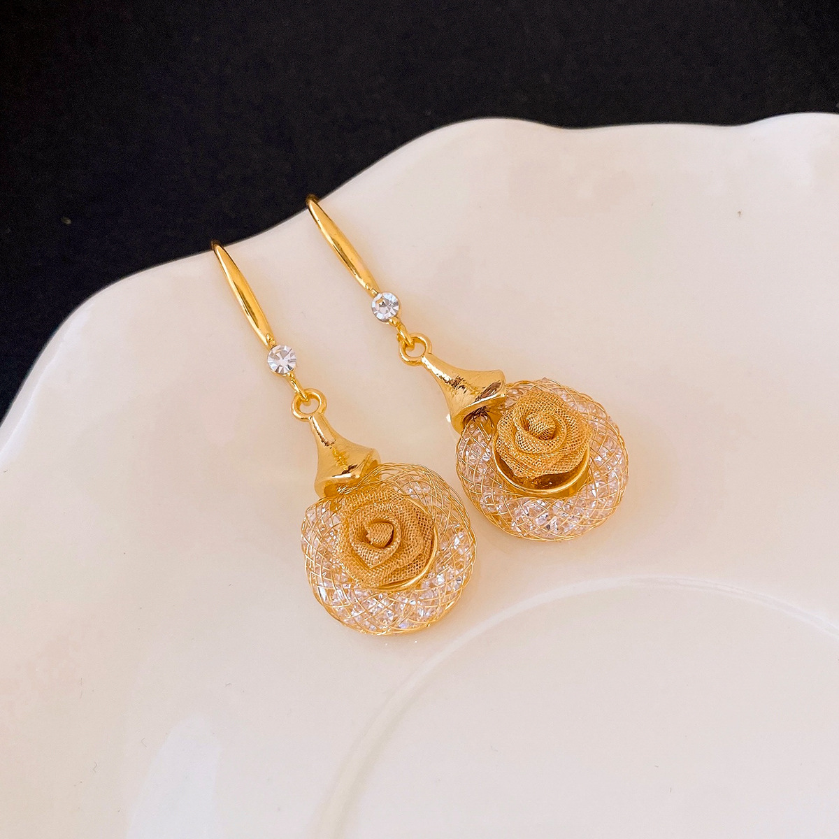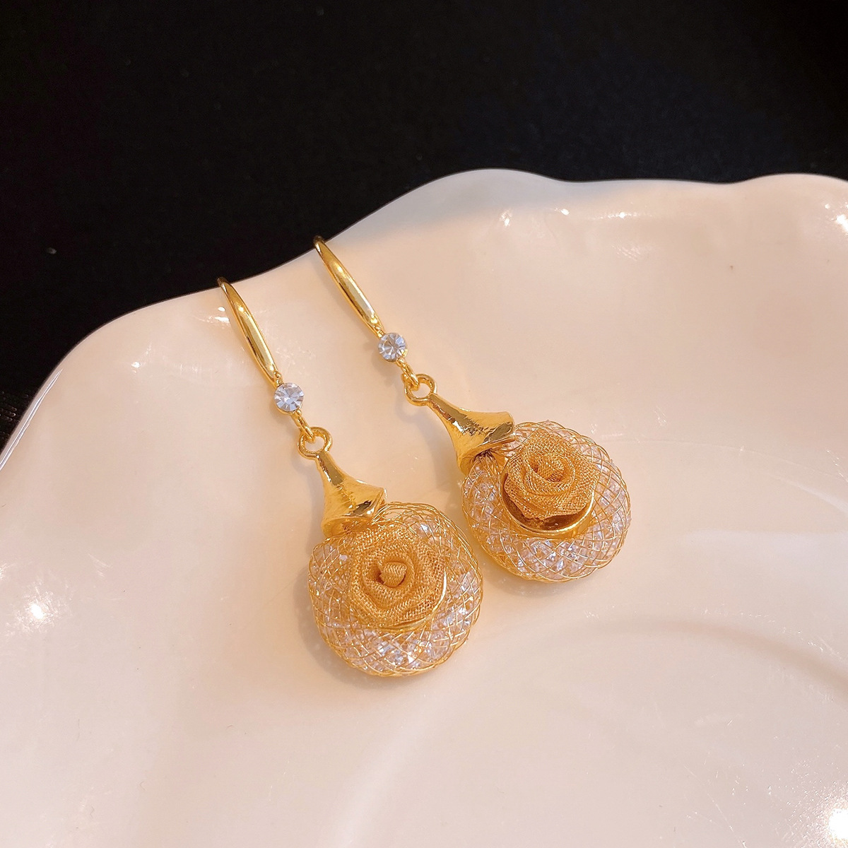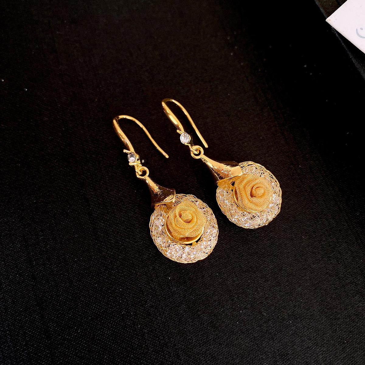 法式精致镶钻网纱花朵耳环轻奢高级感耳钩时尚个性耳饰设计感小众