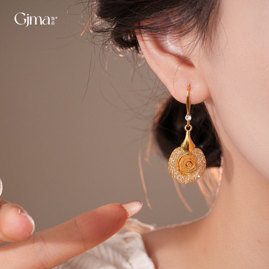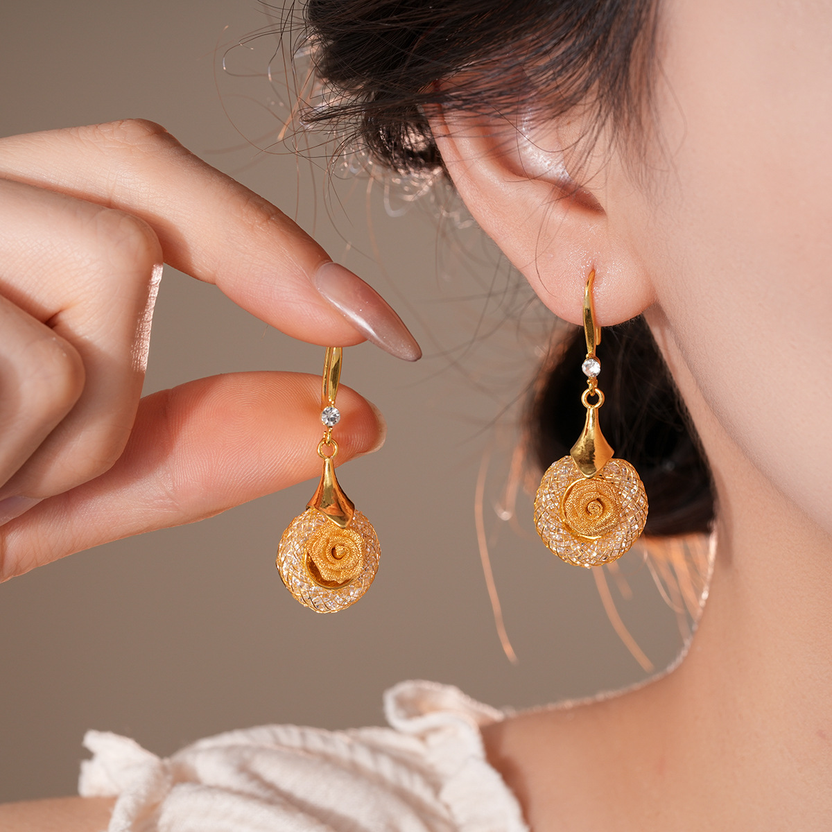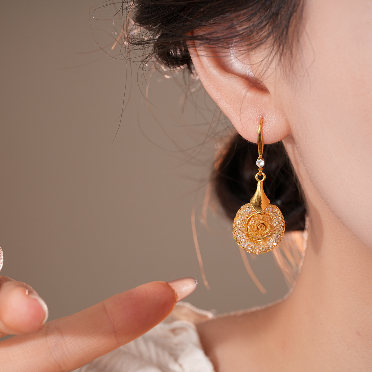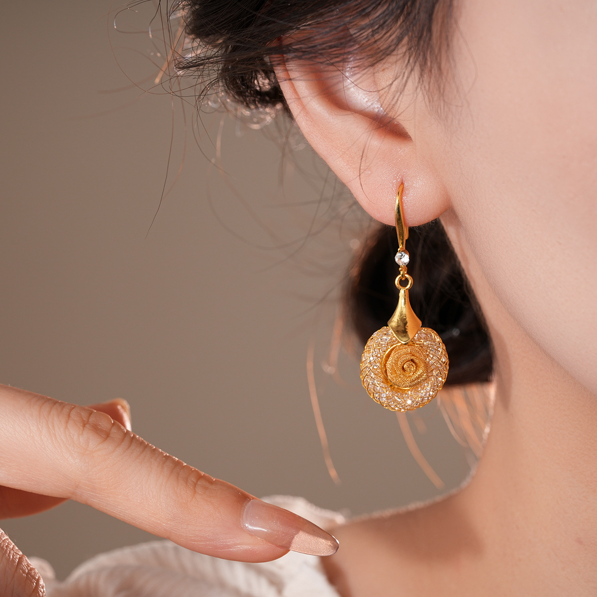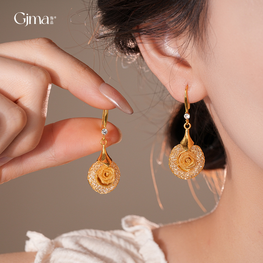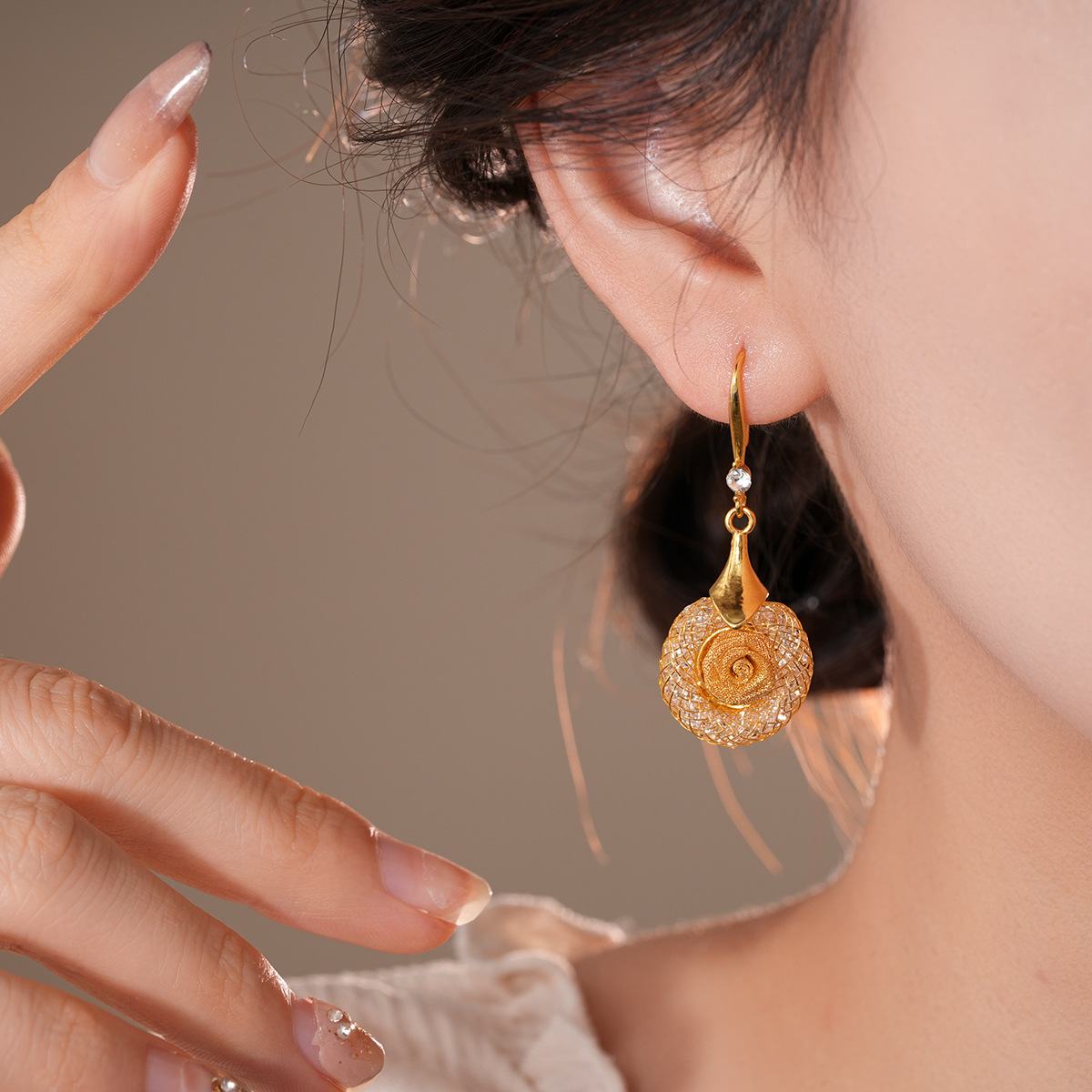 法式精致镶钻网纱花朵耳环轻奢高级感耳钩时尚个性耳饰设计感小众