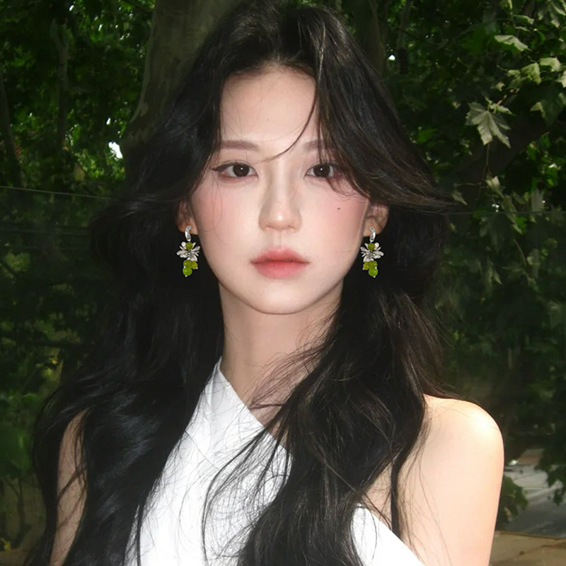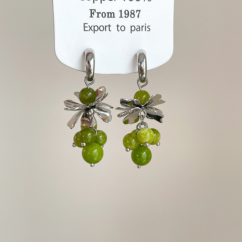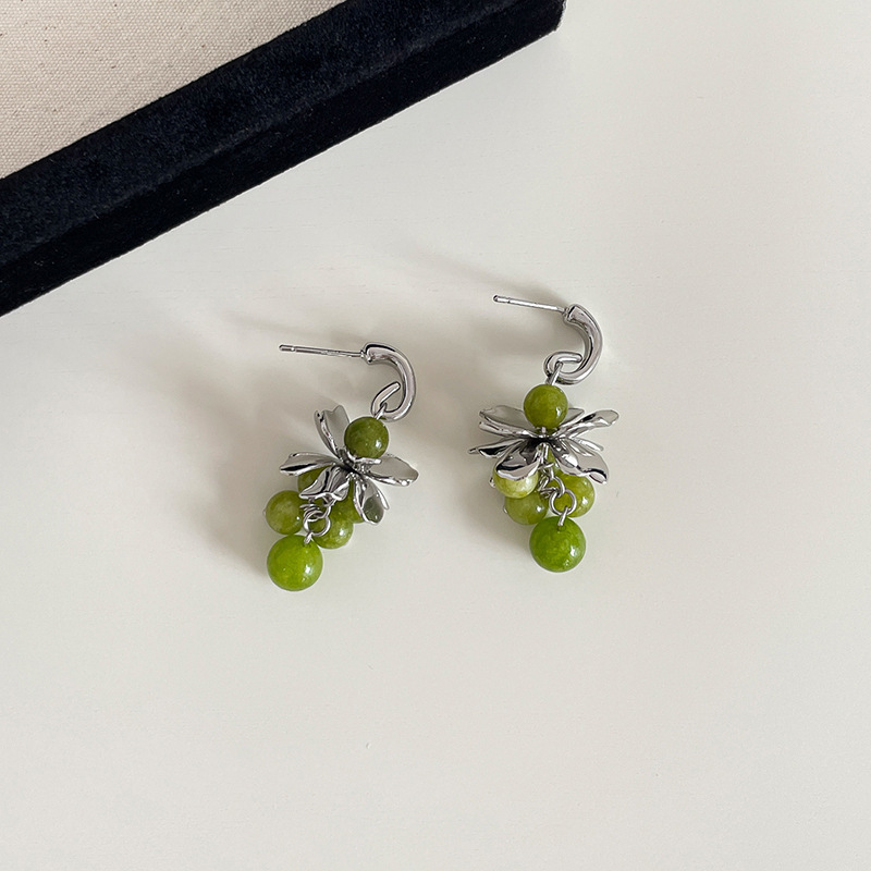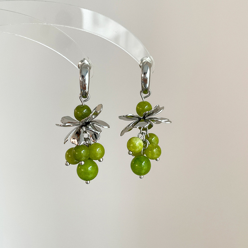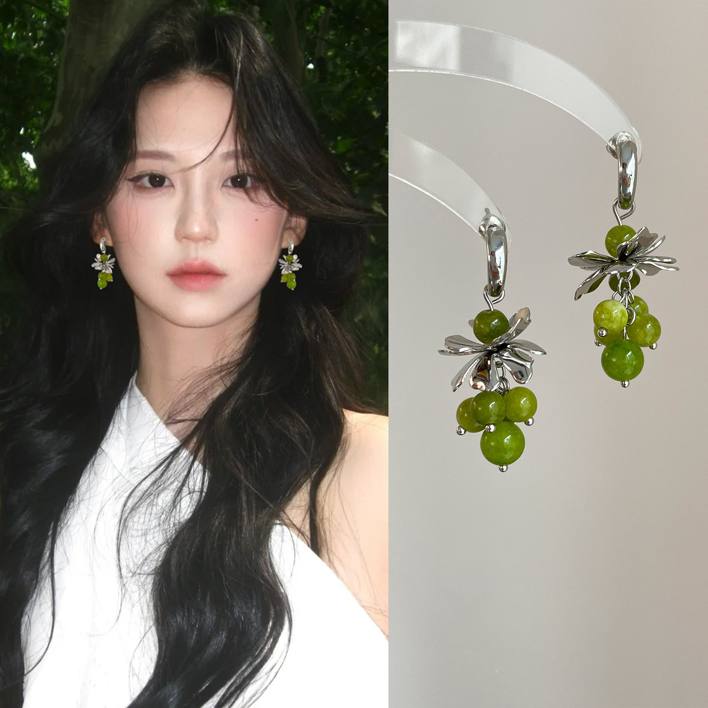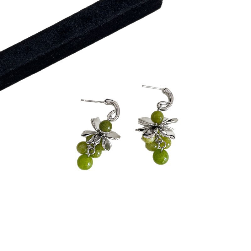银针花朵绿色玻璃葡萄串流苏耳饰轻奢高级感耳钉女耳饰设计感小众