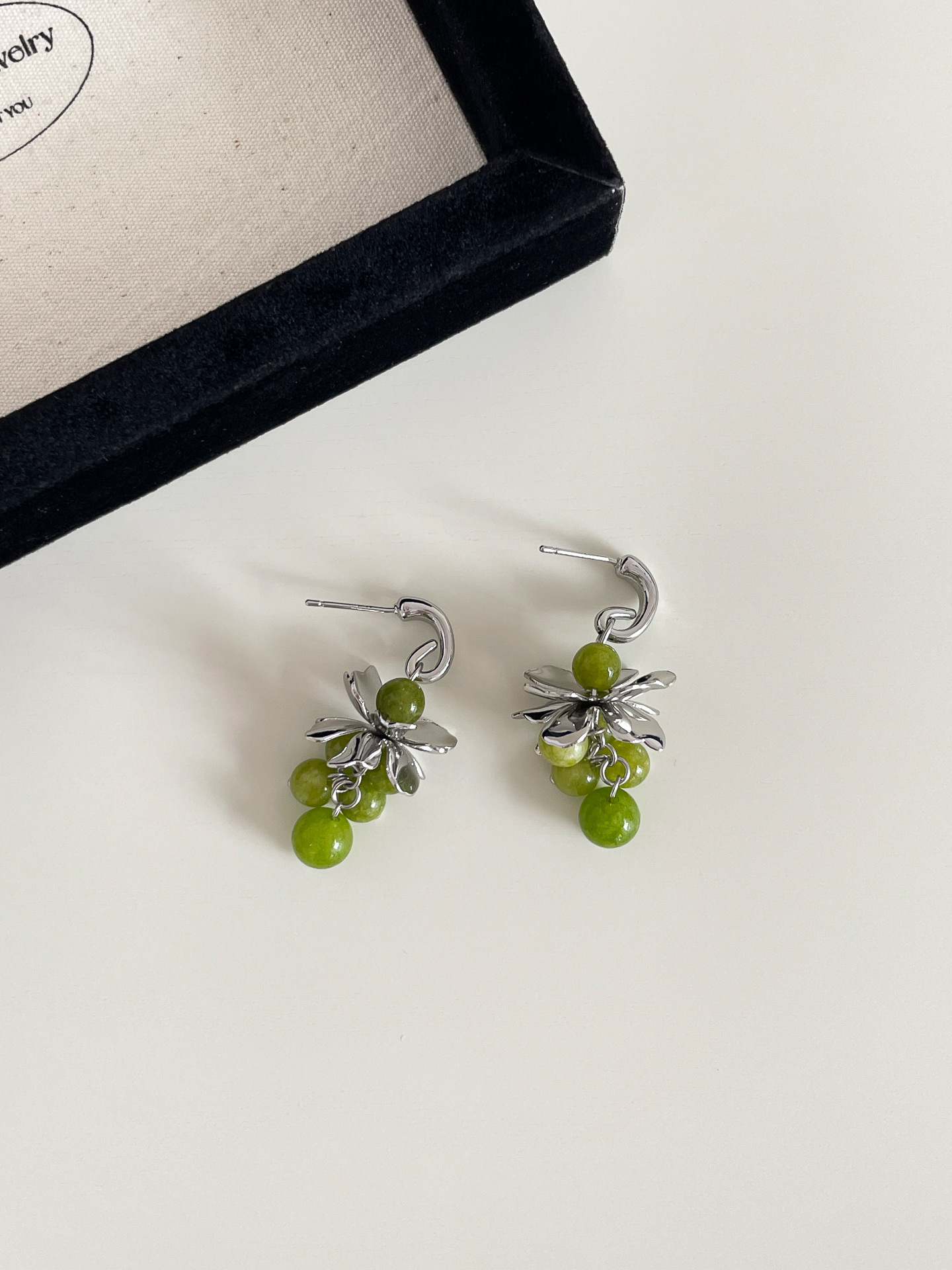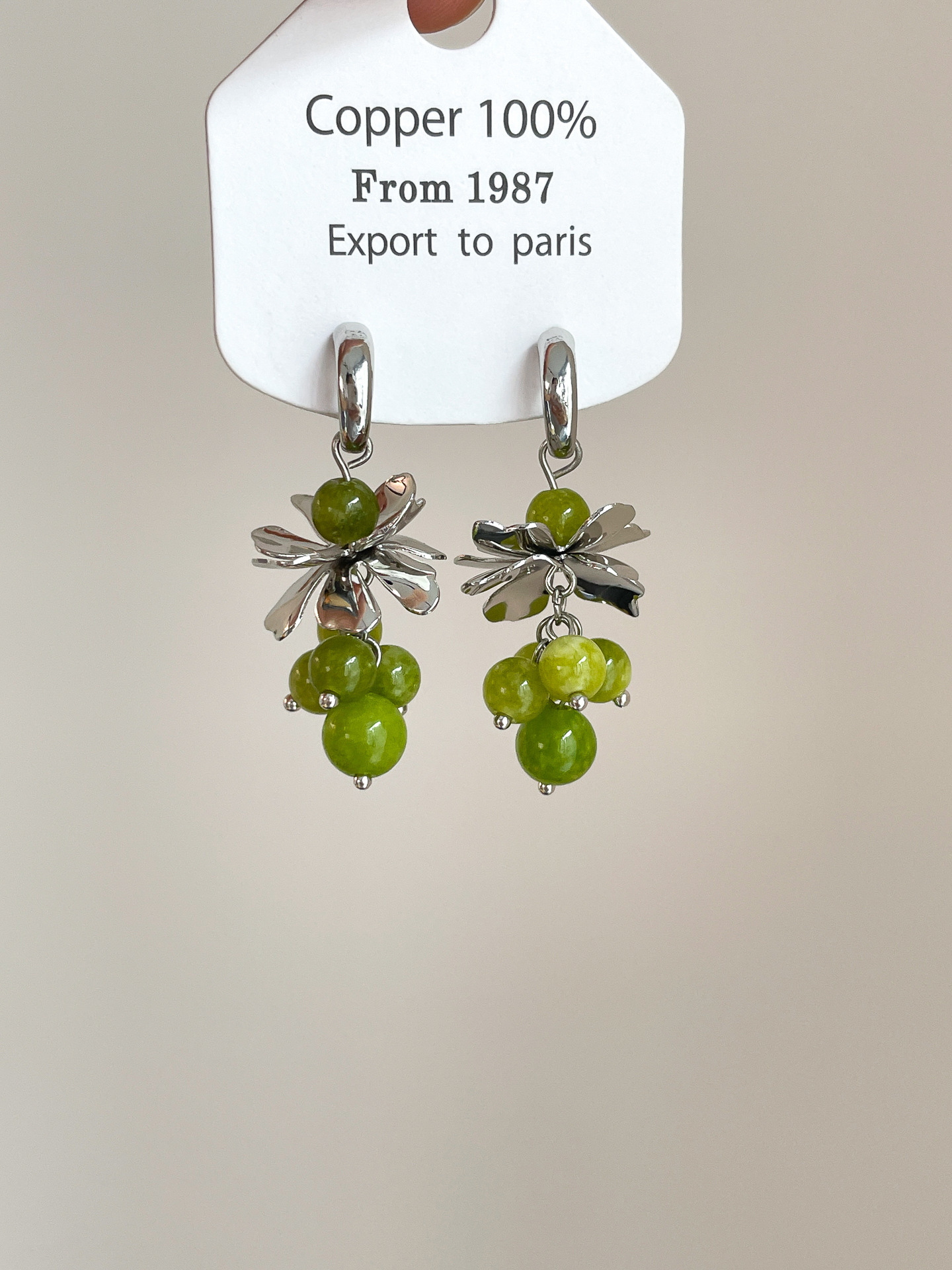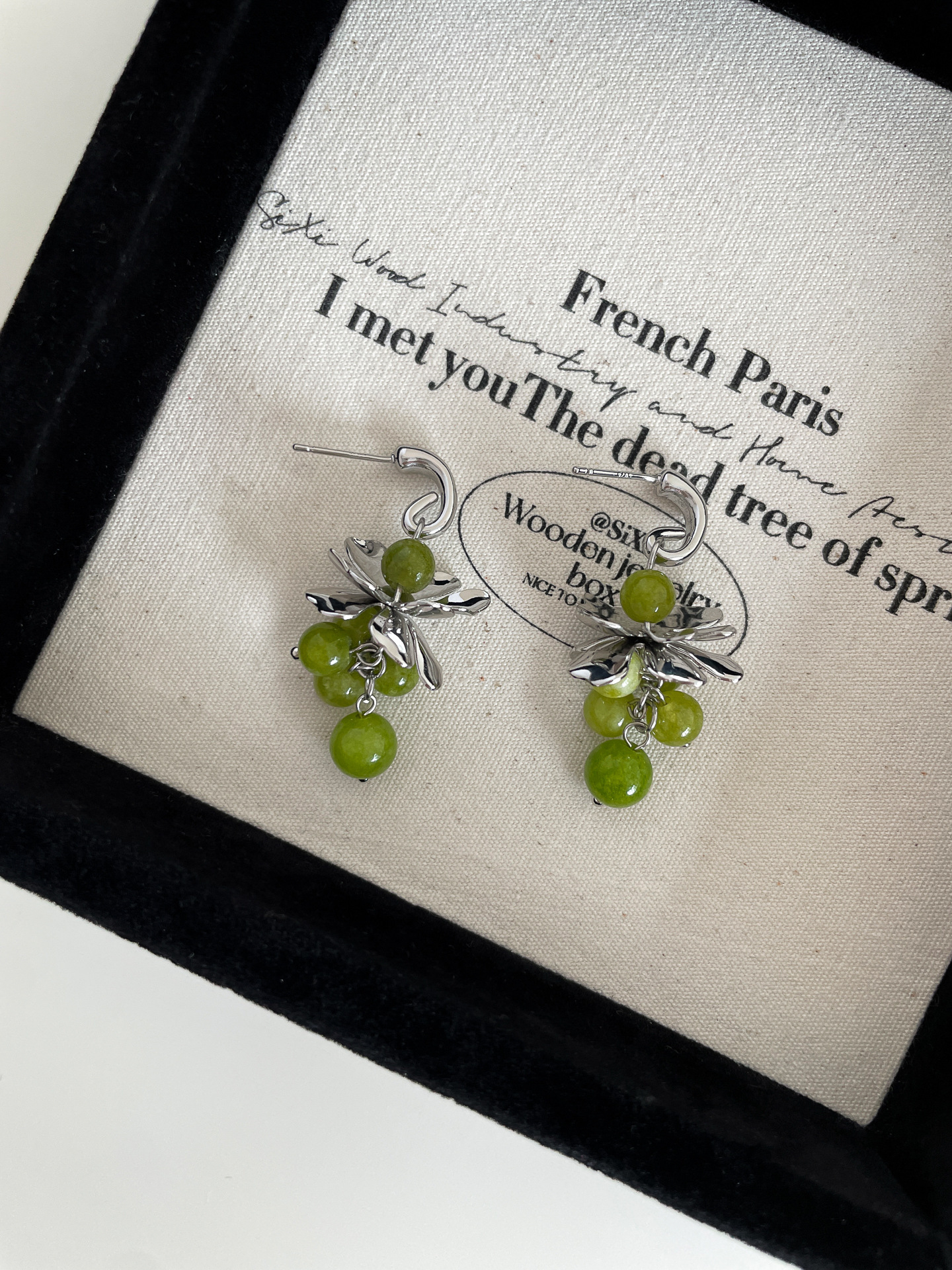 银针花朵绿色玻璃葡萄串流苏耳饰轻奢高级感耳钉女耳饰设计感小众