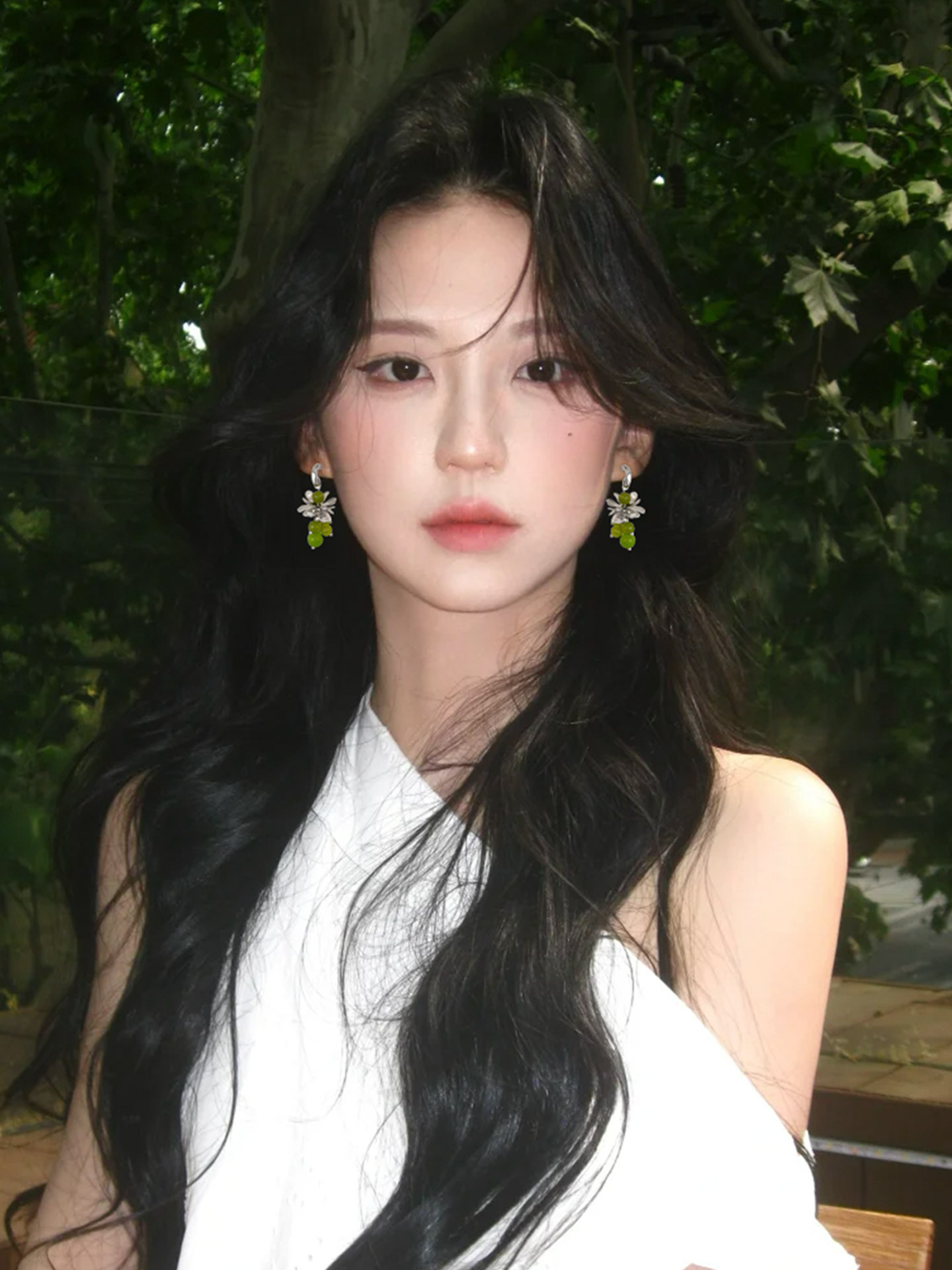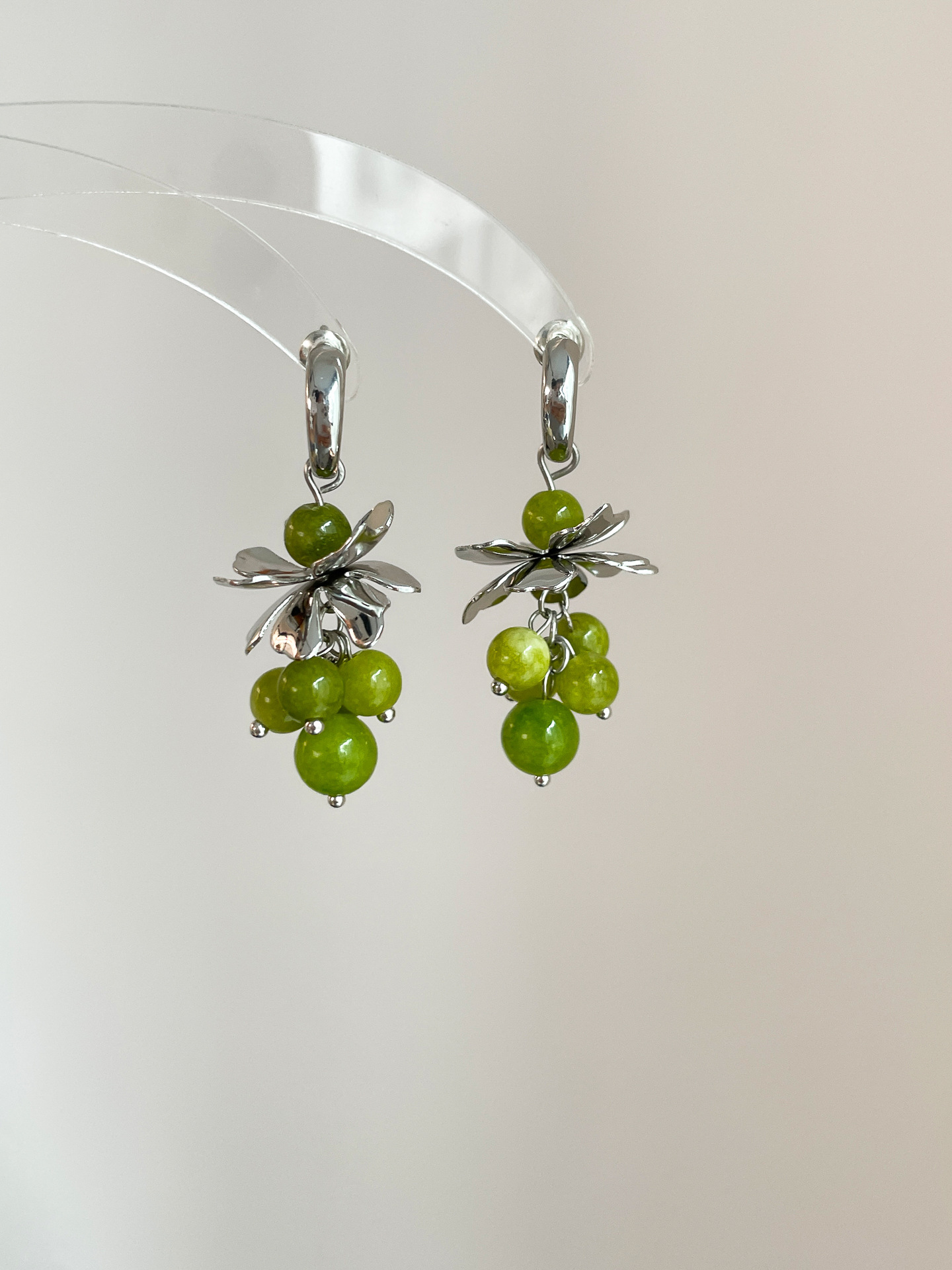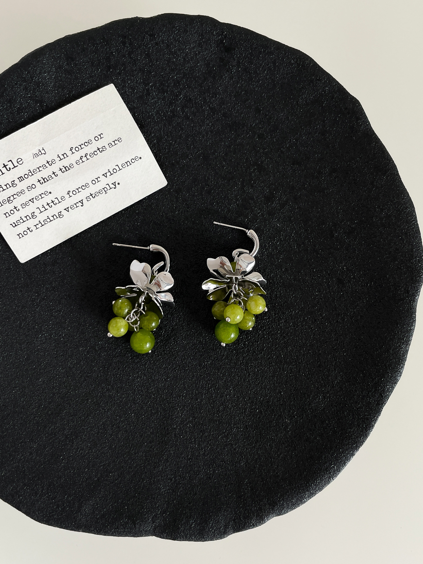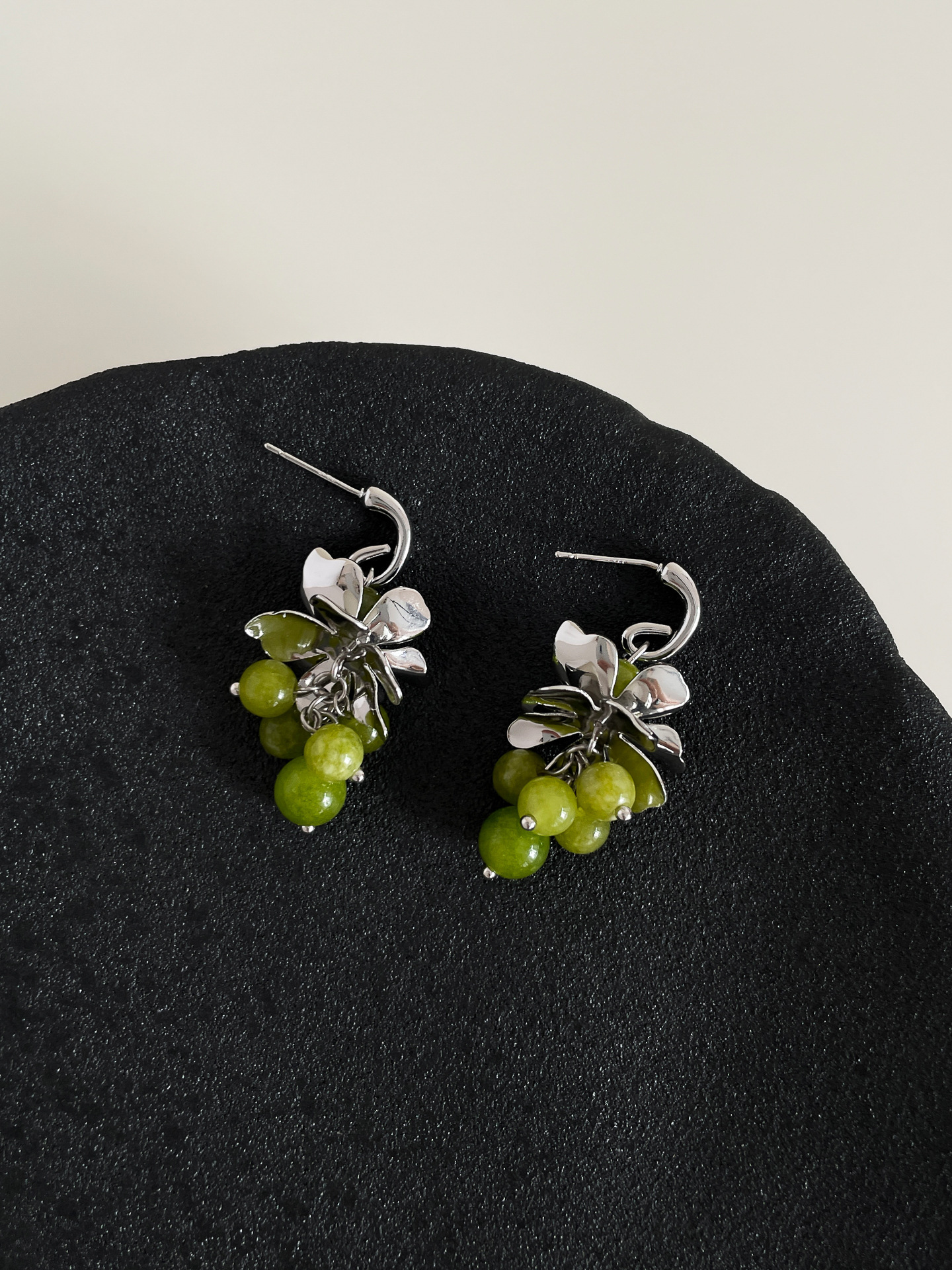 银针花朵绿色玻璃葡萄串流苏耳饰轻奢高级感耳钉女耳饰设计感小众
