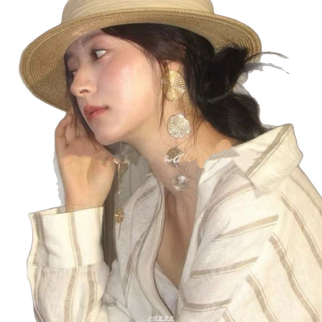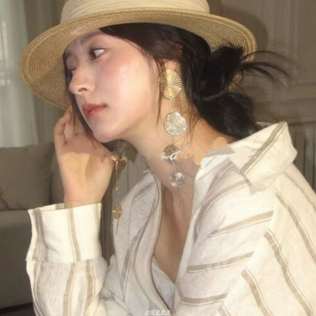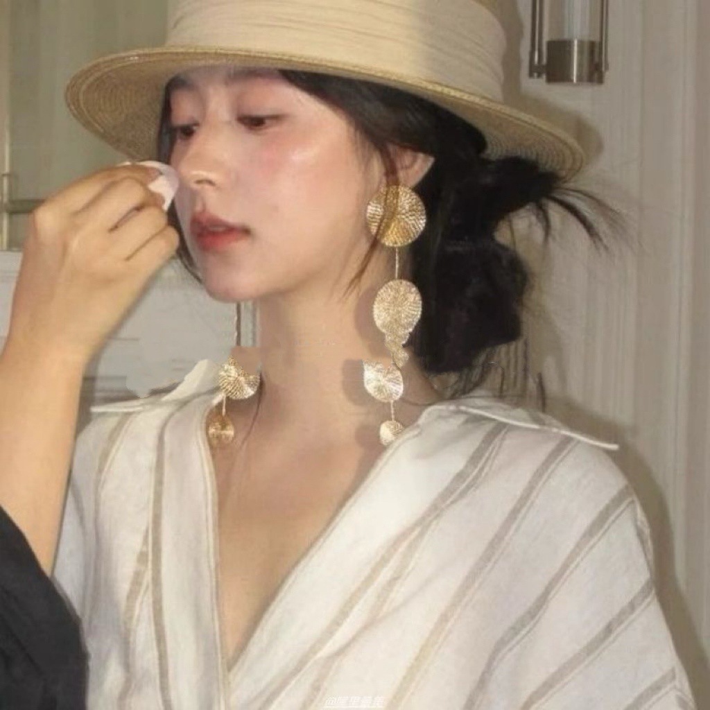 法式复古圆形金属纹路流苏耳环轻奢高级感耳钉时尚耳饰小众设计感