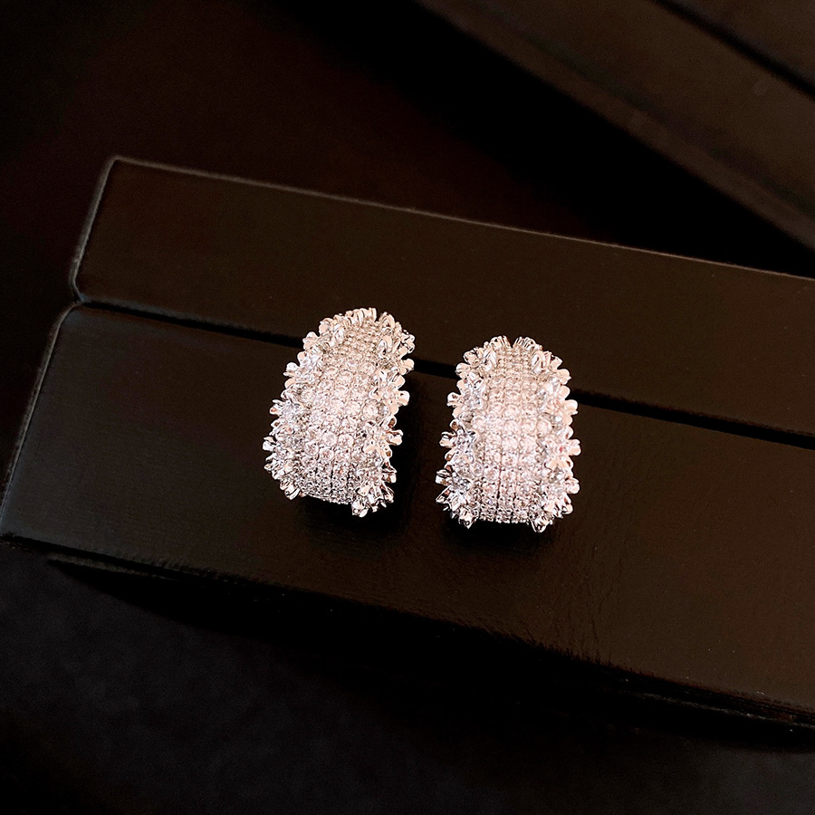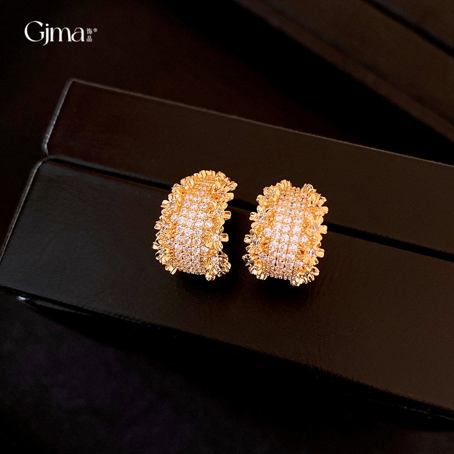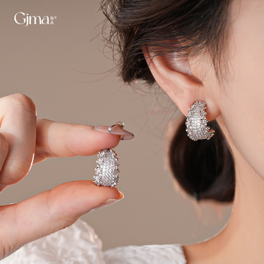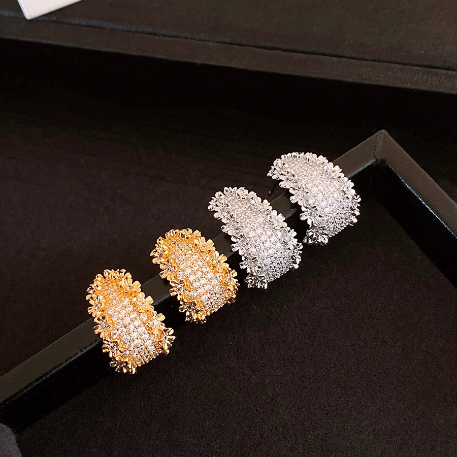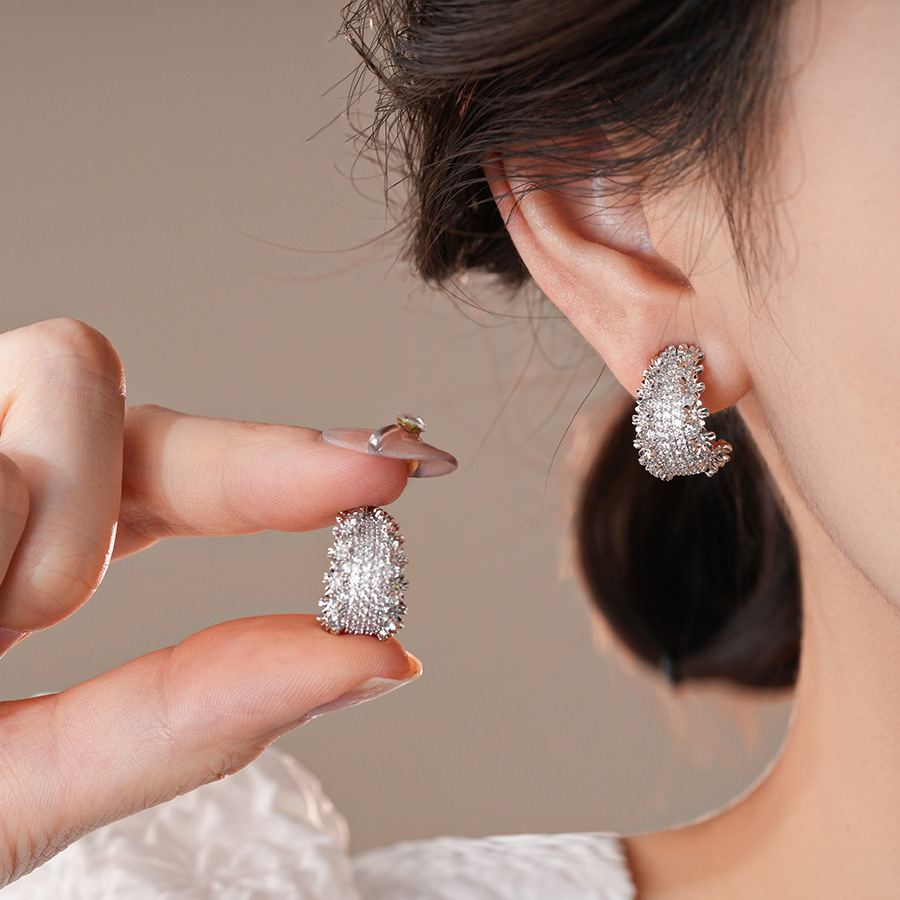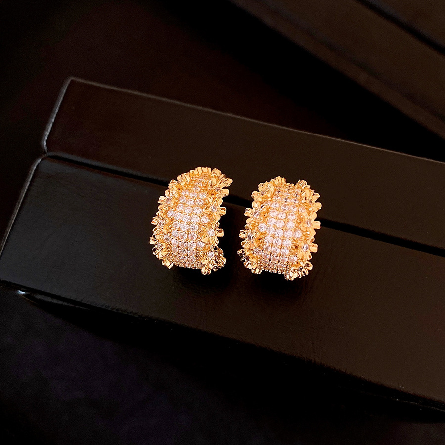 18k真金电镀锆石花边C形耳环轻奢高级感耳钉个性设计感小众耳饰女