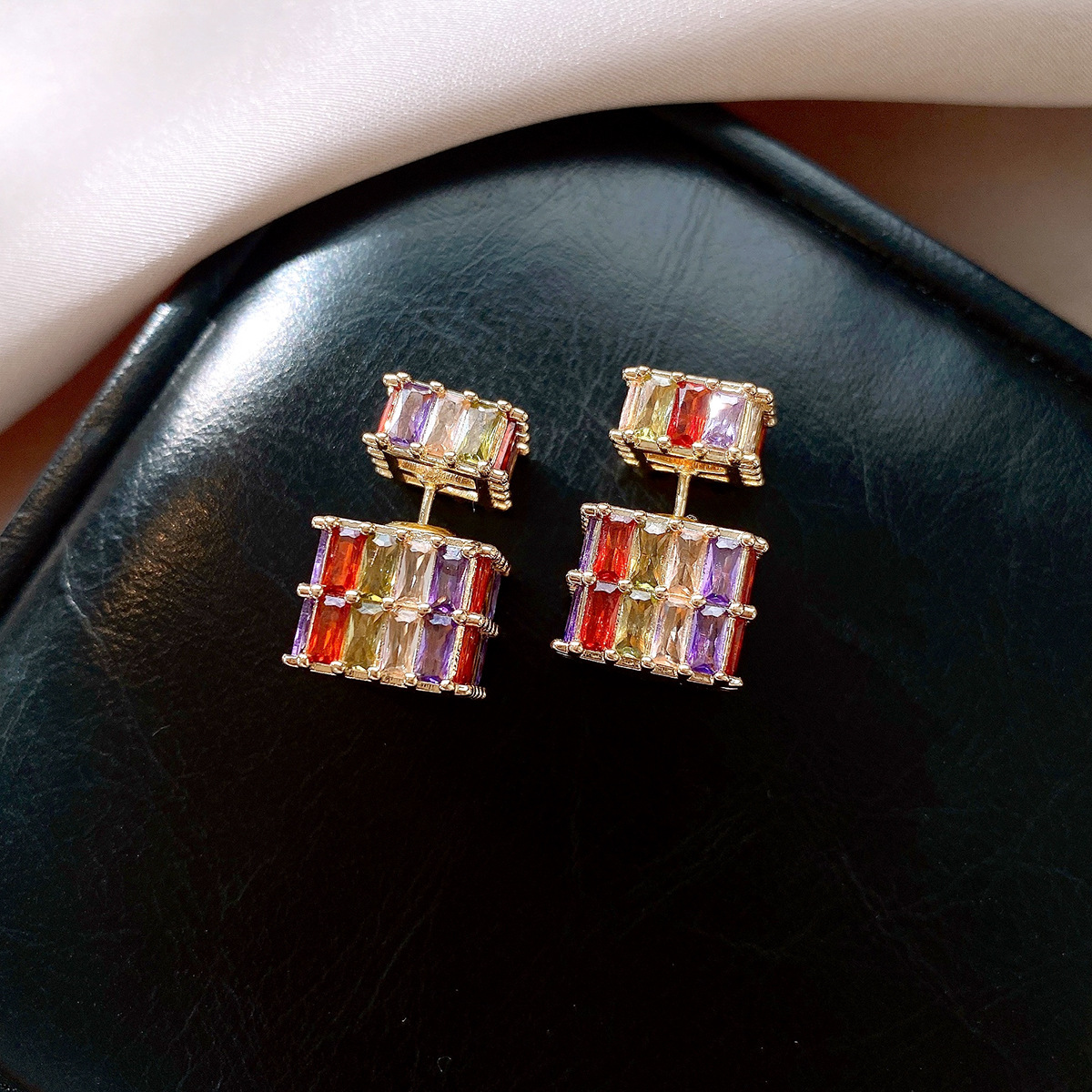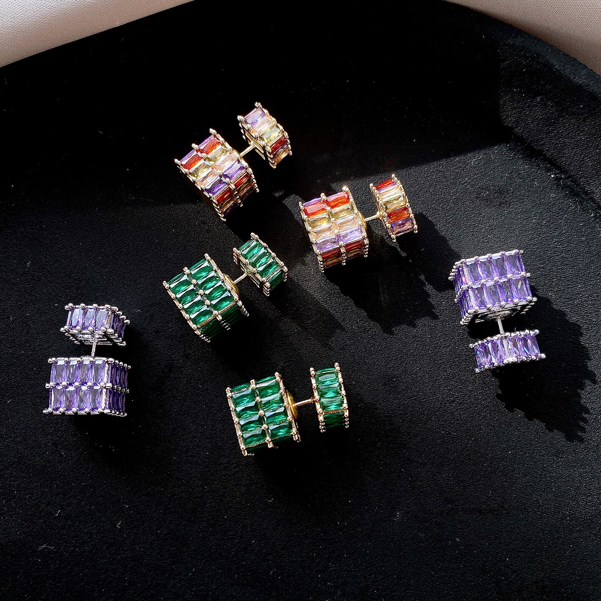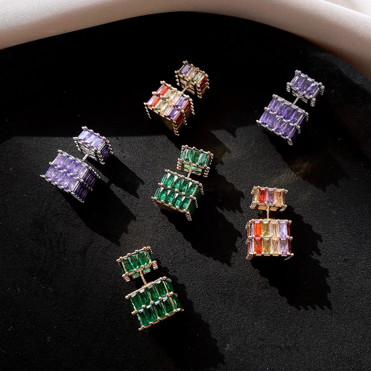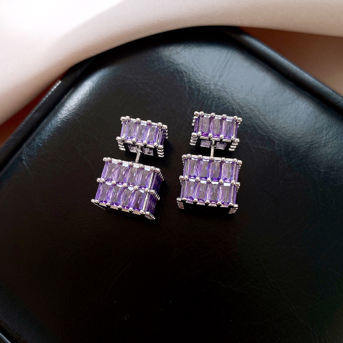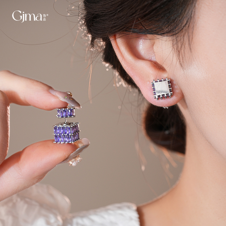 银针法式复古立体锆石耳环轻奢高级感耳钉时尚个性耳饰设计感小众