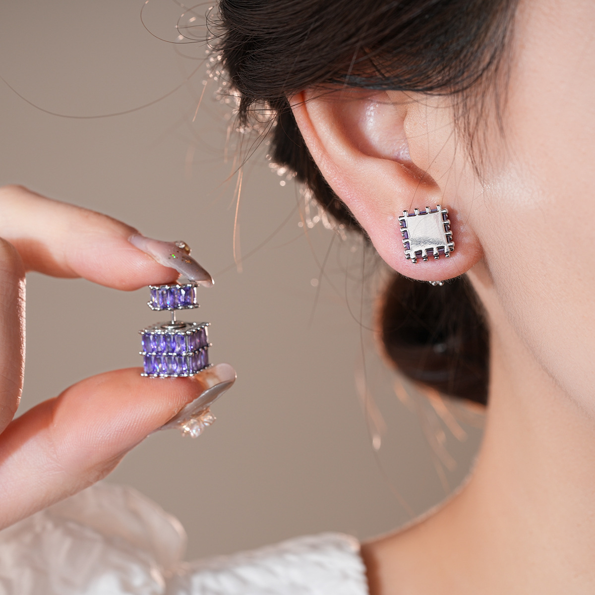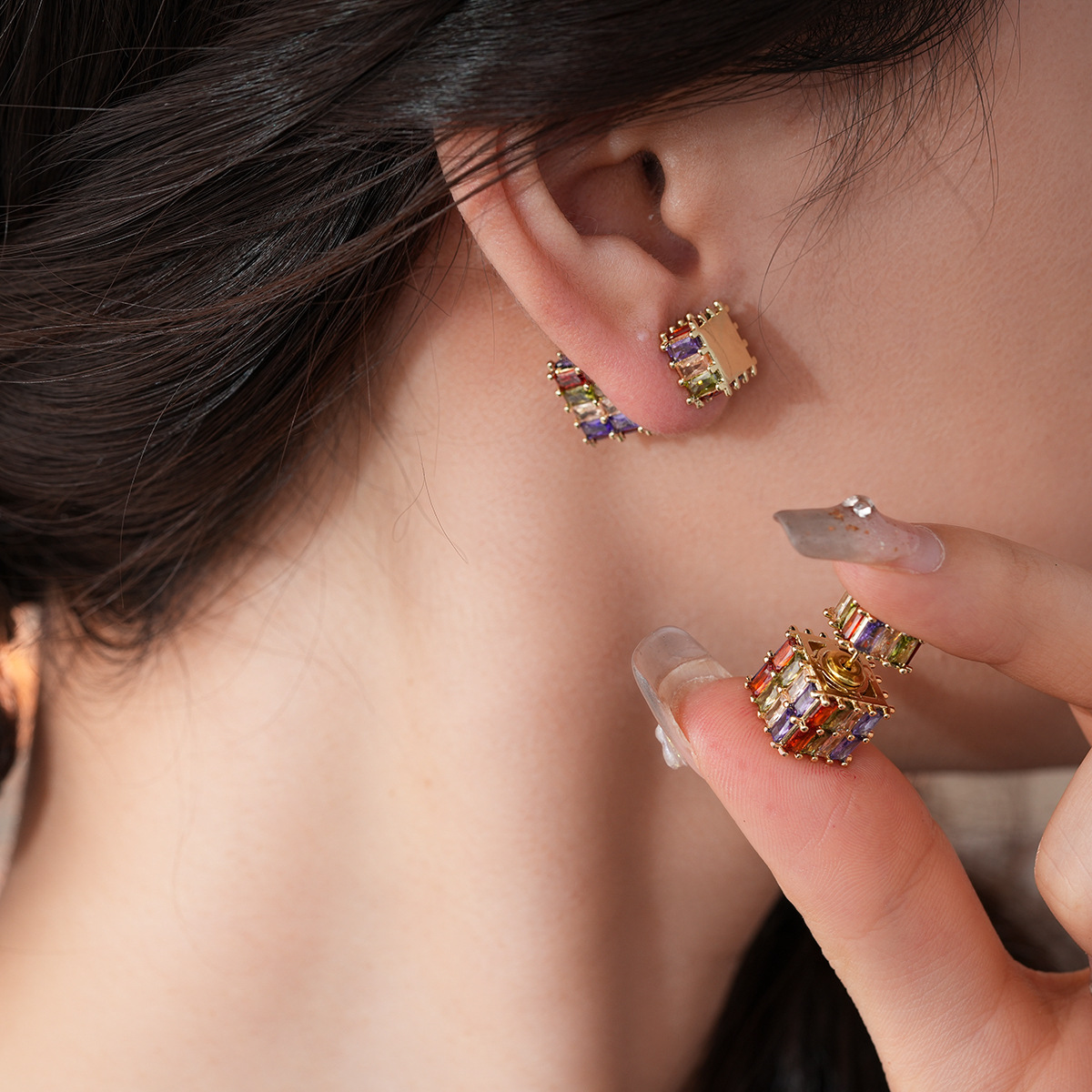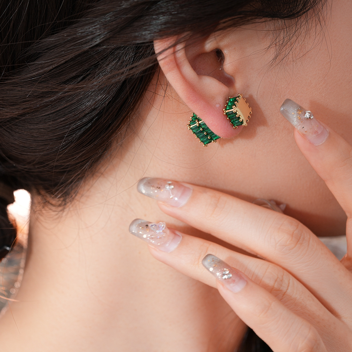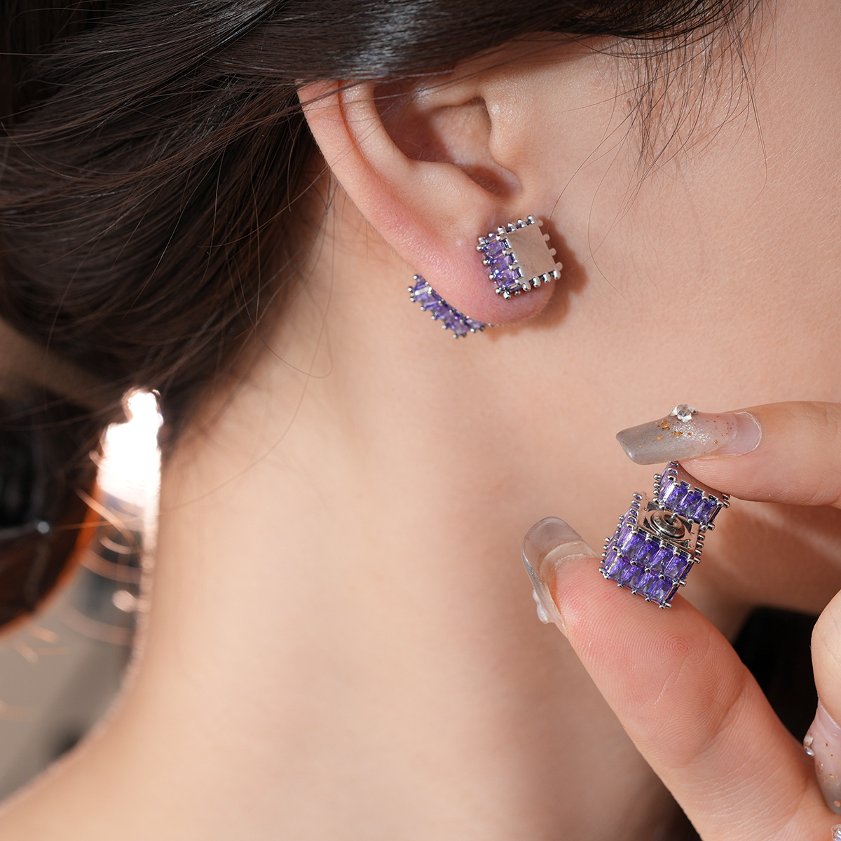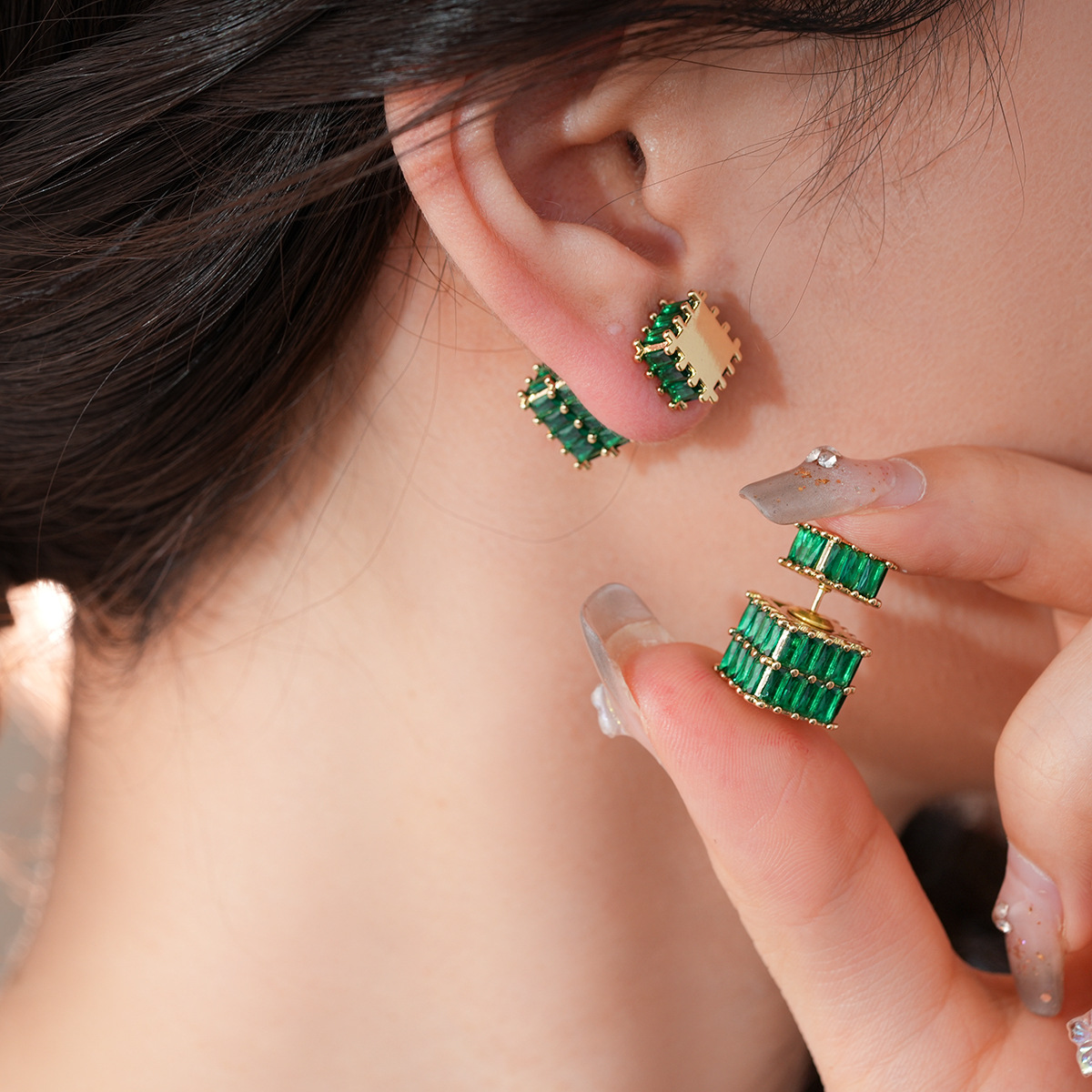 银针法式复古立体锆石耳环轻奢高级感耳钉时尚个性耳饰设计感小众