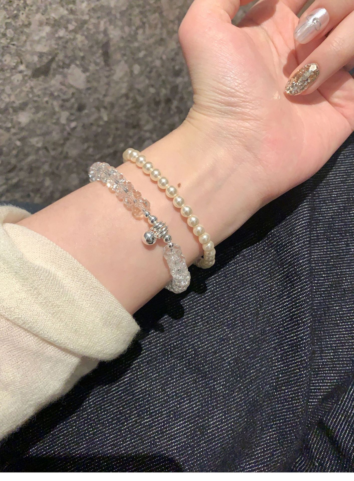 韩系清冷感水晶串珠手链轻奢高级感手串时尚气质设计感小众手饰女
