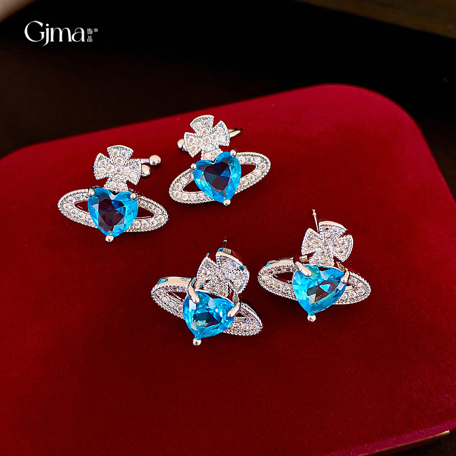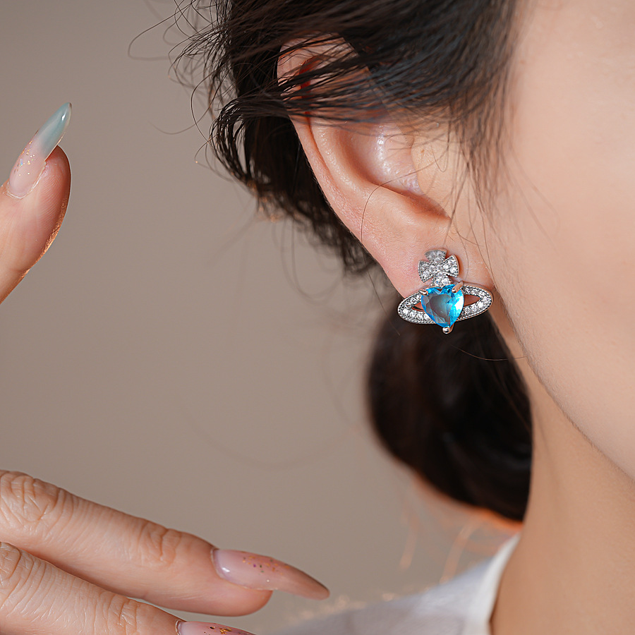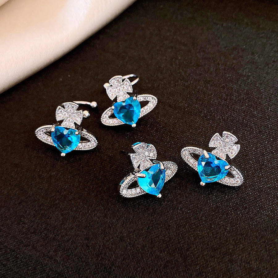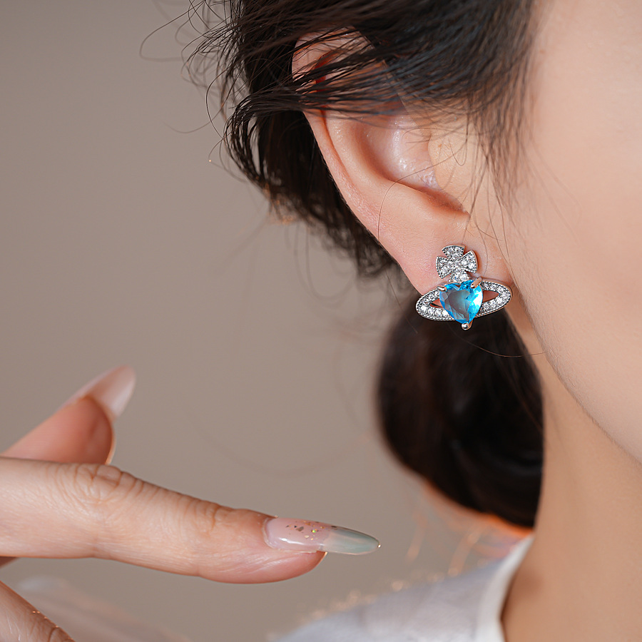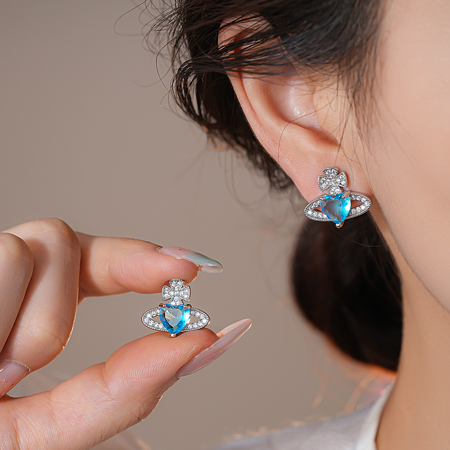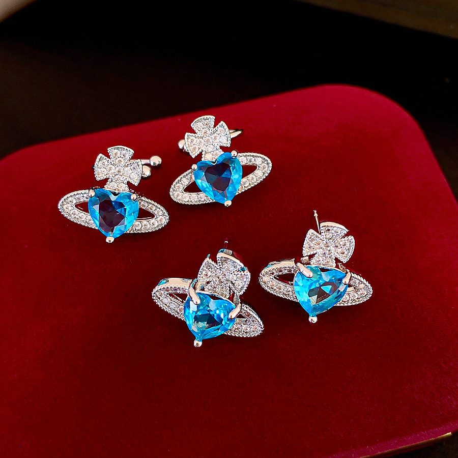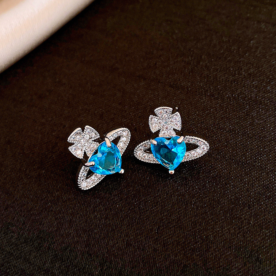 银针欧美跨境锆石十字架爱心耳环轻奢高级感耳钉女耳饰设计感小众