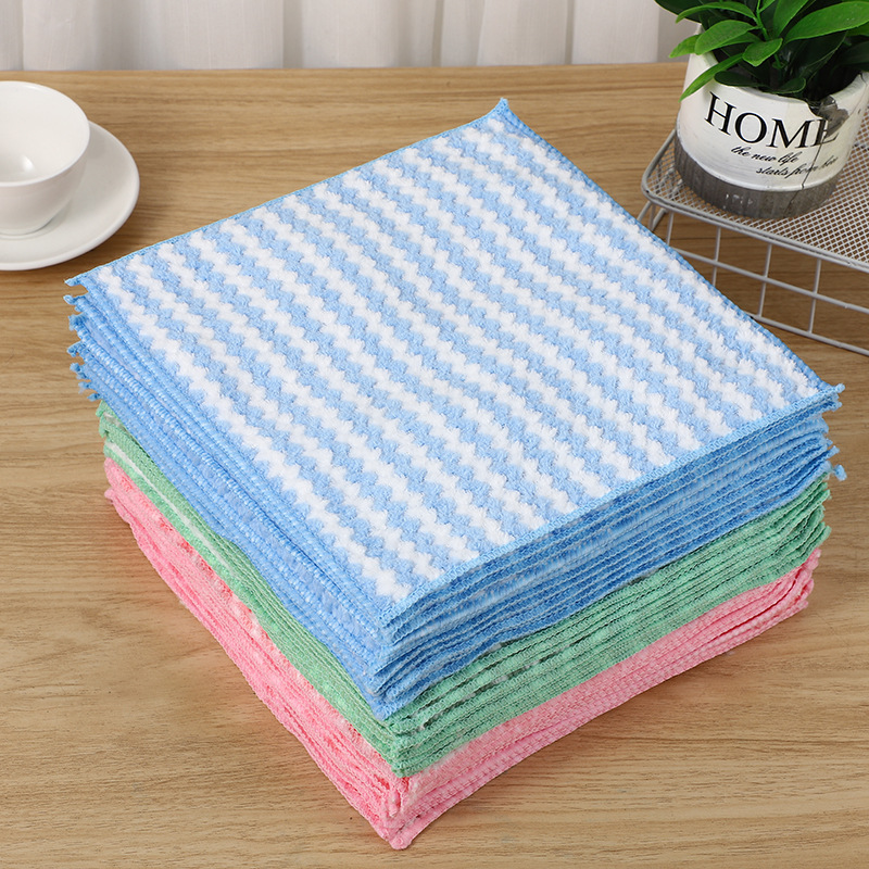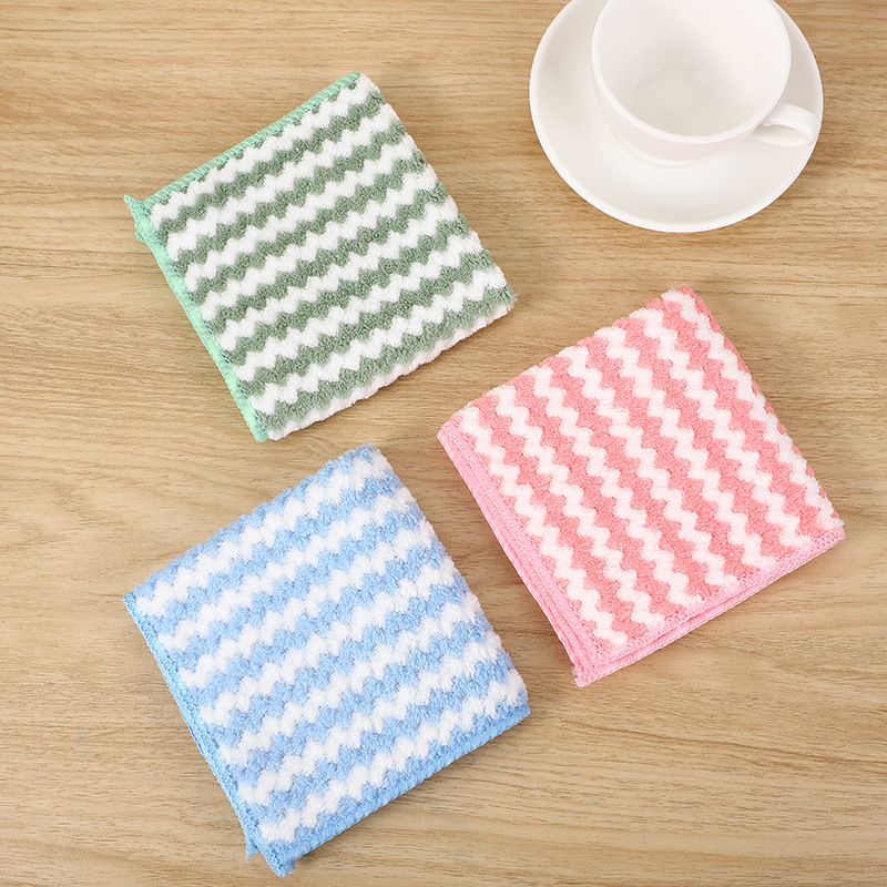 抹布阳离子珊瑚绒厨房洗碗布不沾油加厚水波纹洗碗巾擦桌子百洁布