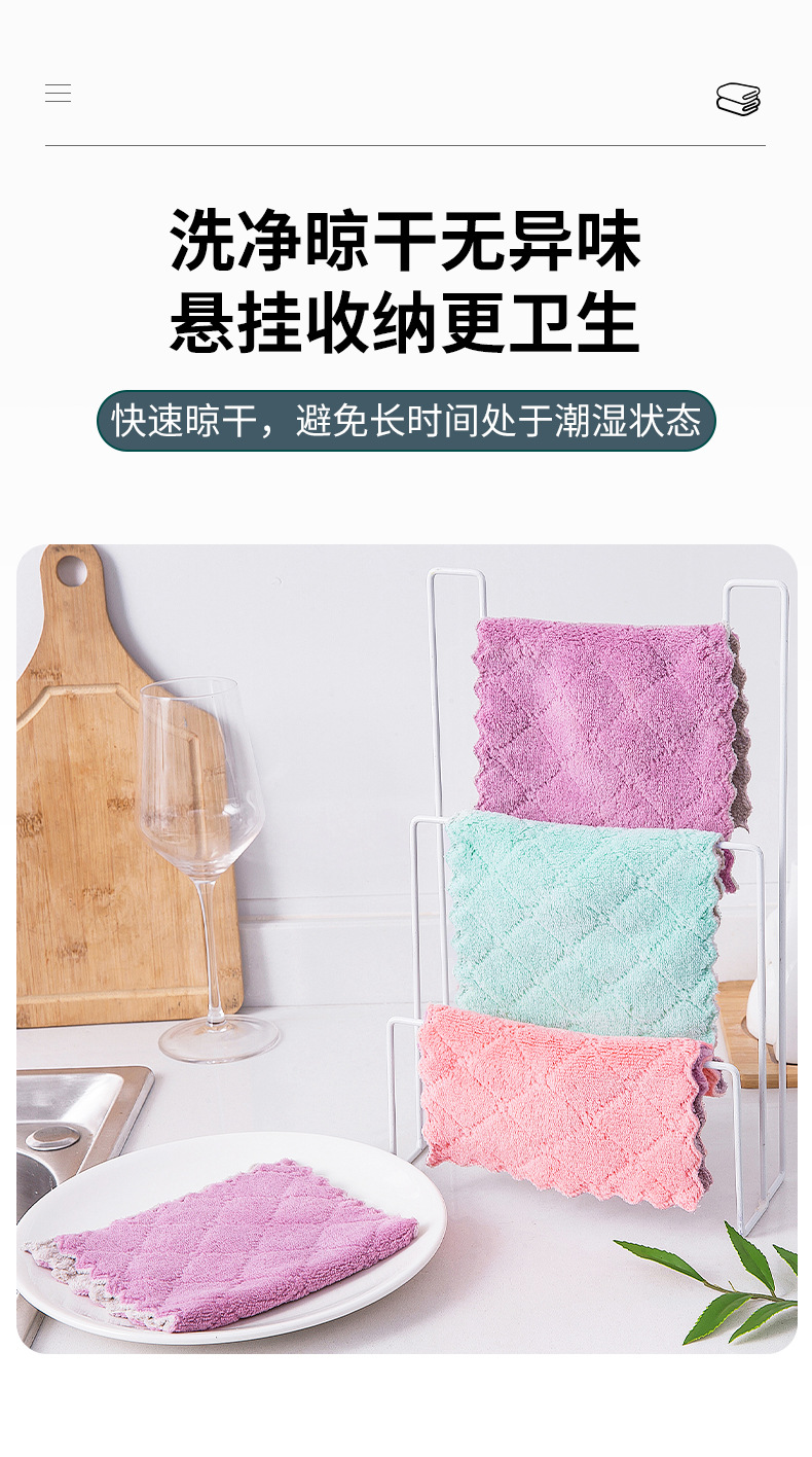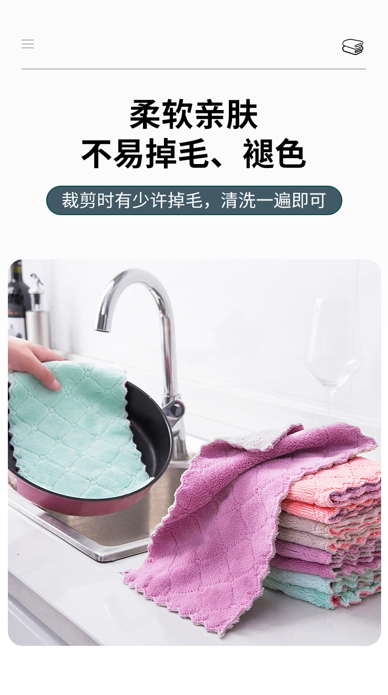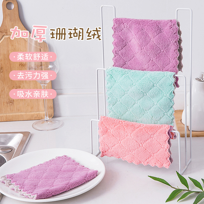 双层加厚珊瑚绒清洁布洗碗巾吸水擦手巾擦碗擦桌清洁布洗碗神器