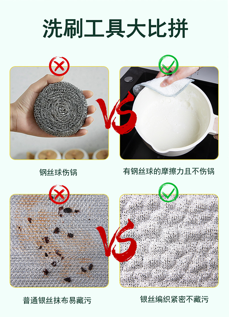 泡泡洗碗巾银丝布棉纱洗碗布双层加厚不沾油洗碗布百洁布吸水抹布