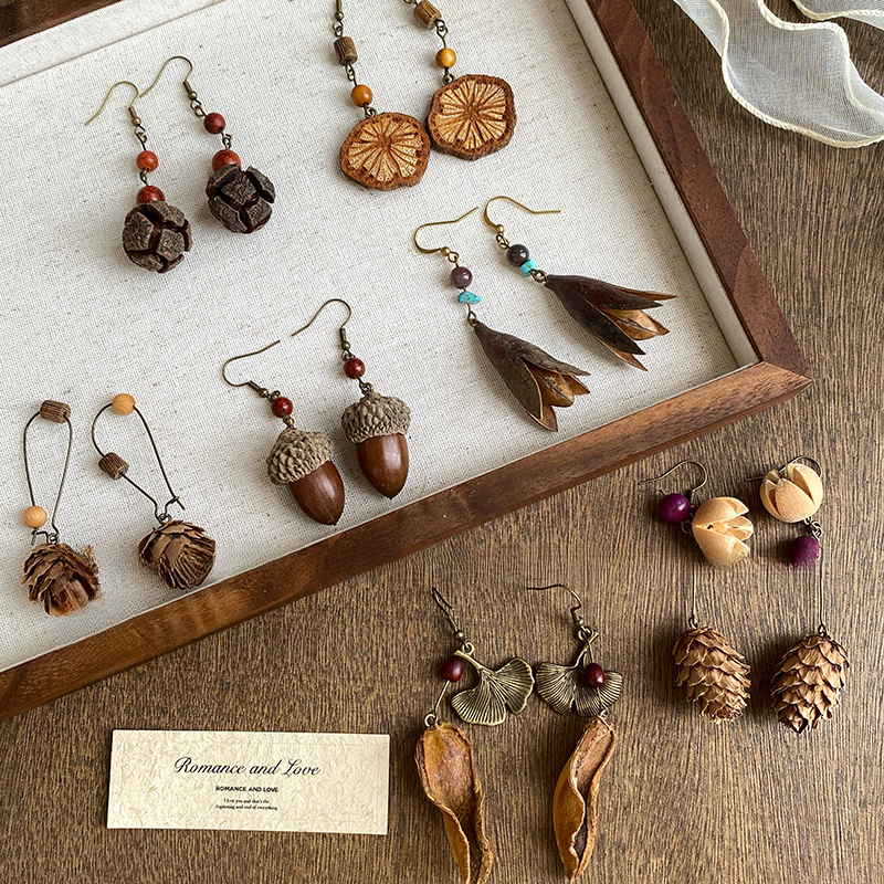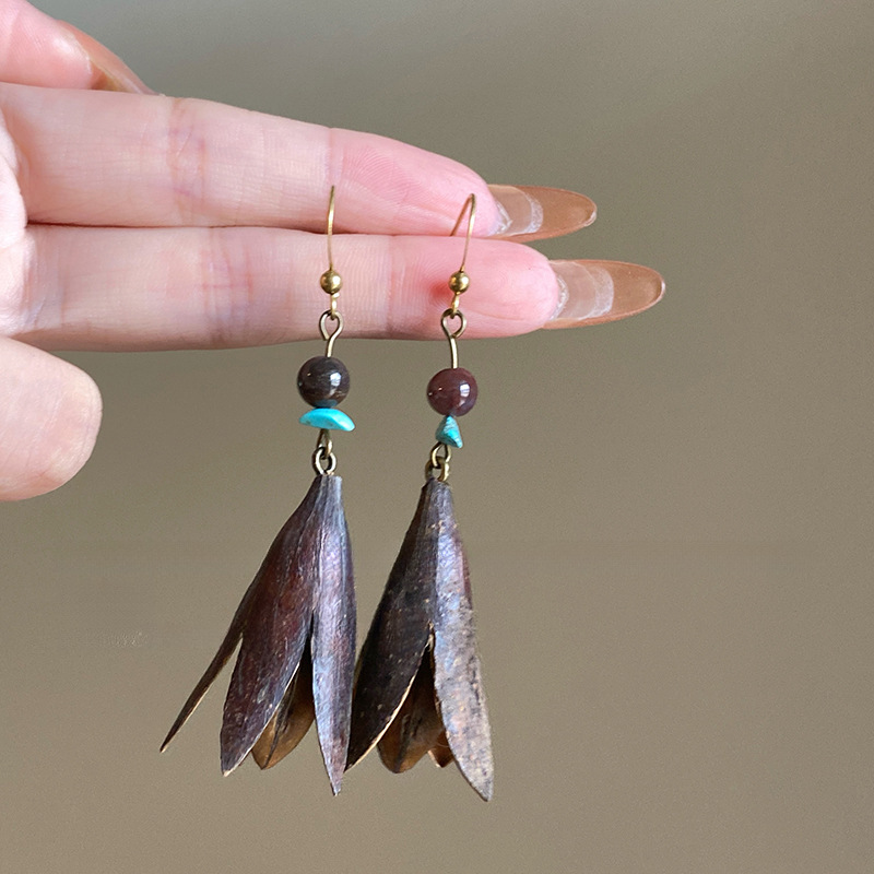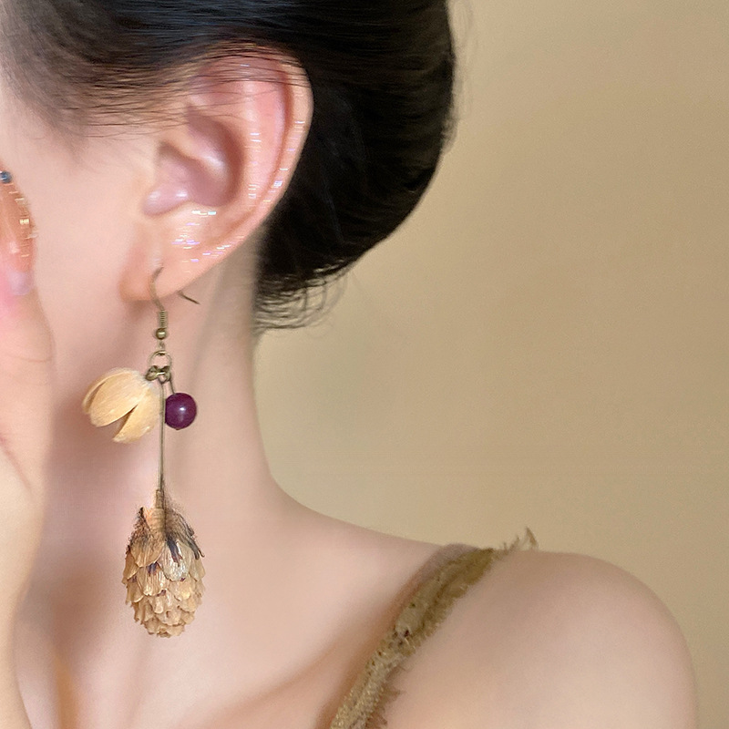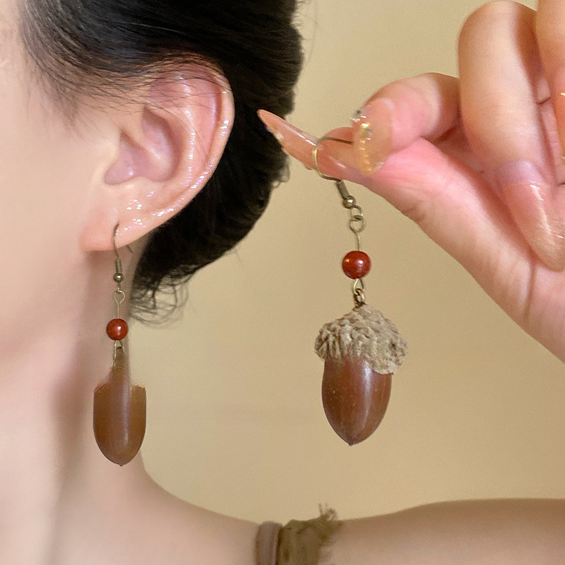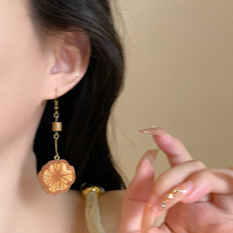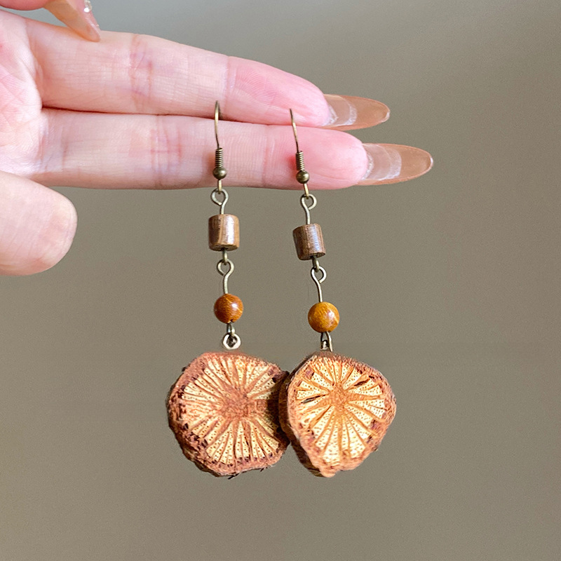 法式复古木珠松子吊坠耳环轻奢高级感耳钩时尚个性耳饰设计感小众