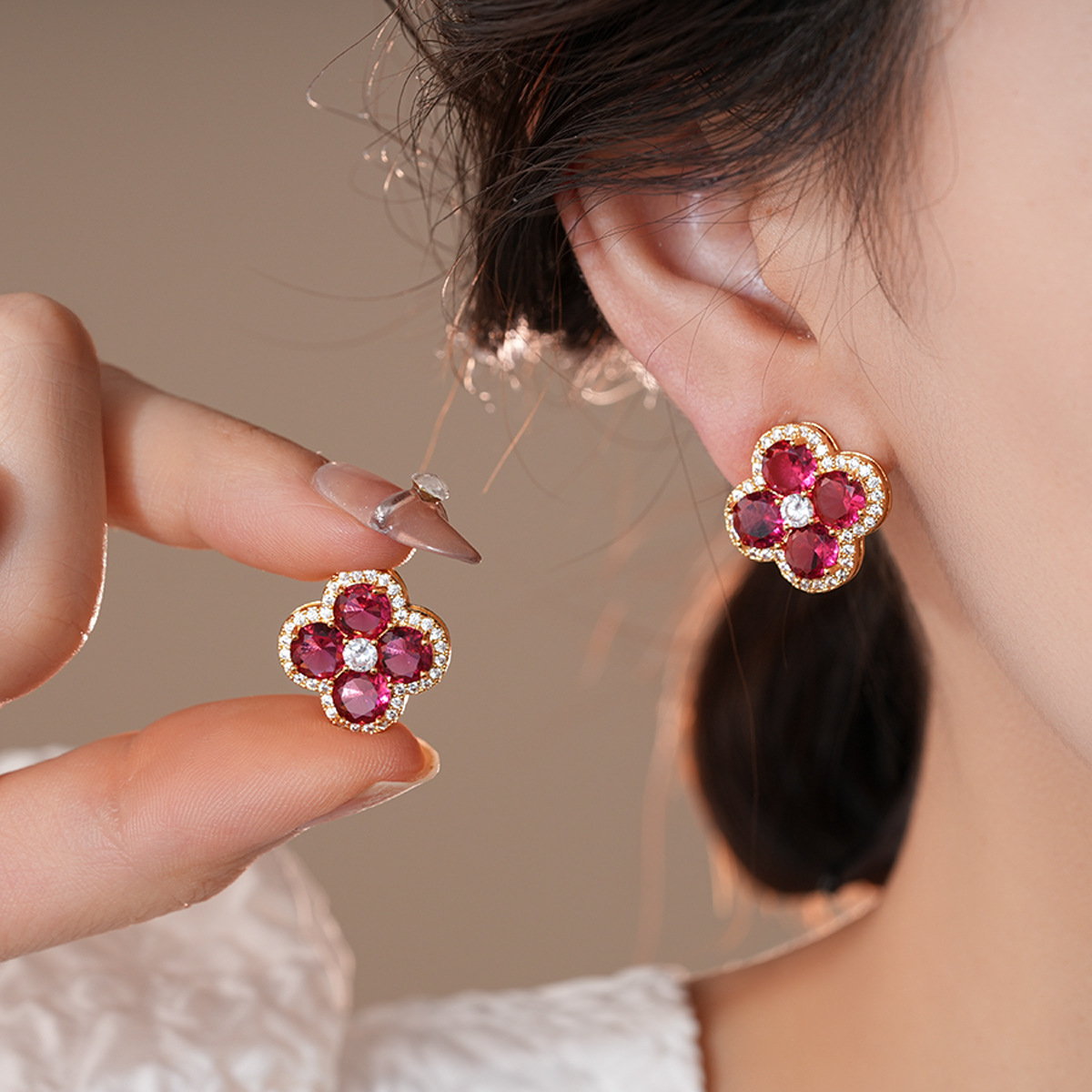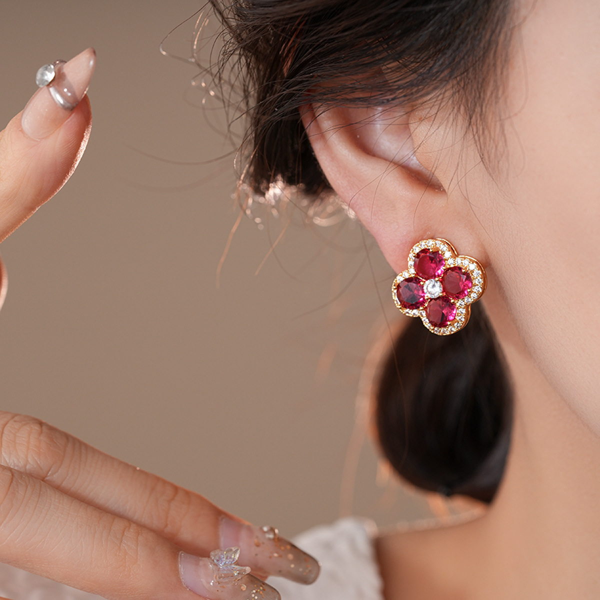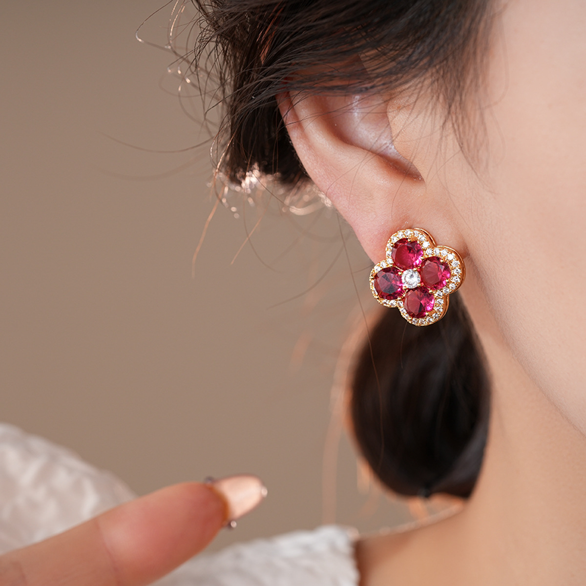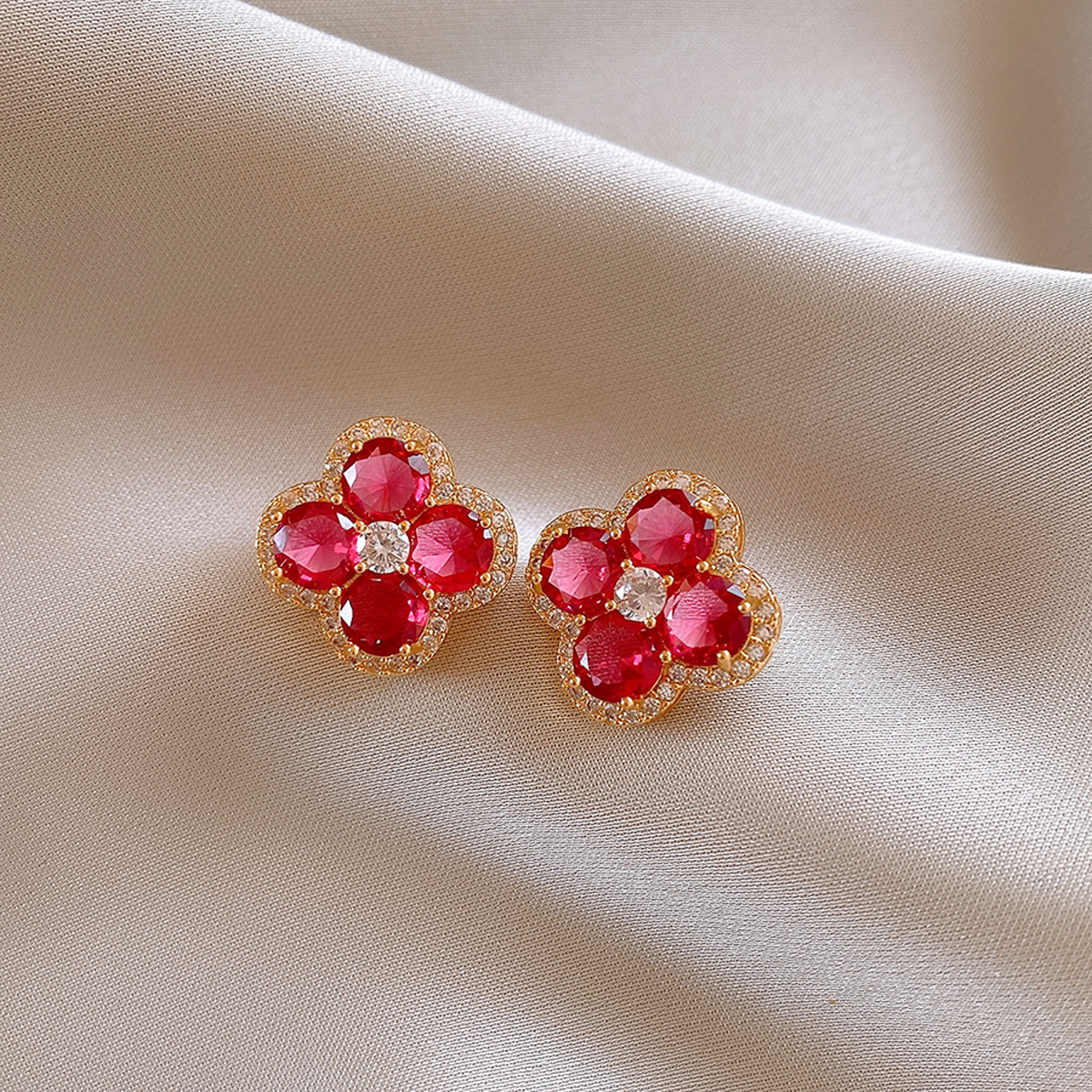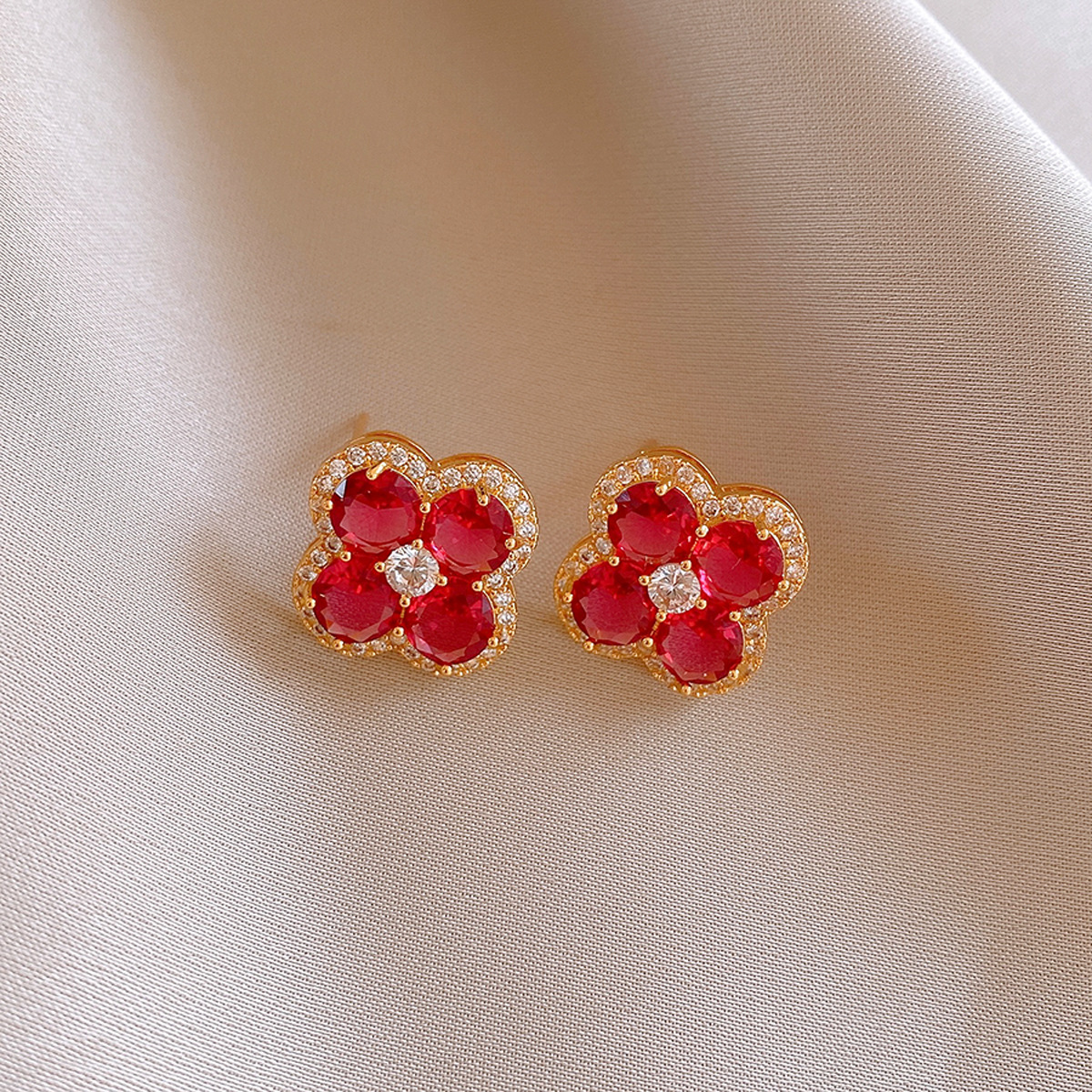银针韩系甜美紫色锆石花朵耳环轻奢高级感耳钉时尚耳饰设计感小众