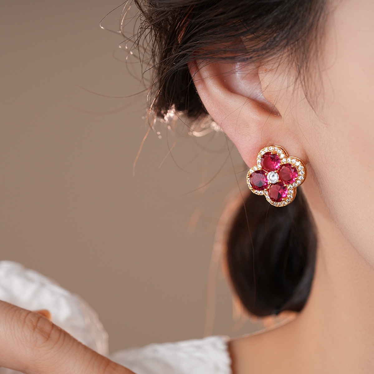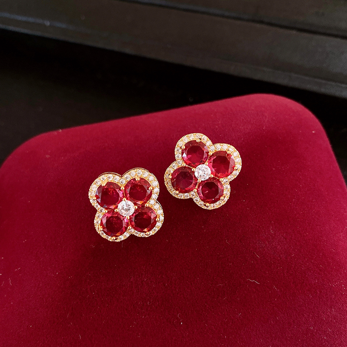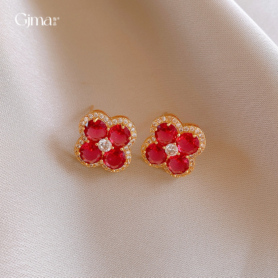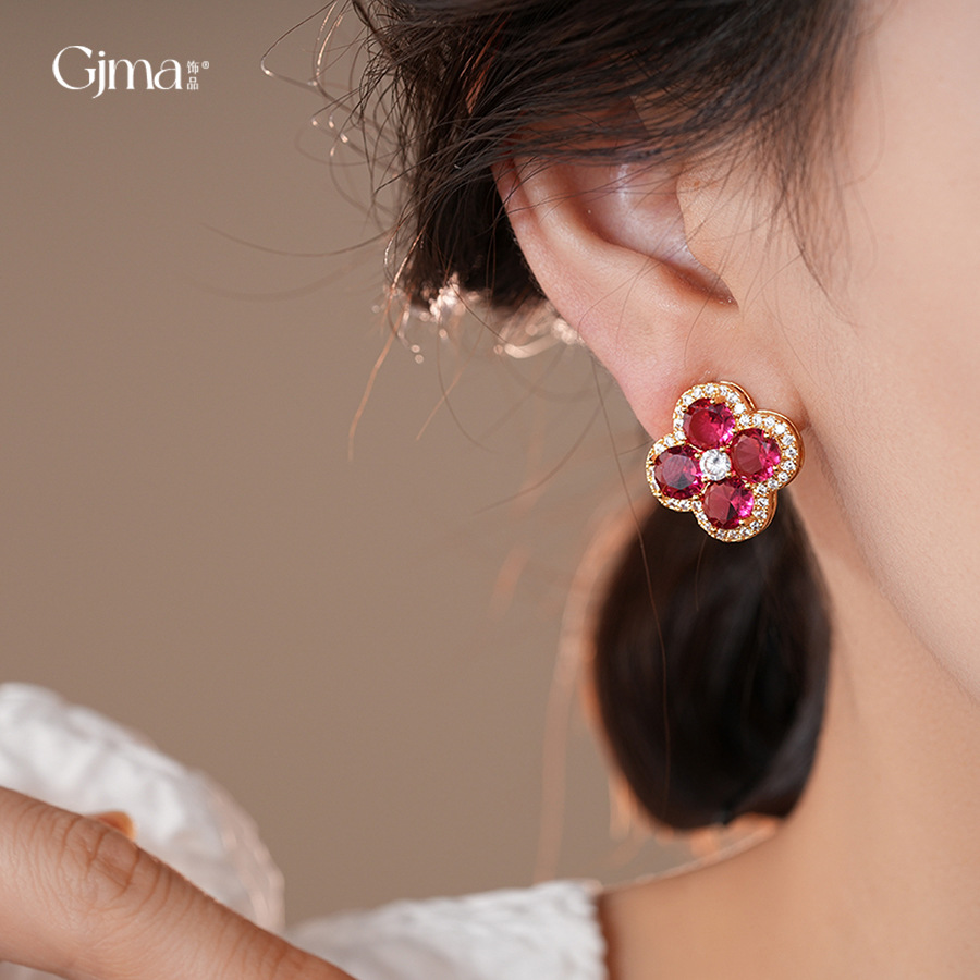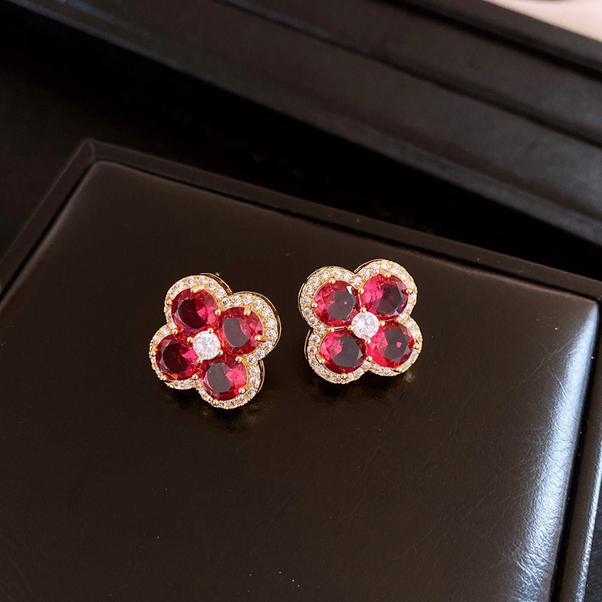 银针韩系甜美紫色锆石花朵耳环轻奢高级感耳钉时尚耳饰设计感小众