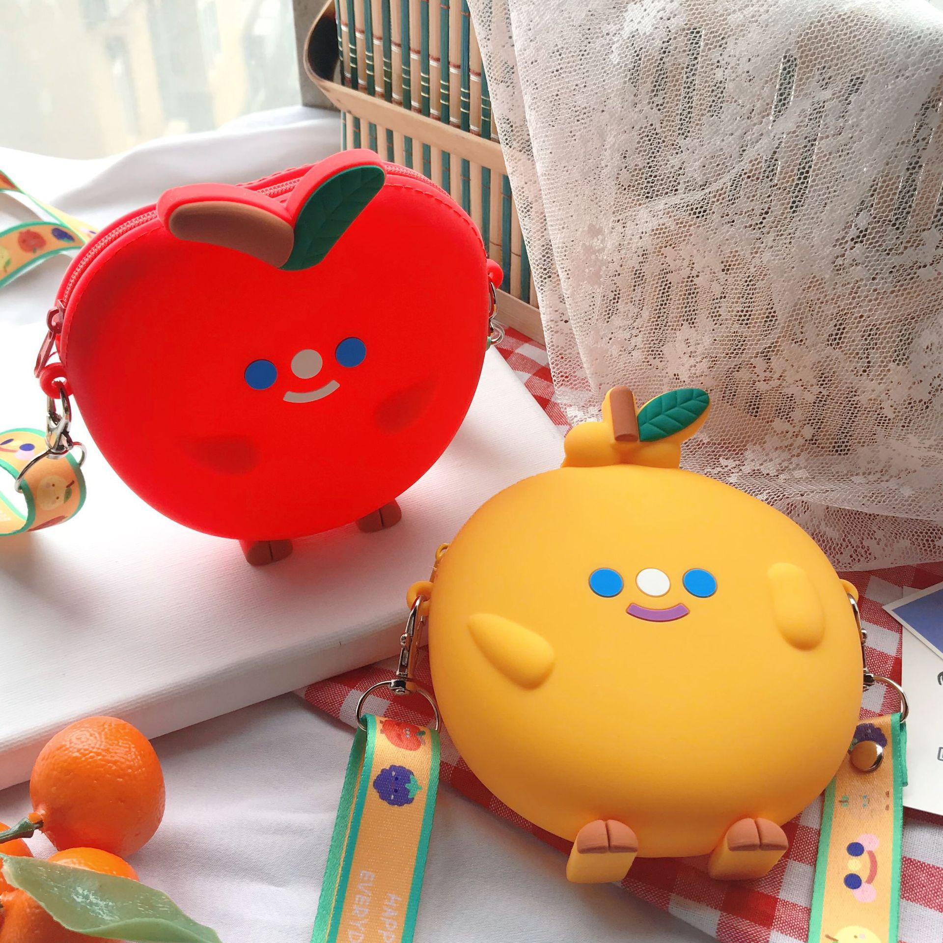 现货可爱斜跨中型包包牛油果零钱包硅胶菠萝草莓硅胶可调节斜跨包