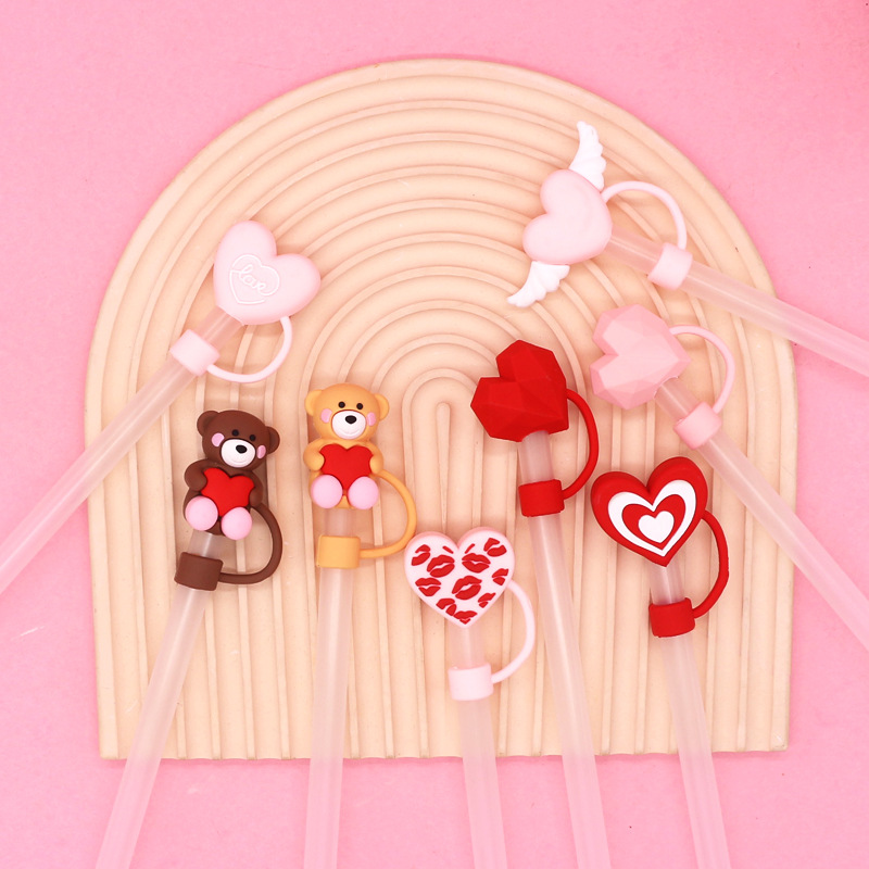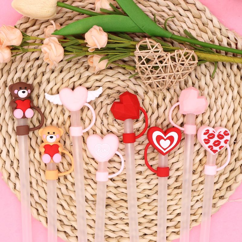 跨境吸管帽10mm情人节爱心吸管帽吸管塞子通用个性吸管防尘帽批发