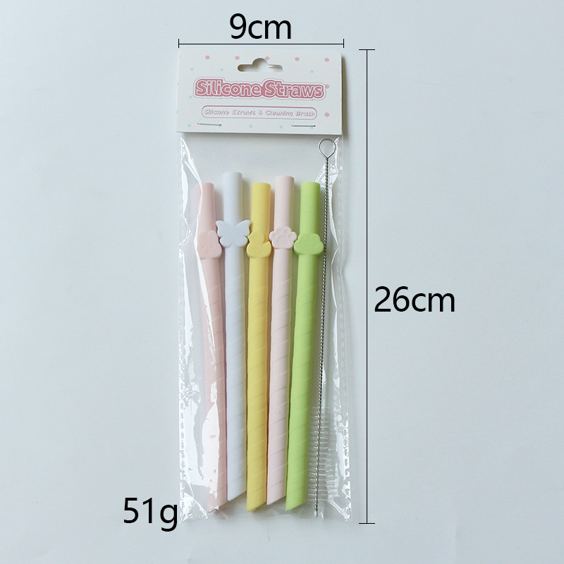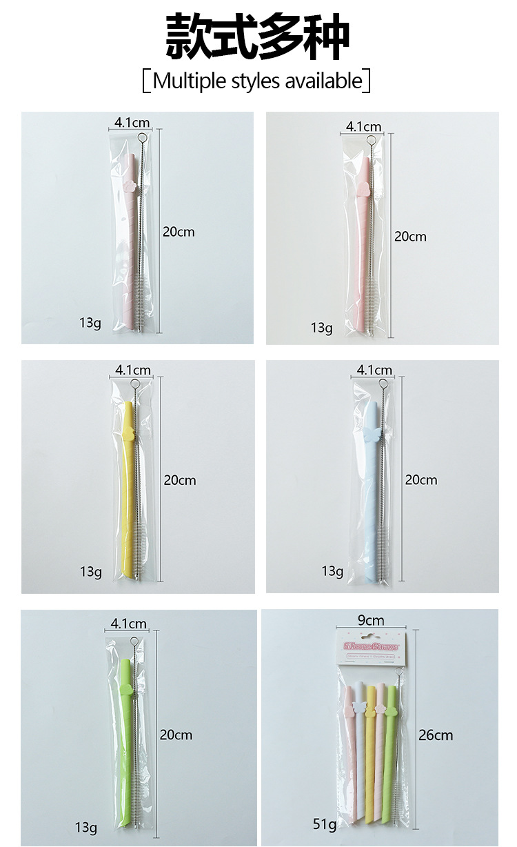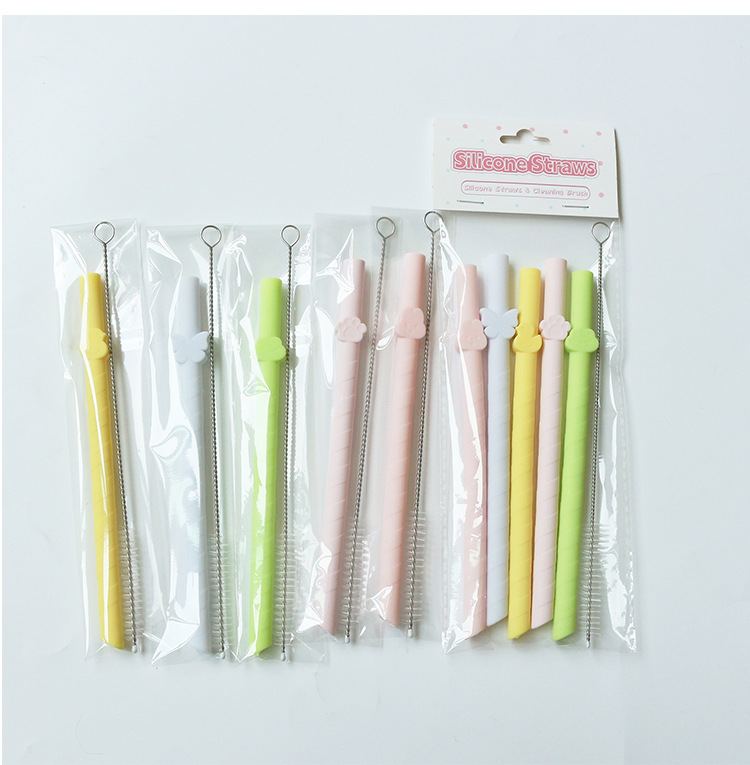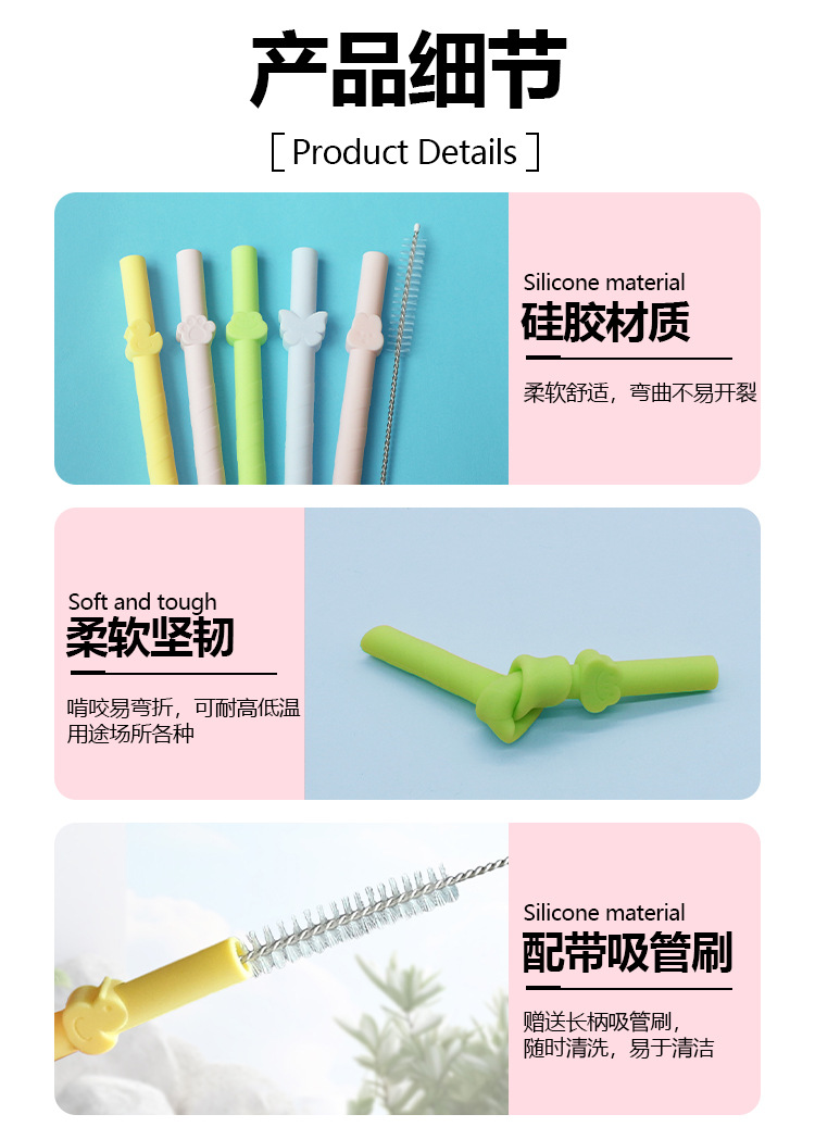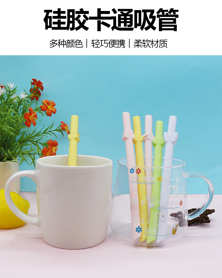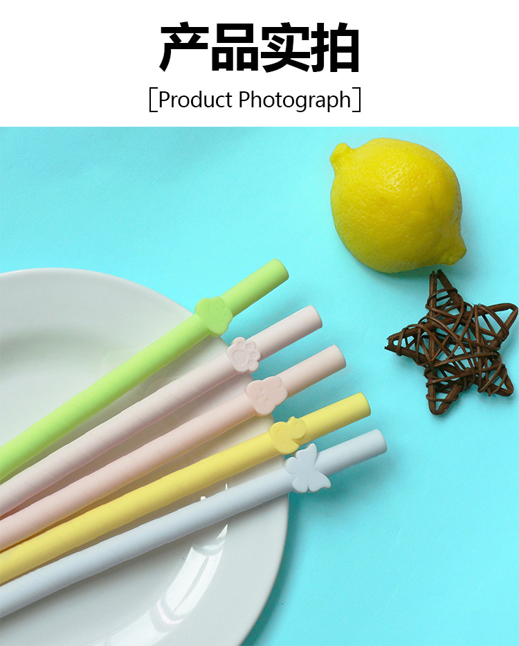 现货硅胶吸管直管动物吸管套装亚马逊热卖耐高温彩色吸管厂家直销