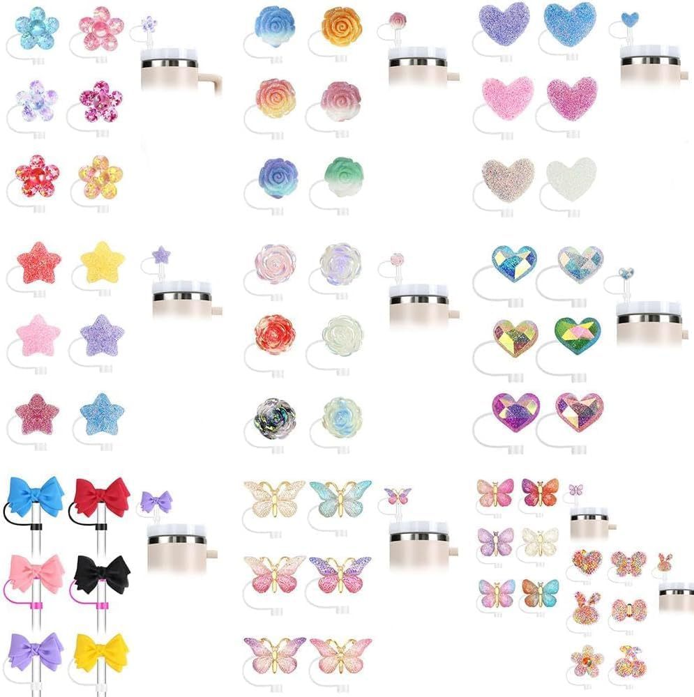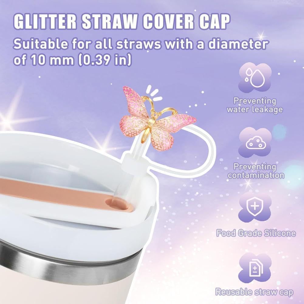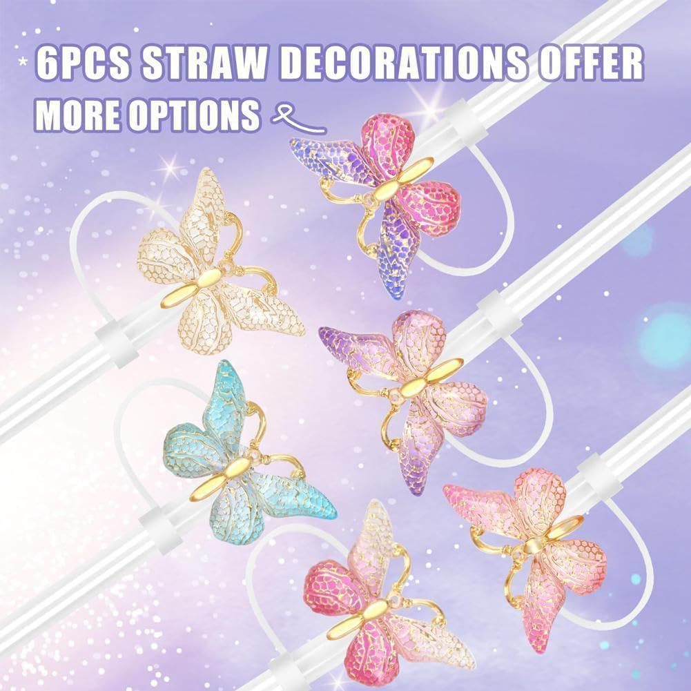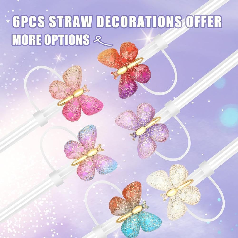 白蝴蝶亚克力水钻吸管帽派对食品级硅胶高质量亚马逊装饰配件现货