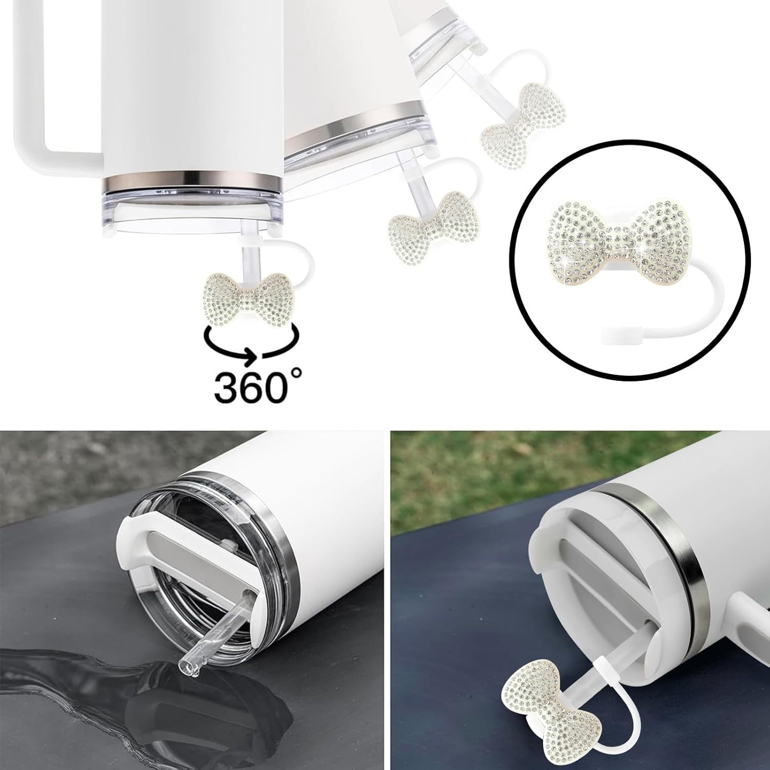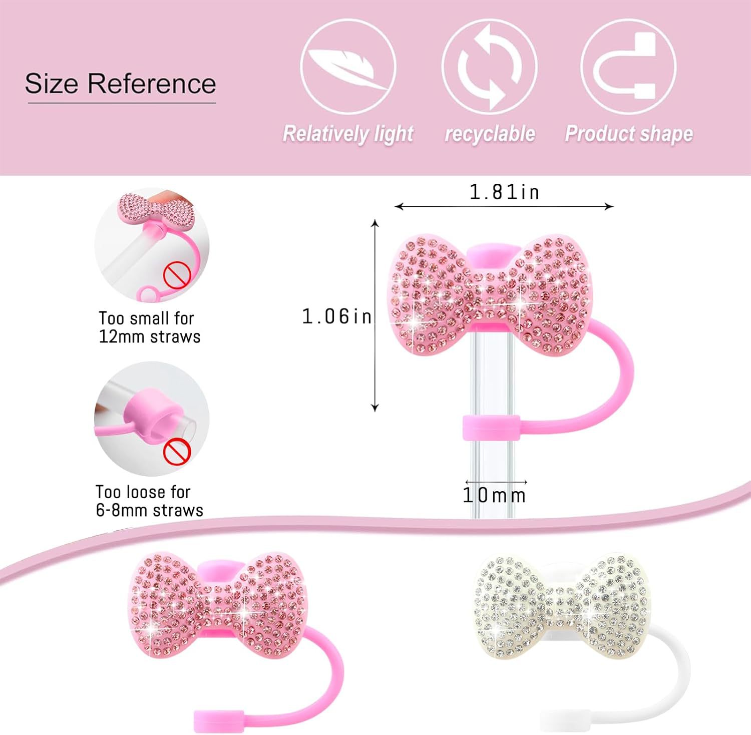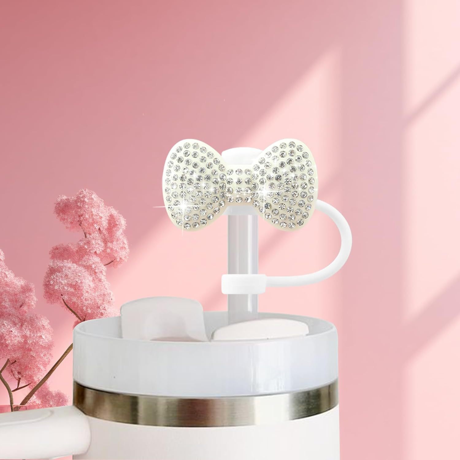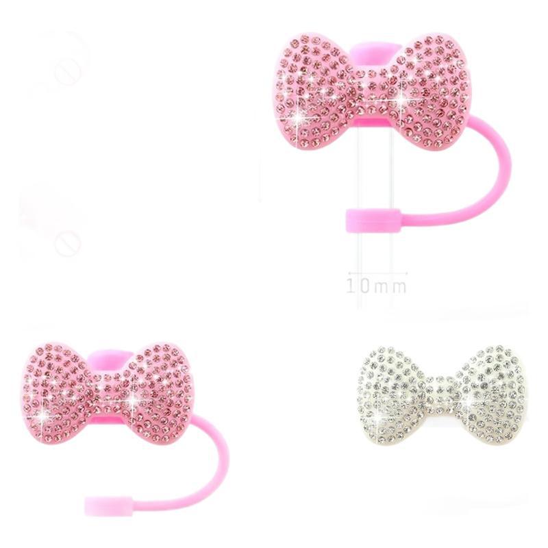 亚马逊跨境闪亮水钻蝴蝶结吸管帽水杯吸管防尘塞可重复彩色吸管盖