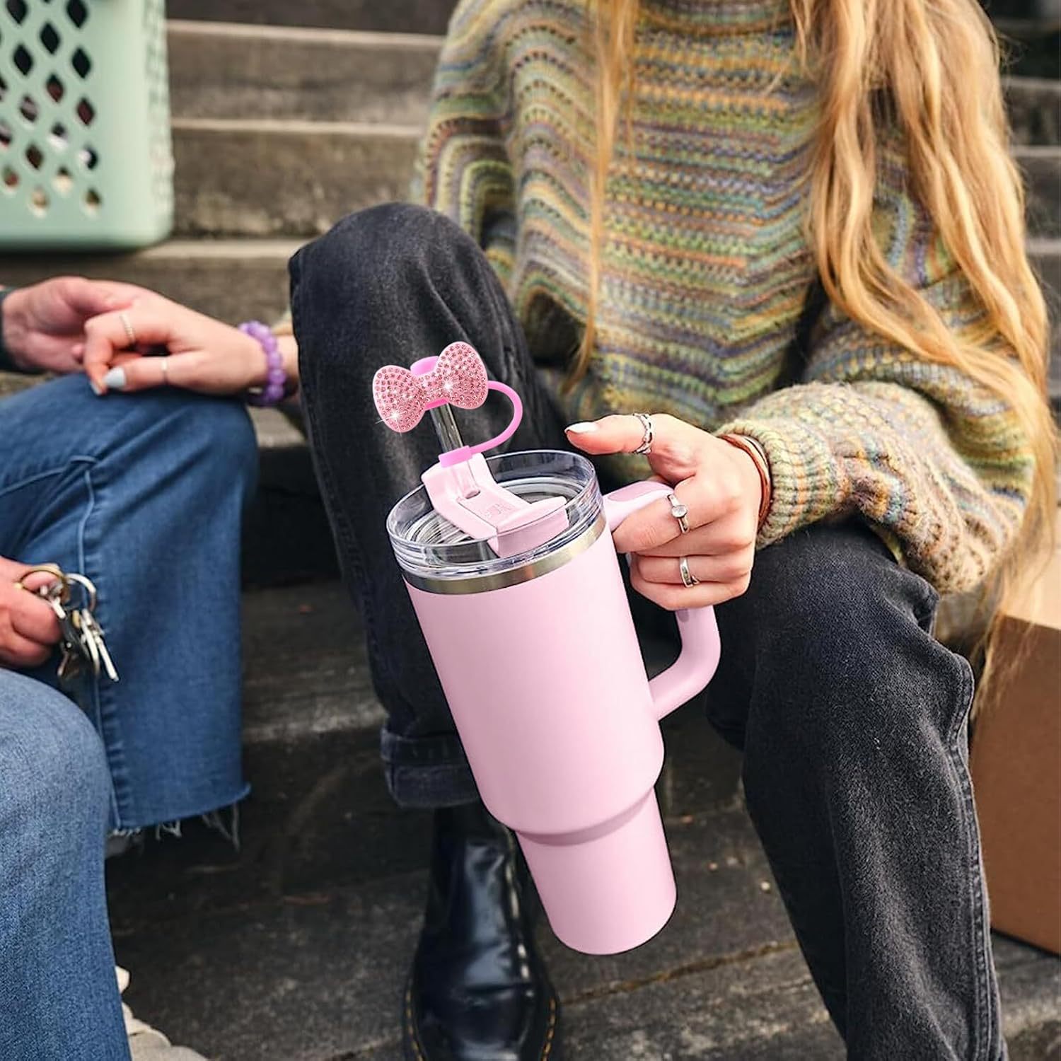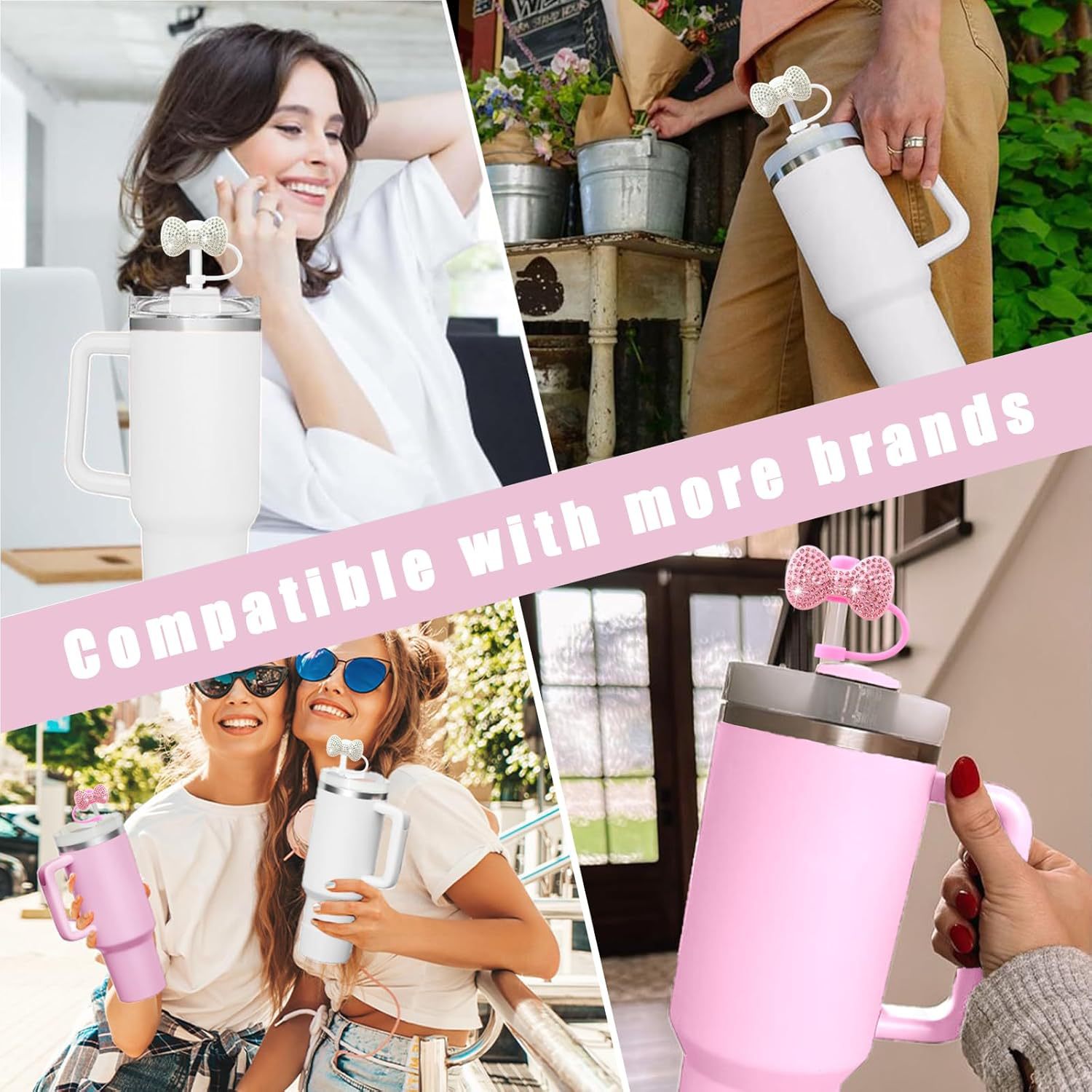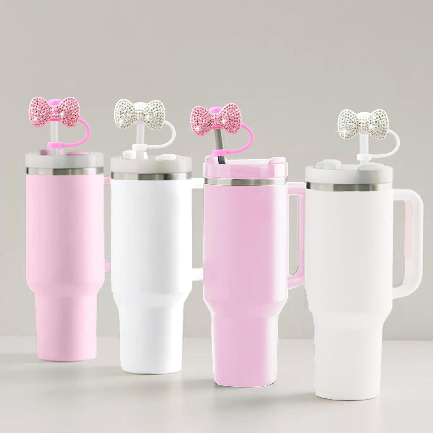 亚马逊跨境闪亮水钻蝴蝶结吸管帽水杯吸管防尘塞可重复彩色吸管盖