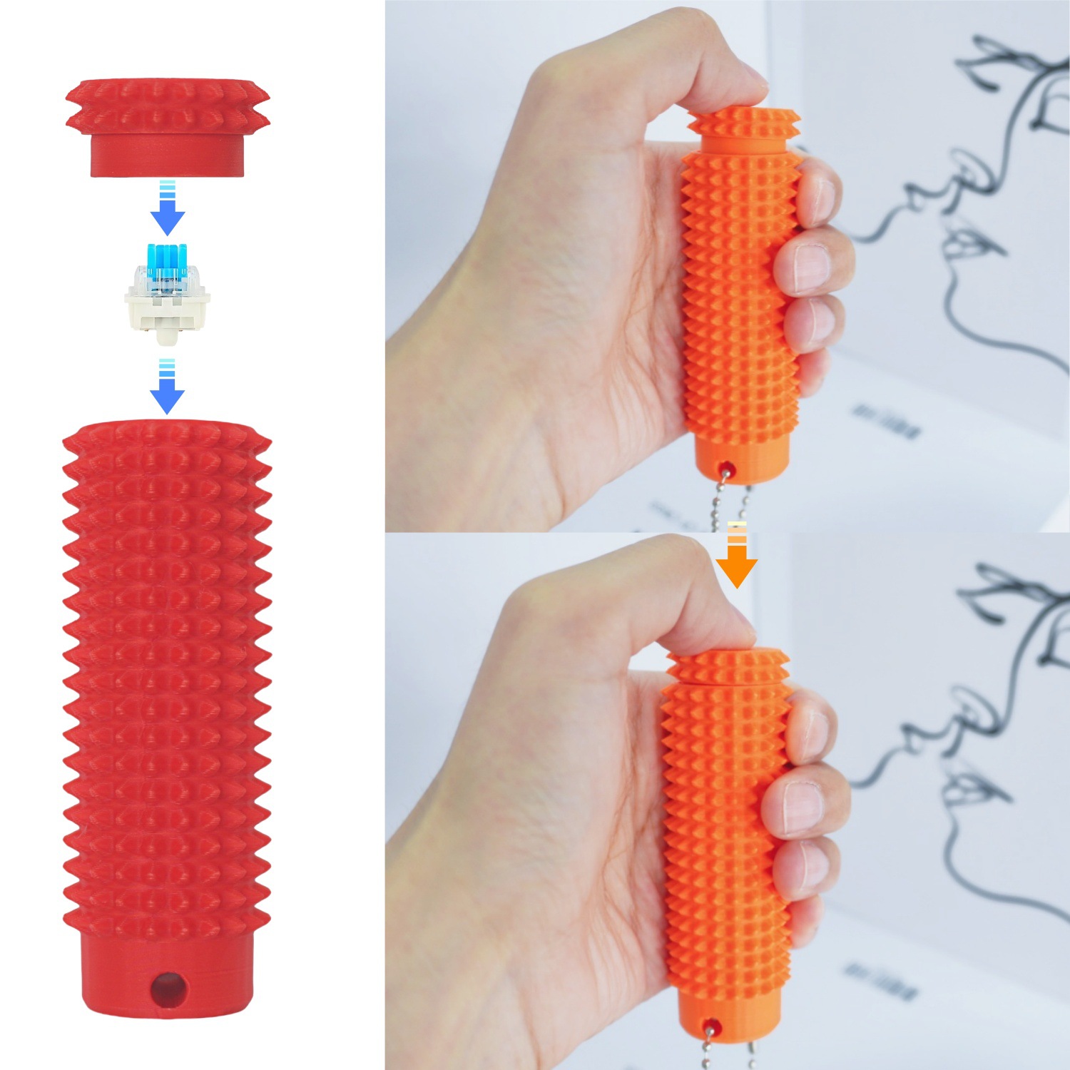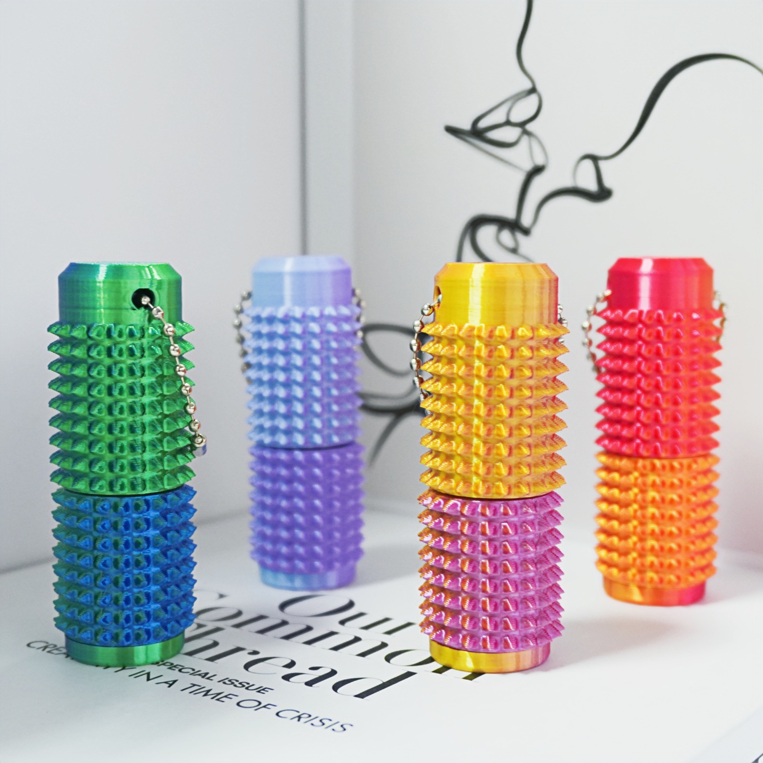 2025新款 Spiky Grippie Stim Keychain 便携式指尖减压钥匙链扣